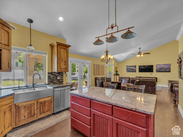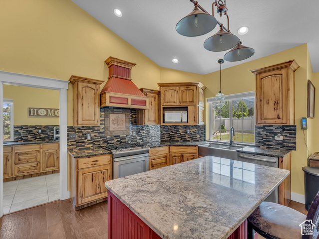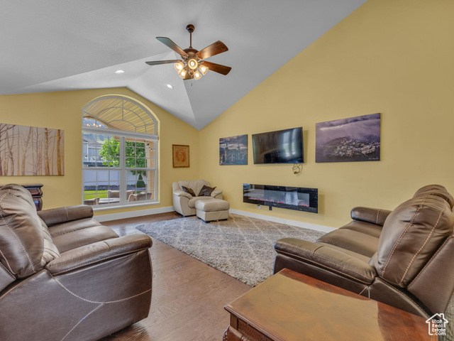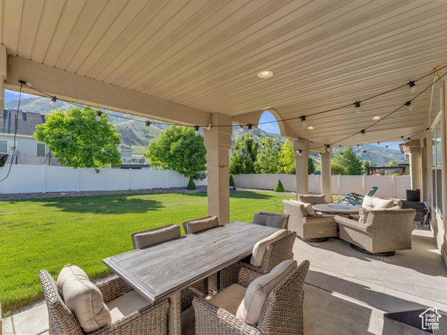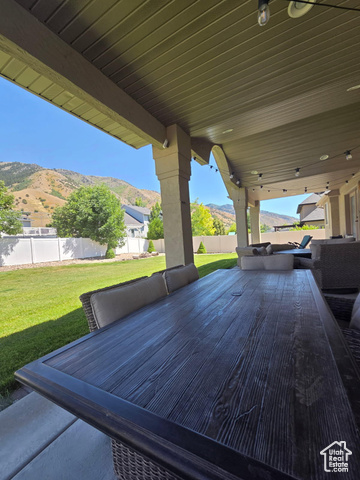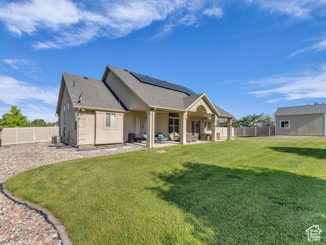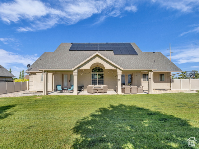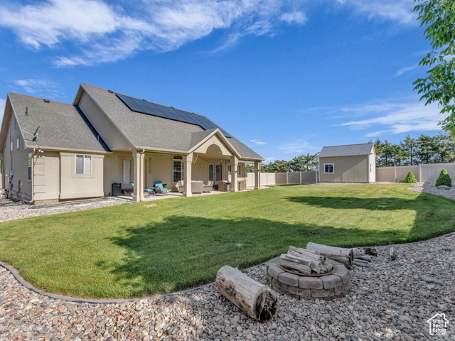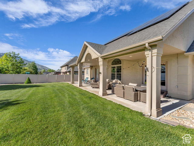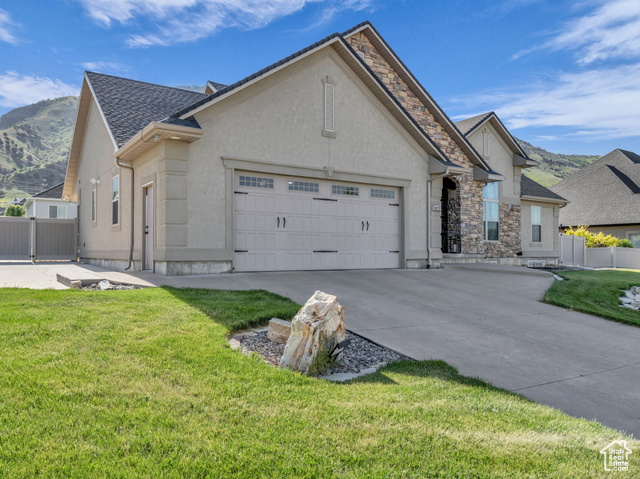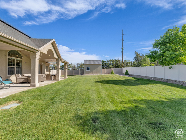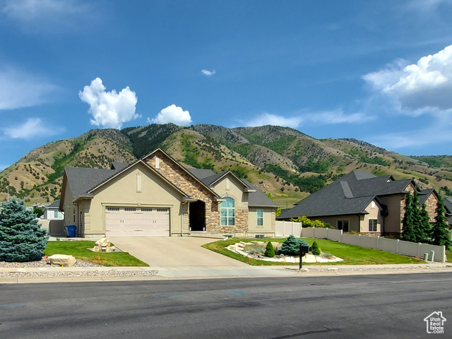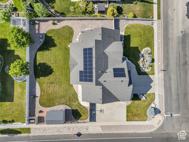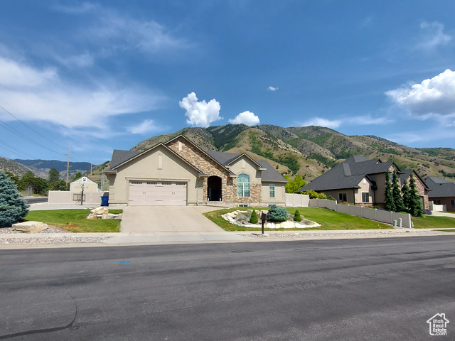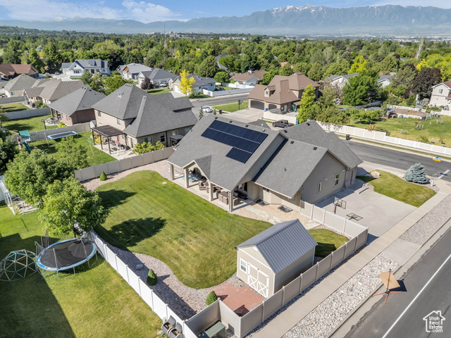 Beautiful home close to the foothills of Green Canyon. Over-sized garage with an extra parking area. Large covered front porch and extra large covered back patio. Large shed in the backyard. French doors to the back patio from the living area and from the primary bedroom. Primary bedroom has a dream en suite with separate bathtub and shower, large double vanity, and walk-in-closet. Vaulted ceilings throughout the main level. Butler's pantry and laundry area in addition to a walk in pantry. The basement is completely finished and has a large and very open great room. The front and backyards are both completely landscaped and easy to maintain. Square footage figures are provided as a courtesy estimate only and were obtained from county records. Buyer is advised to obtain an independent measurement. Agent related to seller. Solar install date is estimated.