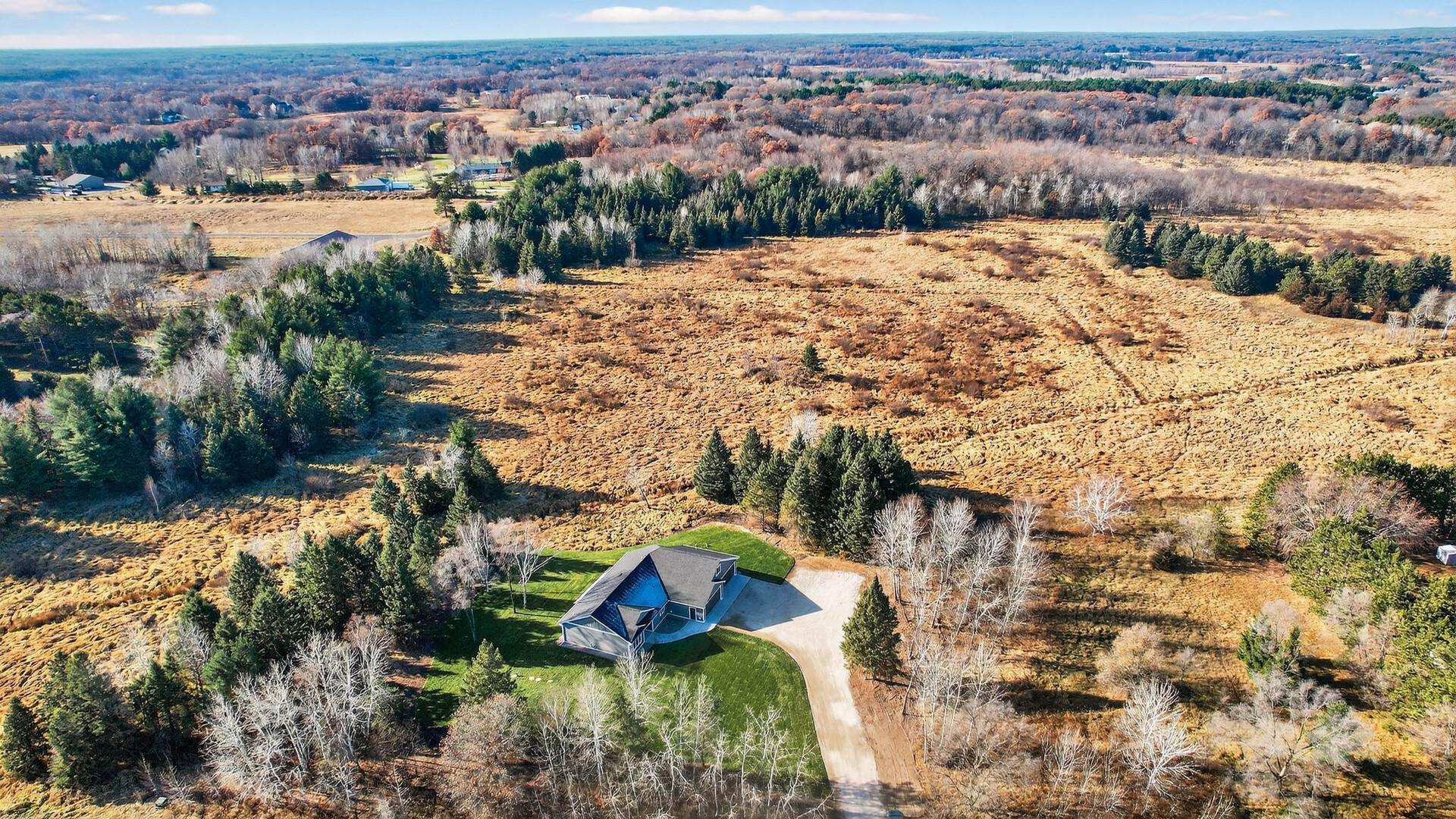 Back on the market. Home appraised for $776,000.00 on 1/26/26. Can share appraisal if requested.This is a new custom build on 2.6 acres backing up to lots of wildlife and greenland. One level livingslab on grade. No steps. Move in ready. This does not have typical builder grade finishes, customhigh-end finishes throughout the entire home. This home offers 1936 sq ft on the main level plus a400sqft bedroom/bonus room over the garage. Bonus room is on its on forced air zone with its ownthermostat. Home and garage are equipped with in-floor heat. The deep 4 car garage is equipped with floordrains, forced air heat, full flake polyurea floor system, 1/2 bathroom, and a rear garage door. LP smartsiding around the entire house, class 4 high impact shingles (Qualifies for an insurance rebate), fulllandscaping, irrigation system, river rock, and concrete curbing. There is an oversized concrete apronand a large concrete patio in the rear of the home. Patio is prepped for a hot tub with the electricalwiring as well. The home was purposely positioned to accommodate a 40x52 out building building. Allutilities are prepped for a future out building. An oversized water well was installed to ensure properwater pressure with lawn irrigation and future out building expansion. Not a cookie cutter build.Driveway will be getting installed in the spring.