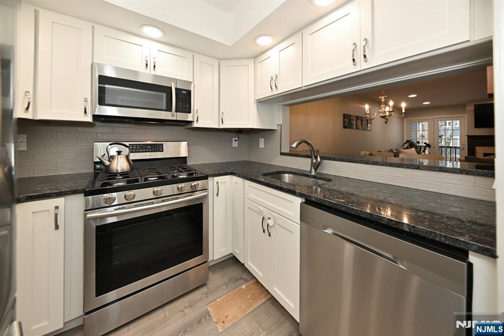 Beautiful, open concept, townhome in the prestigious, gated community of Cambridge Heights with pool, tennis and exercise room! Garage access right into home. The beautiful kitchen with stainless steel appliances overlooks the dining room and living room which offer stunning hardwood flooring, recessed lighting and wood burning fireplace. Access to the covered deck overlooks the beautiful grounds. The primary bedroom is spacious, primary bath/double sinks. The 2nd bedroom and full bath complete the main floor. Lower level offers a family room with wood burning fireplace, full bath, and access to Garage. This desirable community is minutes from Ramseys vibrant downtown, shopping, dining, major highways, and train service to NYC. The perfect blend of comfort, convenience, and community living. Love where you live!