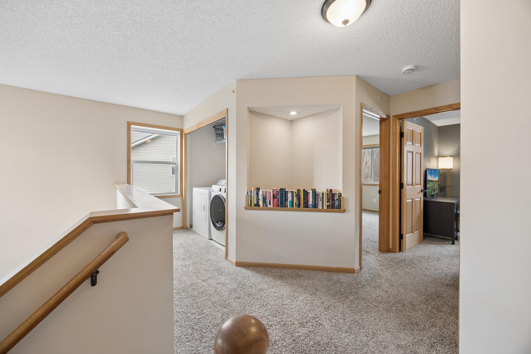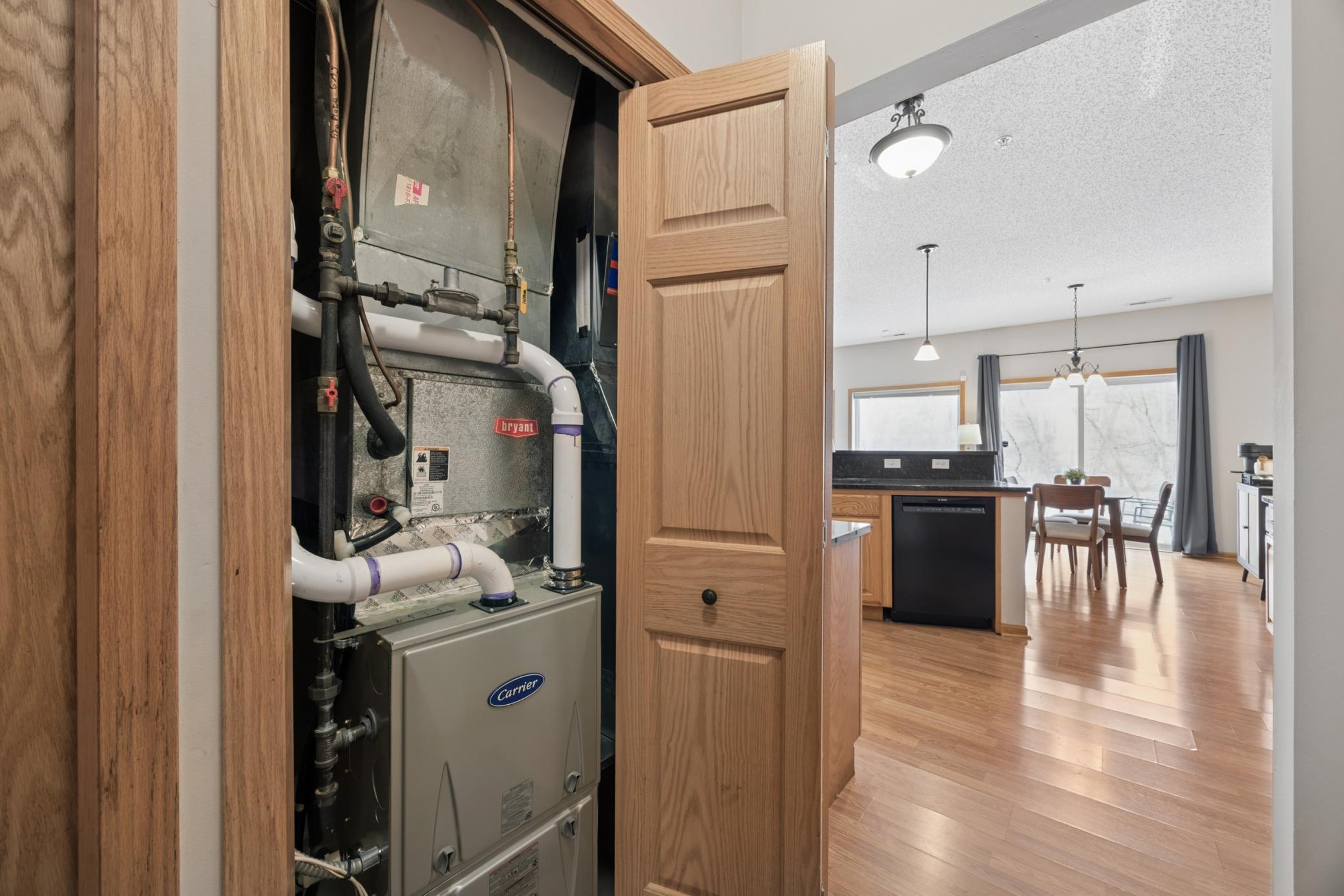 Welcome home to this beautifully maintained 3-bedroom, 3-bath end-unit townhome. Featuring a wide open floor plan filled with abundant natural sunlight from oversized windows overlooking a peaceful pond & private wooded nature views. The main level showcases a spacious living & dining area with a cozy gas fireplace and center island cook's kitchen with breakfast bar. Upstairs, there are 3 bedrooms, including a private owners suite complete with dual vanity full bath, walk-in closet & spacious secondary bedrooms w/convenient upper-level laundry. Additional highlights include a 2-car attached garage, maintenance-free living, and HOA pd water, sewer, trash/recycling. Pets & rentals are allowed, adding flexibility for both homeowners & investors. Ideally located in award winning Roseville Schools, with super easy access to I-35E & just minutes to downtown St. Paul. This townhome offers a rare combination of quiet surroundings & urban convenience. Dont miss it!