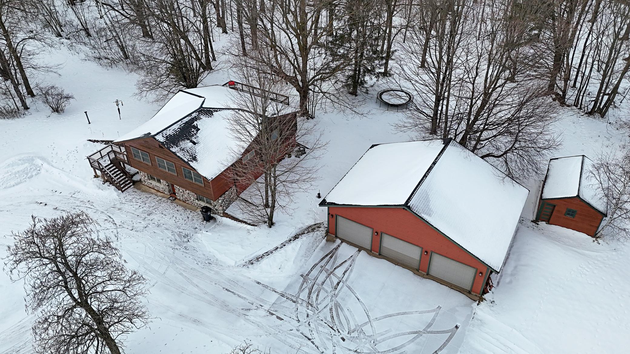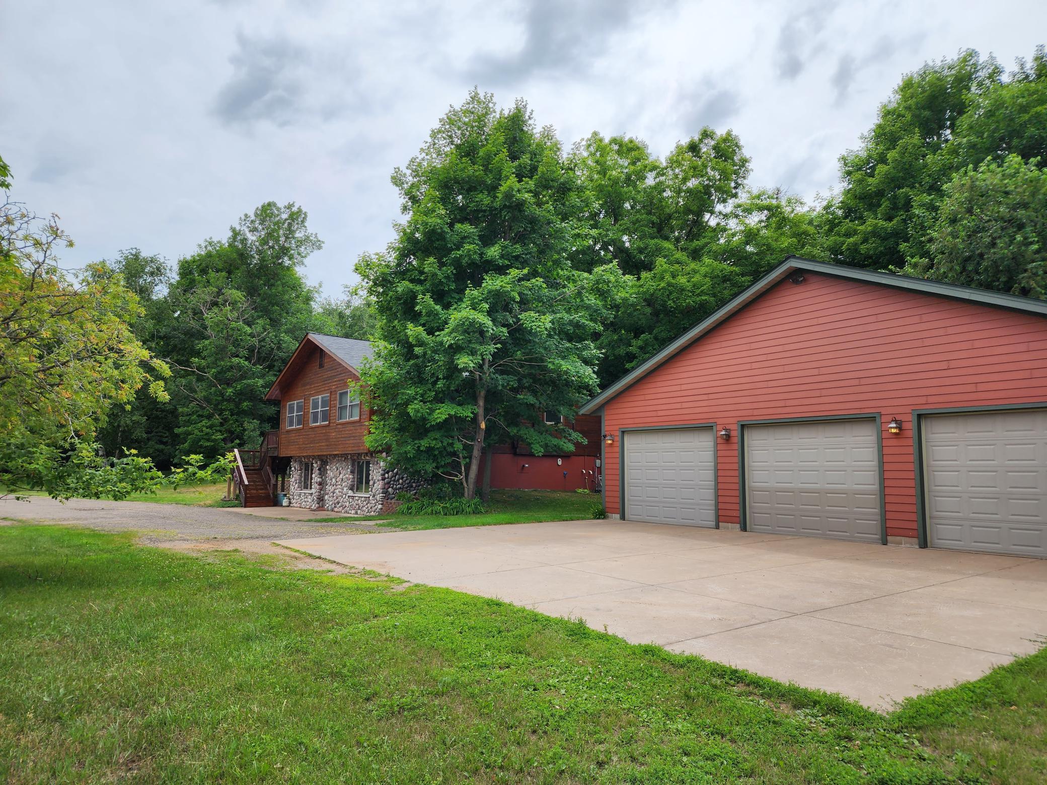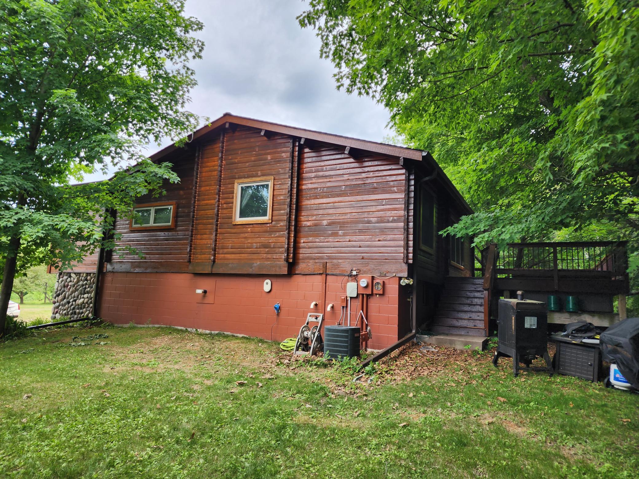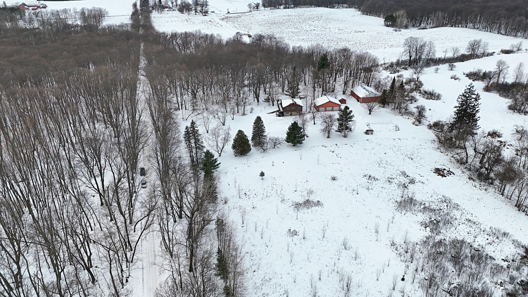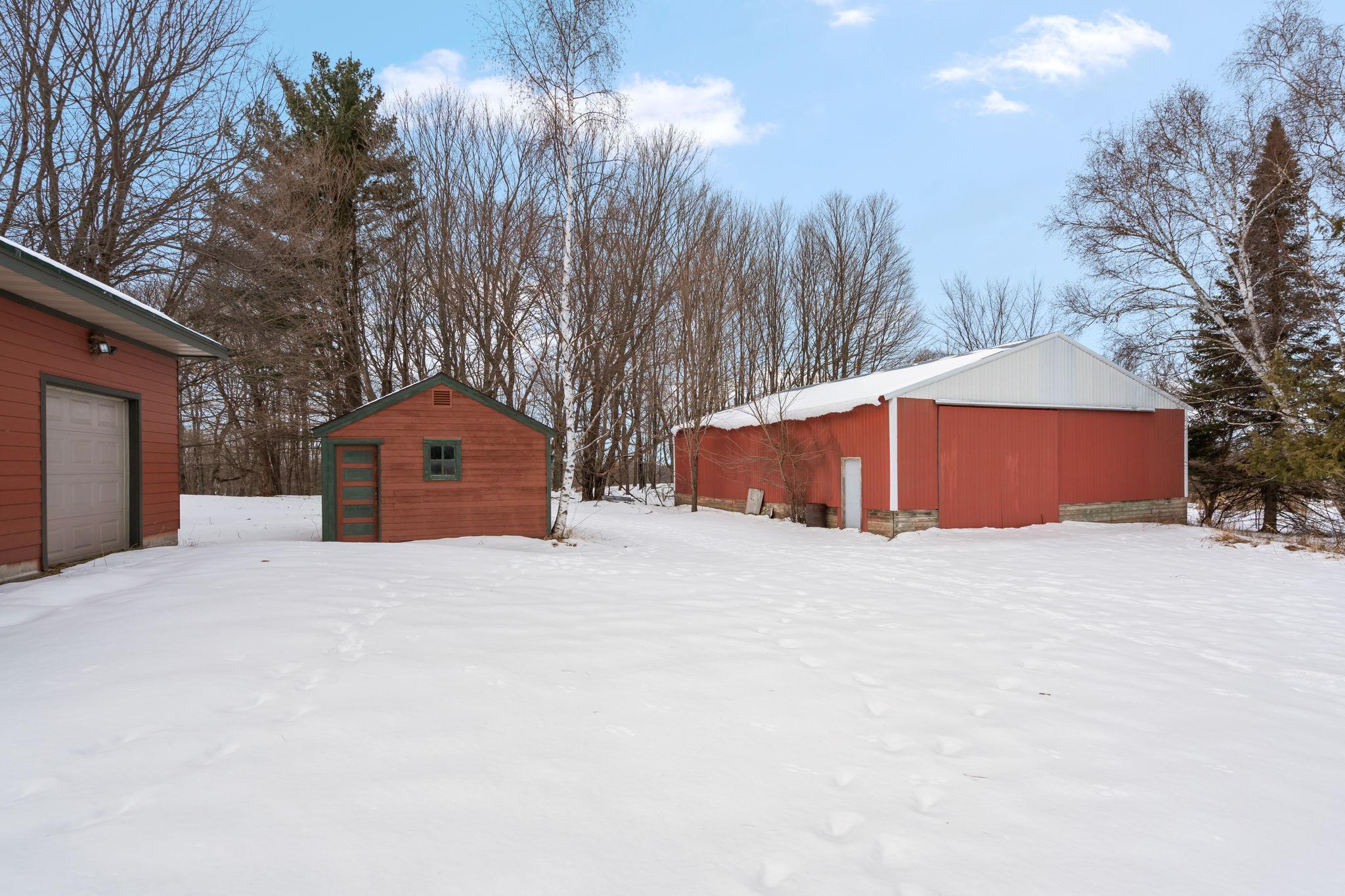 Well-maintained cedar log home on a beautiful 11-acre parcel offering privacy, functionality, and country living. This spacious 5-bedroom, 3-bath home features a flexible floor plan with generous living spaces, comfortable gathering areas, and ample bedrooms for everyday living or entertaining. Numerous updates reflect pride of ownership, including a new roof in 2023 and many updated windows, making the home truly move-in ready. Step out onto the deck and relax in the hot tub while enjoying the peaceful surroundings. The scenic acreage includes apple trees and mature grapevines and is set on a quiet Rustic Road. Outbuildings are a standout, featuring a 40x52 pole shed ideal for storage, equipment, or hobbies, along with a 30x40 heated 3-car garage offering year-round convenience. With acreage, multiple outbuildings, and thoughtful updates throughout, this property is perfect for those seeking space, privacy, and a true country lifestyle.