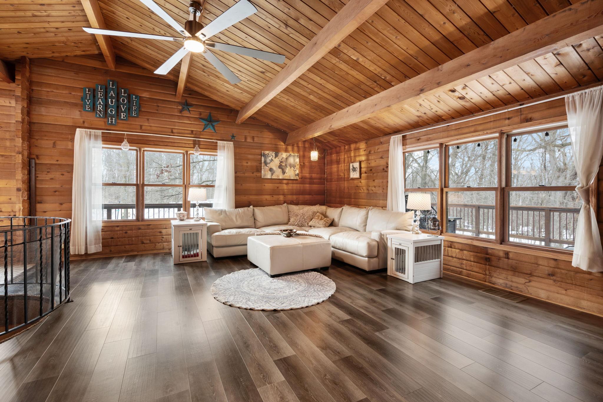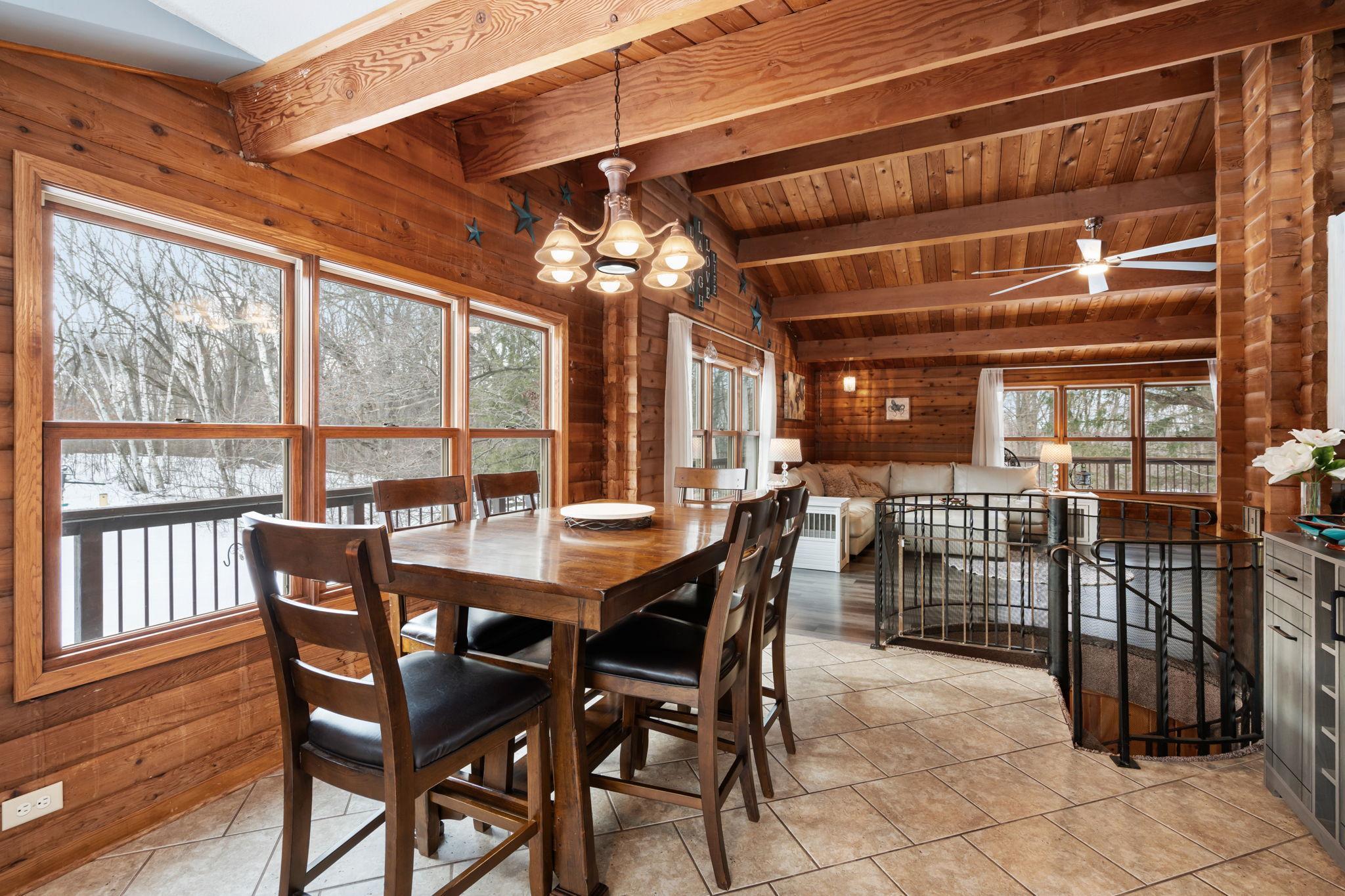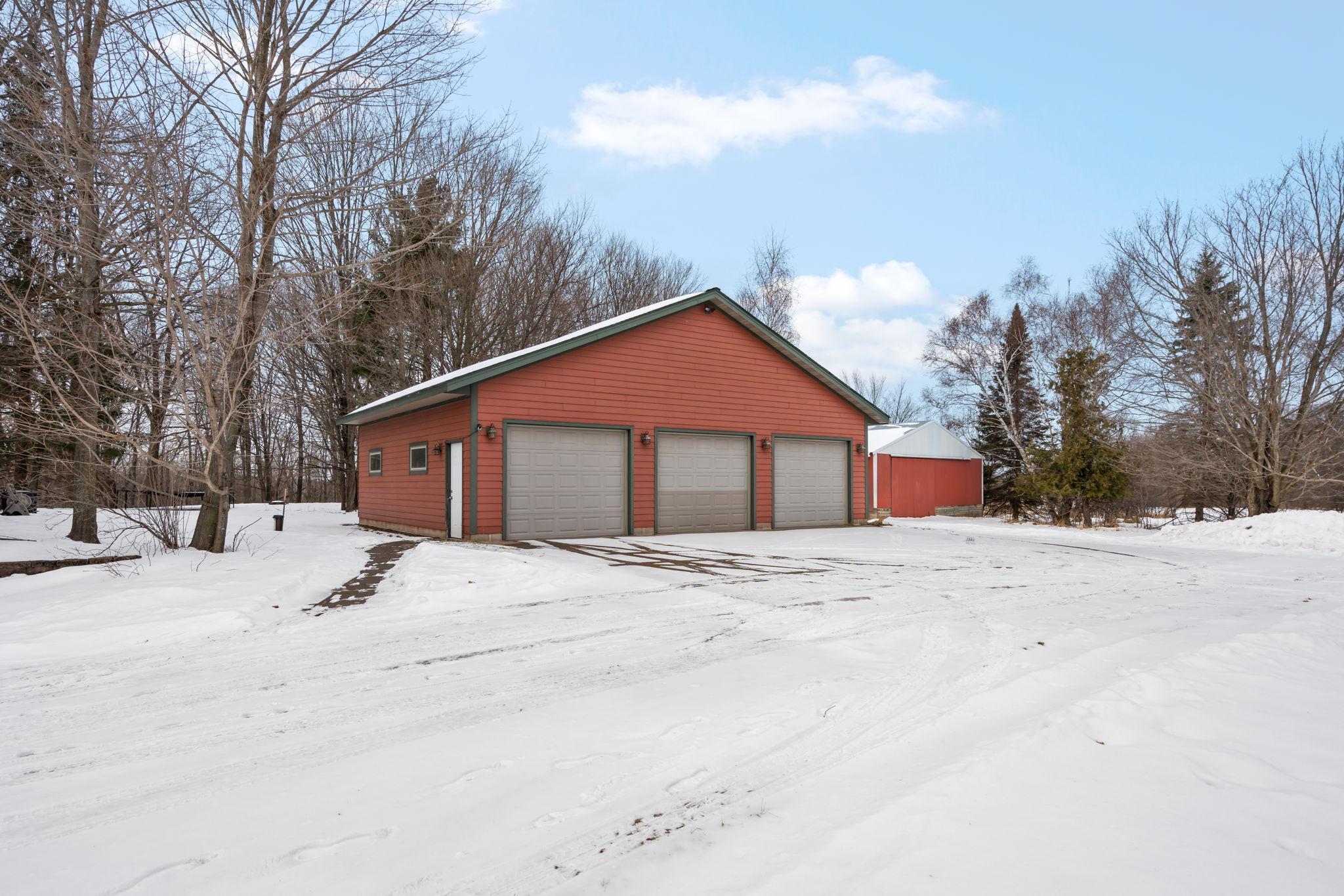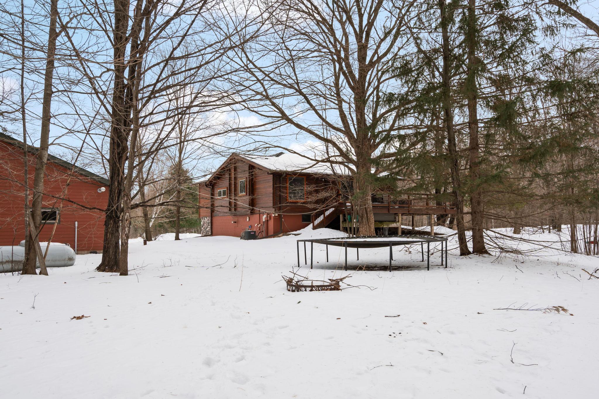 Well-maintained cedar log home on a beautiful 11-acre parcel offering privacy, functionality, and country living. This spacious 5-bedroom, 3-bath home features a flexible floor plan with generous living spaces, comfortable gathering areas, and ample bedrooms for everyday living or entertaining. Numerous updates reflect pride of ownership, including a new roof in 2023 and many updated windows, making the home truly move-in ready. Step out onto the deck and relax in the hot tub while enjoying the peaceful surroundings. The scenic acreage includes apple trees and mature grapevines and is set on a quiet Rustic Road. Outbuildings are a standout, featuring a 40x52 pole shed ideal for storage, equipment, or hobbies, along with a 30x40 heated 3-car garage offering year-round convenience. With acreage, multiple outbuildings, and thoughtful updates throughout, this property is perfect for those seeking space, privacy, and a true country lifestyle.
