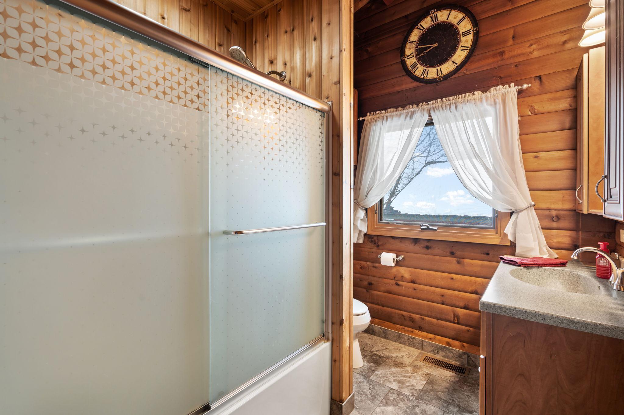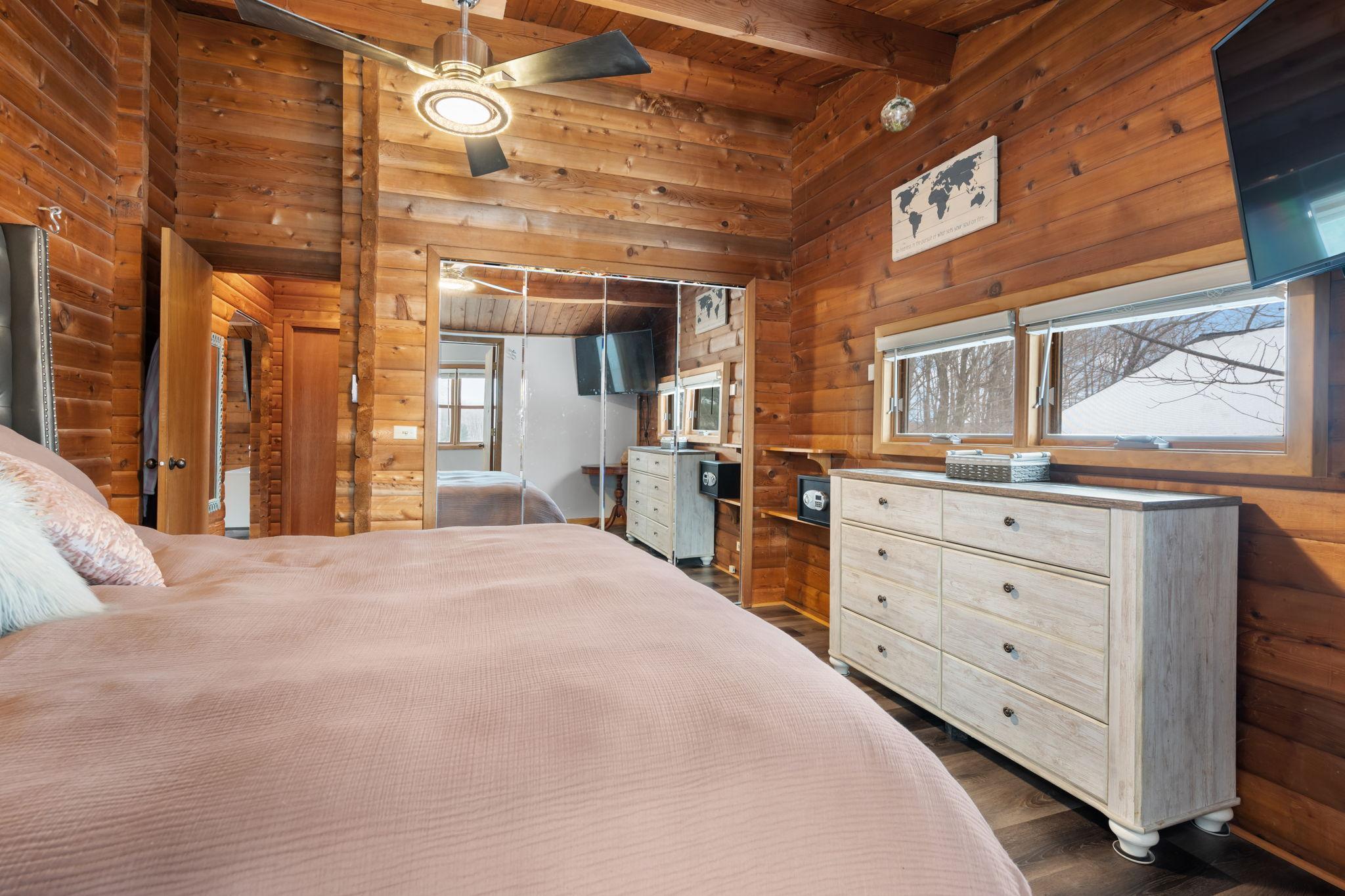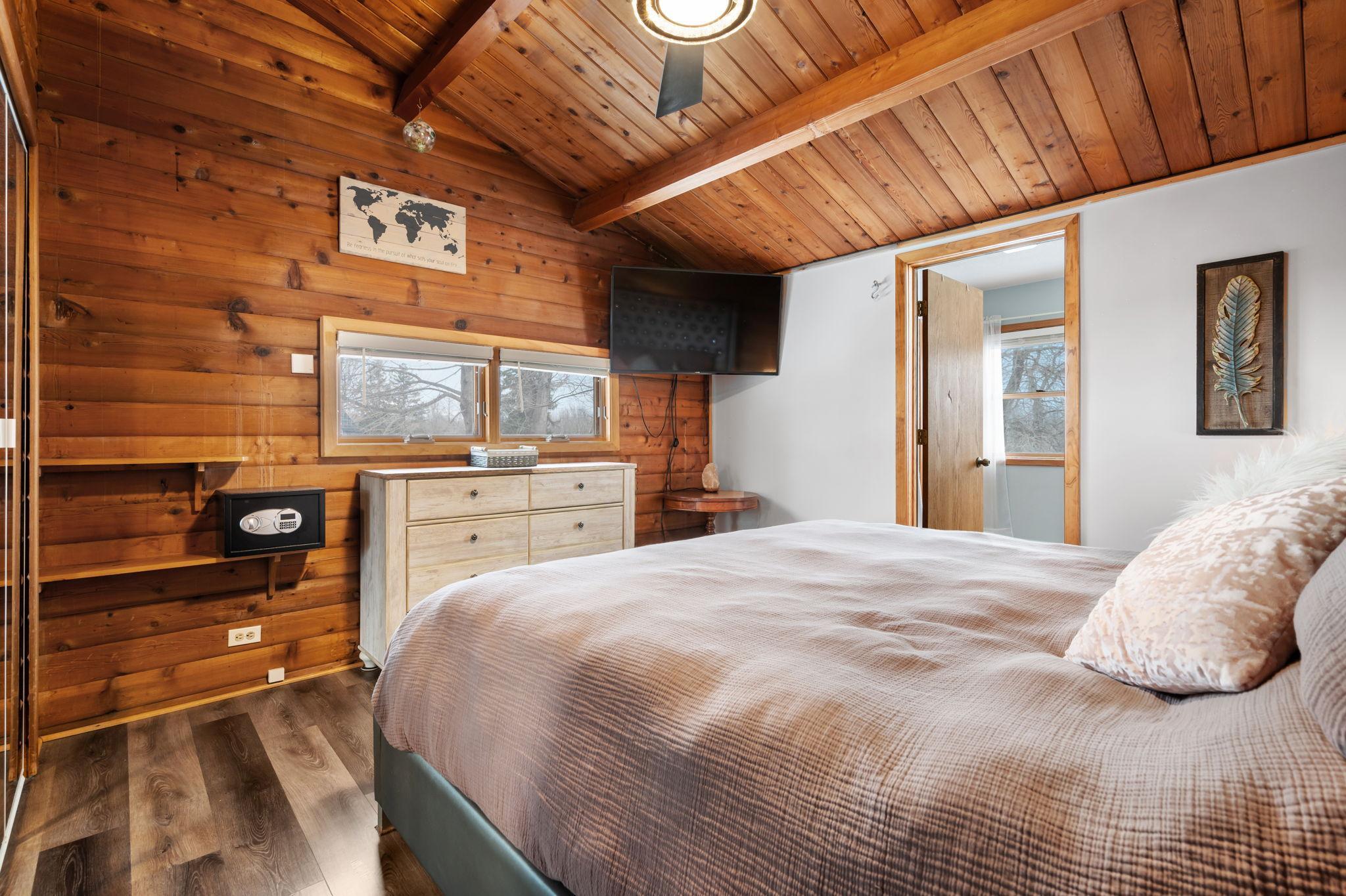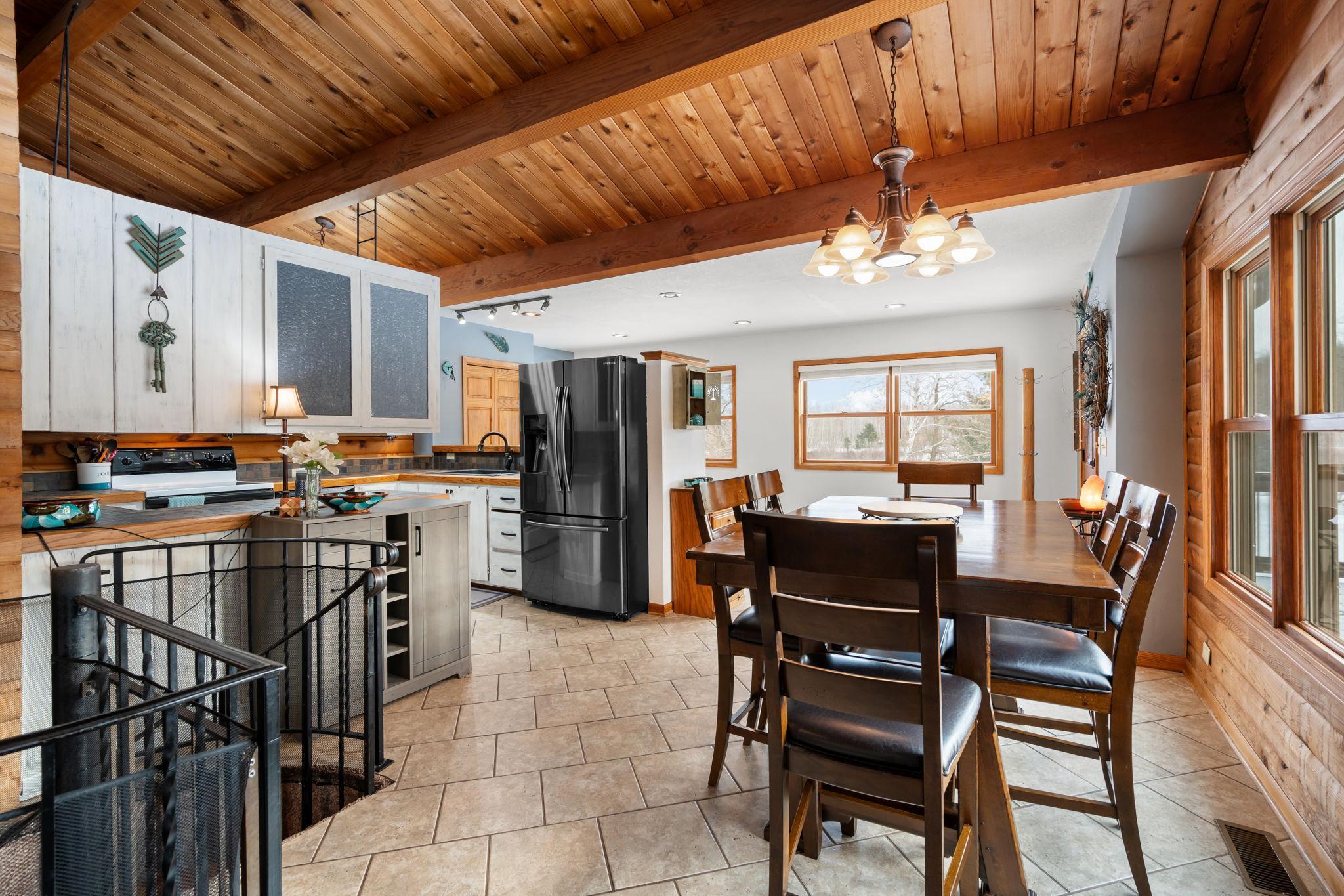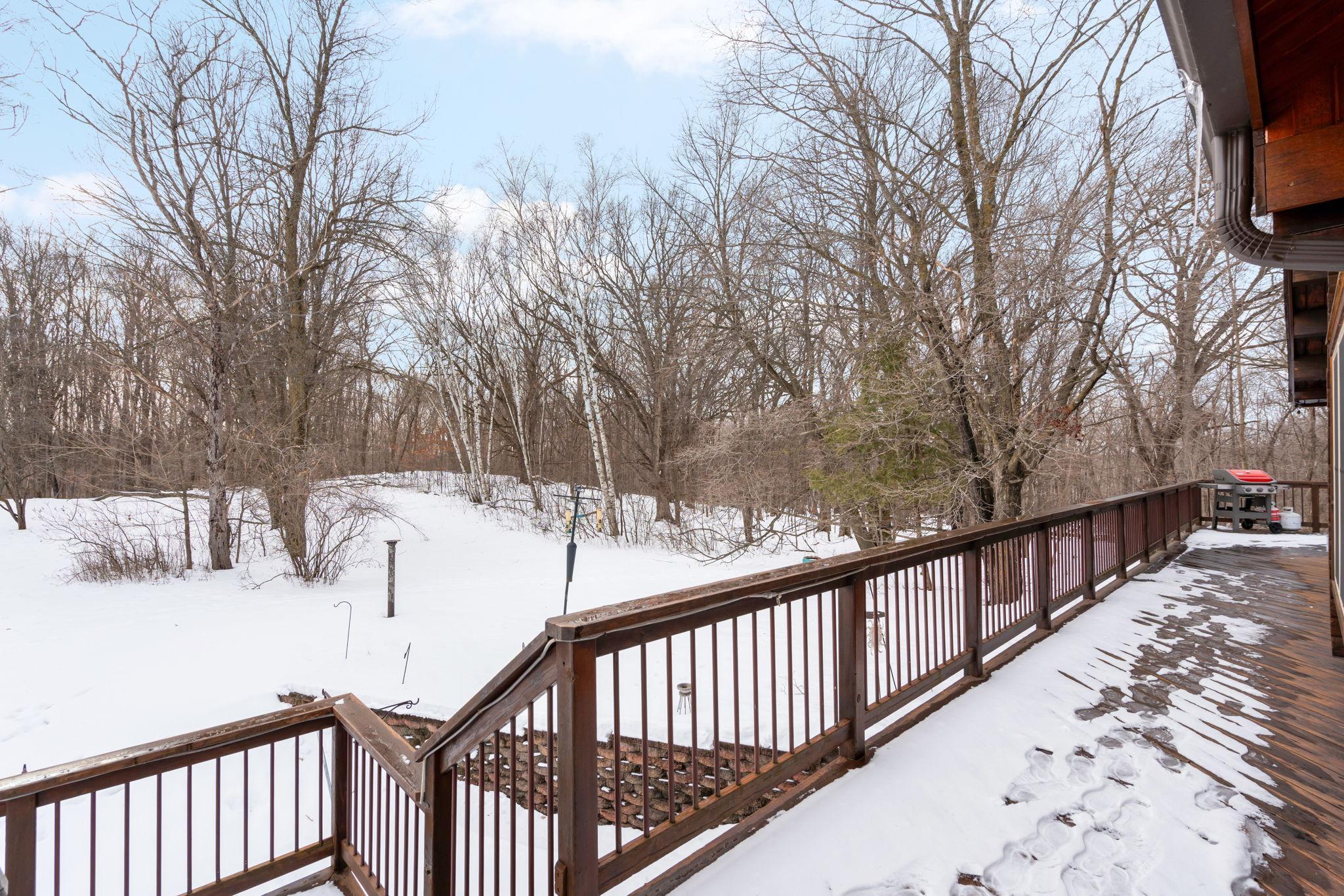 Well-maintained cedar log home on a beautiful 11-acre parcel offering privacy, functionality, and country living. This spacious 5-bedroom, 3-bath home features a flexible floor plan with generous living spaces, comfortable gathering areas, and ample bedrooms for everyday living or entertaining. Numerous updates reflect pride of ownership, including a new roof in 2023 and many updated windows, making the home truly move-in ready. Step out onto the deck and relax in the hot tub while enjoying the peaceful surroundings. The scenic acreage includes apple trees and mature grapevines and is set on a quiet Rustic Road. Outbuildings are a standout, featuring a 40x52 pole shed ideal for storage, equipment, or hobbies, along with a 30x40 heated 3-car garage offering year-round convenience. With acreage, multiple outbuildings, and thoughtful updates throughout, this property is perfect for those seeking space, privacy, and a true country lifestyle.