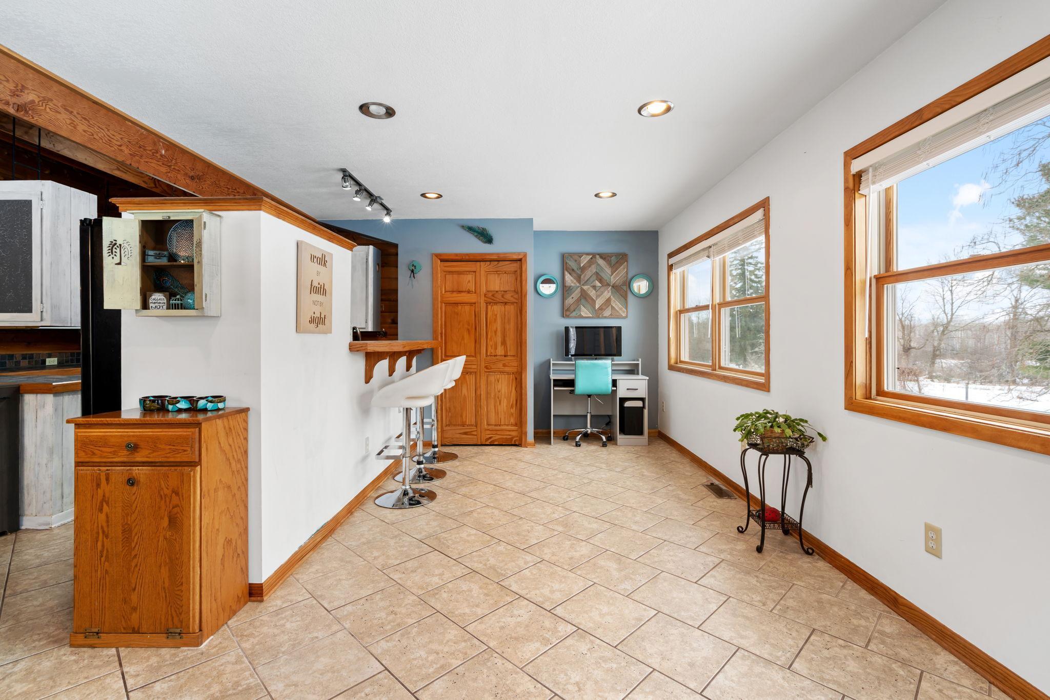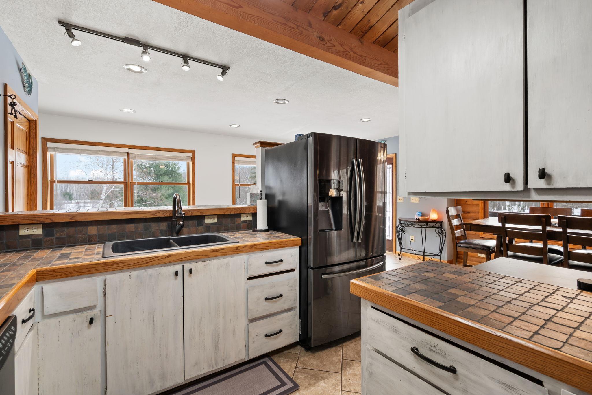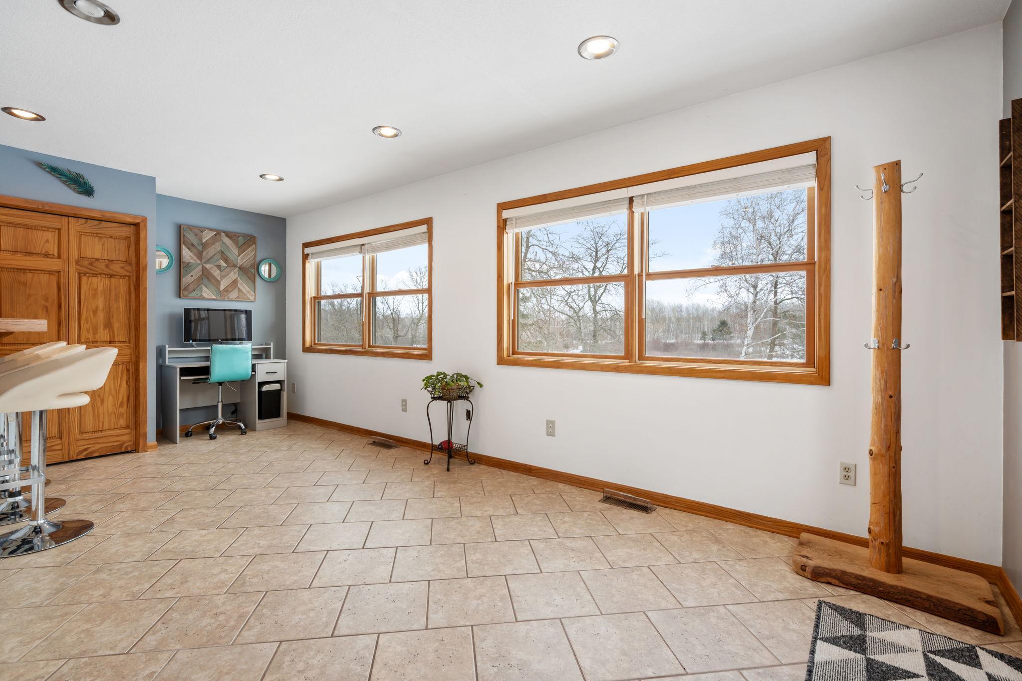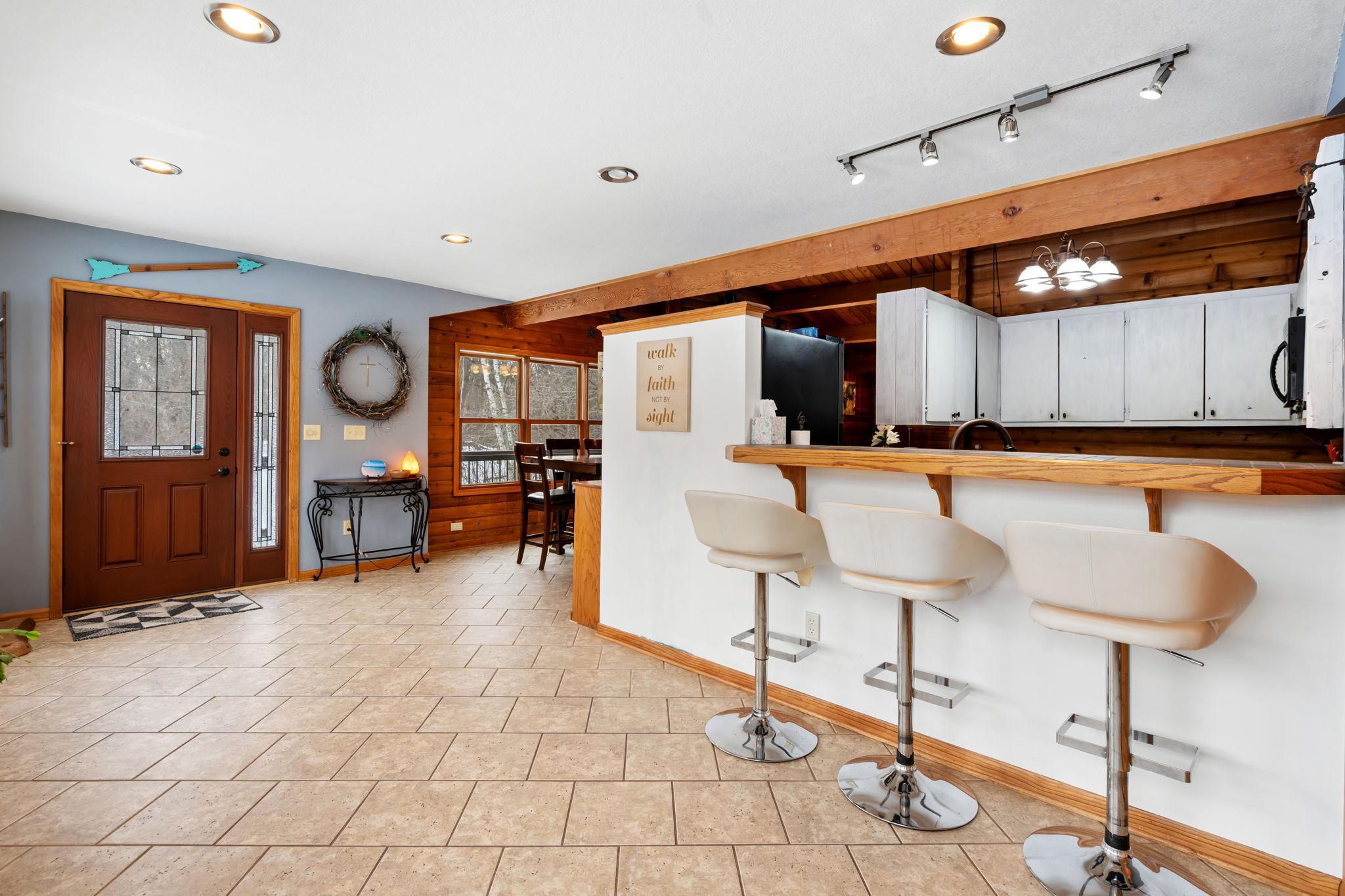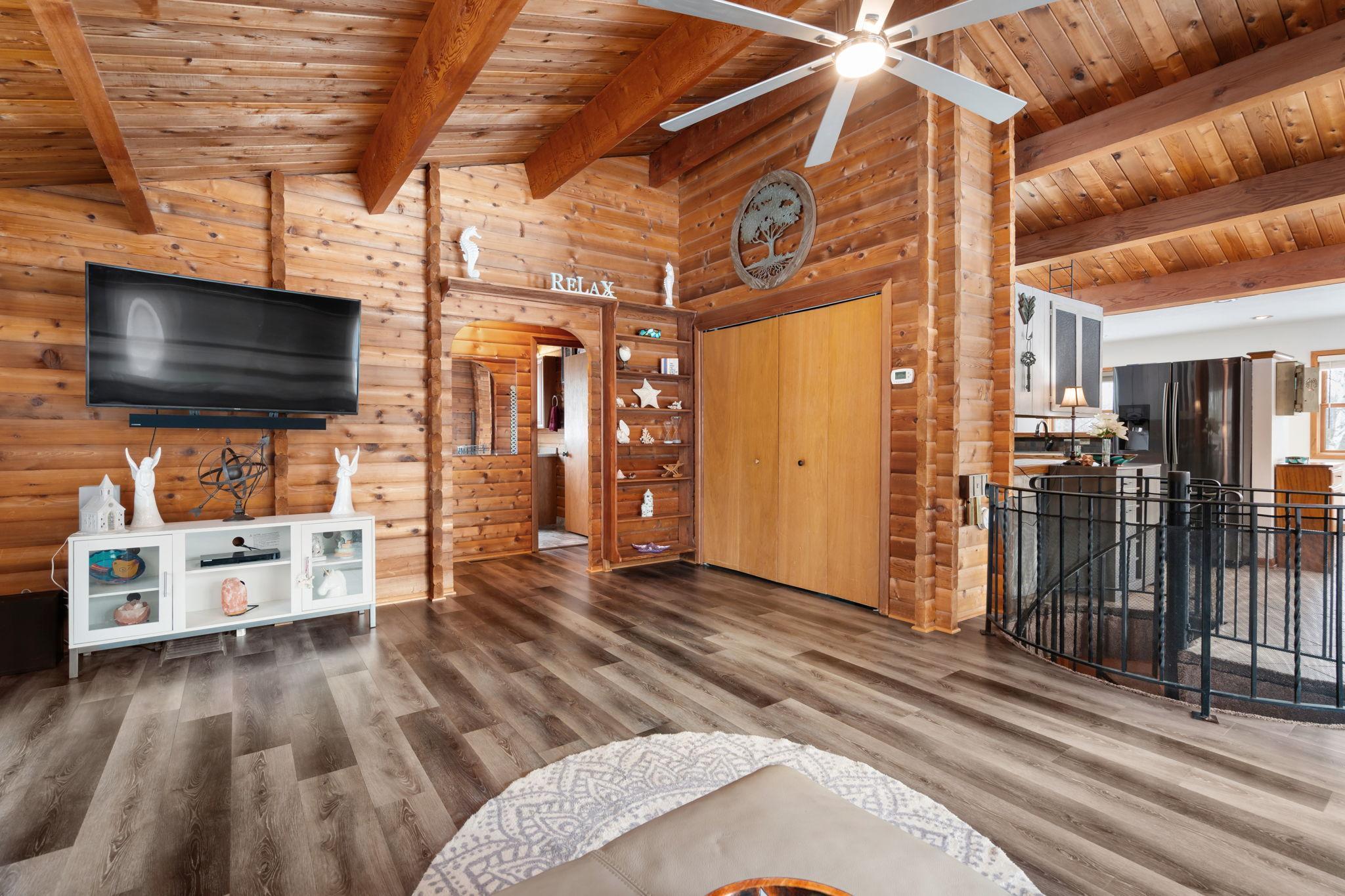 Well-maintained cedar log home on a beautiful 11-acre parcel offering privacy, functionality, and country living. This spacious 5-bedroom, 3-bath home features a flexible floor plan with generous living spaces, comfortable gathering areas, and ample bedrooms for everyday living or entertaining. Numerous updates reflect pride of ownership, including a new roof in 2023 and many updated windows, making the home truly move-in ready. Step out onto the deck and relax in the hot tub while enjoying the peaceful surroundings. The scenic acreage includes apple trees and mature grapevines and is set on a quiet Rustic Road. Outbuildings are a standout, featuring a 40x52 pole shed ideal for storage, equipment, or hobbies, along with a 30x40 heated 3-car garage offering year-round convenience. With acreage, multiple outbuildings, and thoughtful updates throughout, this property is perfect for those seeking space, privacy, and a true country lifestyle.