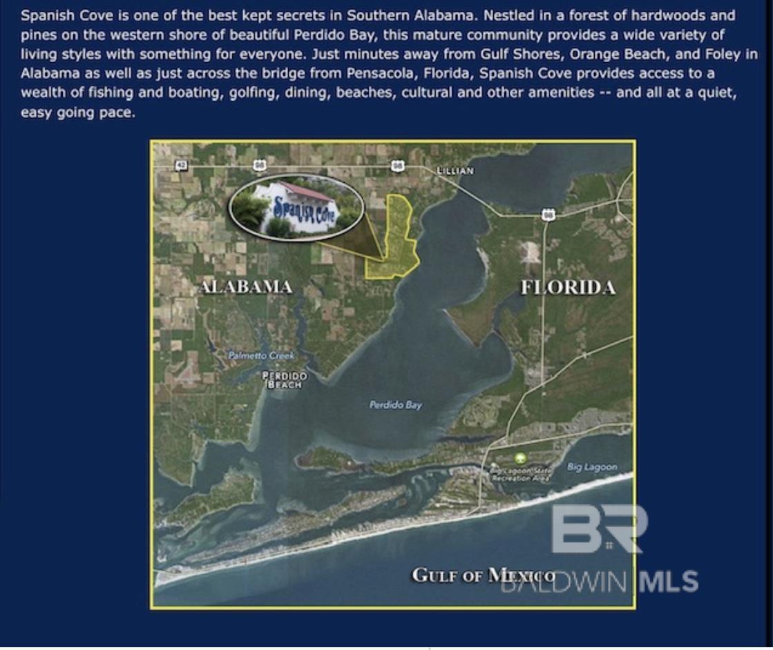 Spacious coastal home featuring 2-bedrooms and 2-baths with an open floor plan, situated on 2 lots, offering exceptional space and privacy. Recent updates include a newly repaired roof, new flooring, privacy fence, fresh interior paint, and brand-new blinds, making this home truly move-in ready. Enjoy abundant natural light in the bright sunroom, for relaxing or entertaining, and a nice, fully fenced yard for pets, while the expansive outdoor space also provides boat and RV parking, along with covered parking for added convenience. Two storage sheds offer plenty of room for tools, gear, or beach toys. Unwind in the evenings in the hot tub and embrace the relaxed coastal lifestyle. Whether youre searching for a weekend getaway or your new dream home, this is a rare opportunity to own a versatile, well-positioned coastal retreat. Located in the beach neighborhood of Spanish Cove, this coastal gem is just 5 minutes from the Lillian boat launch and only 15 minutes from the sugar-white beaches of the Gulf of Mexico. Discover this pet-friendly, beachside neighborhood, nestled on the Alabama/Florida line, Spanish Cove is a golf cart-friendly community where Residents enjoy access to a private beach, a 500-foot fishing pier, two clubhouses, a year-round swimming pool, pickleball and tennis courts, a basketball court, fitness facility, laundry room, playground, shuffleboard, and miles of nature trails. The community also hosts a variety of social and recreational activities including aquatic classes, bingo, card games, live music, book clubs, game nights, a garden club, and group travel opportunities. Whether you're looking for a full-time residence or a peaceful coastal getaway, this is a great place to call home. This is a must see. Buyer to verify all information during due diligence.