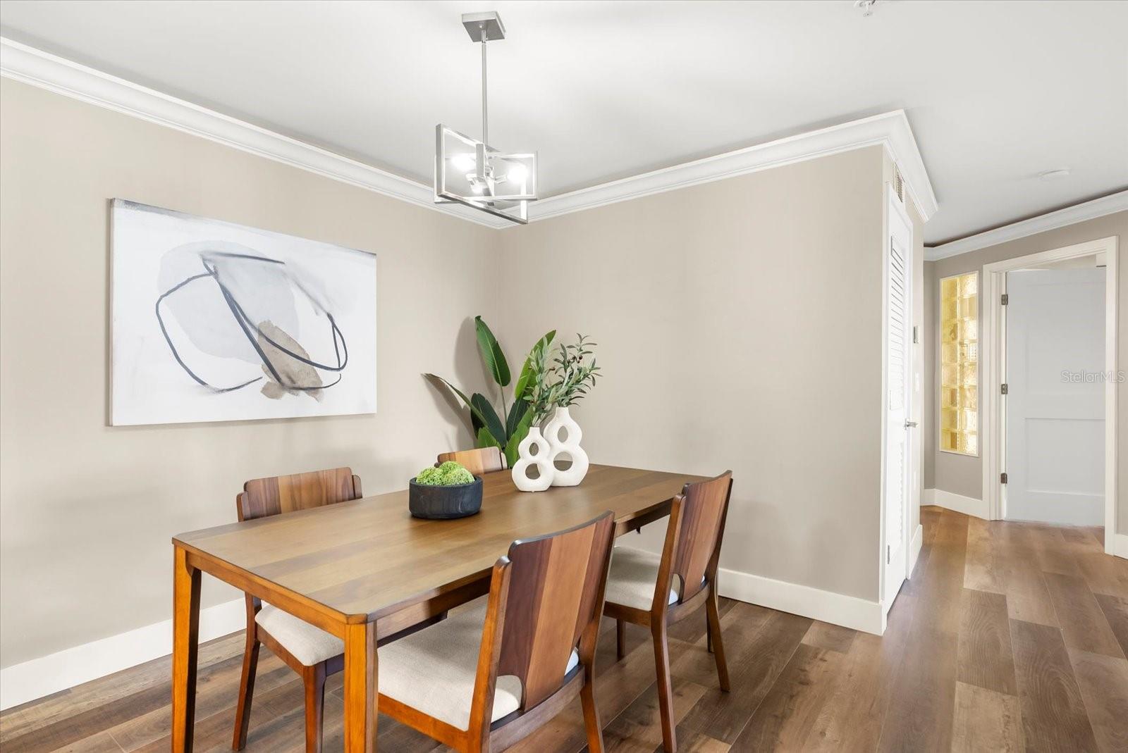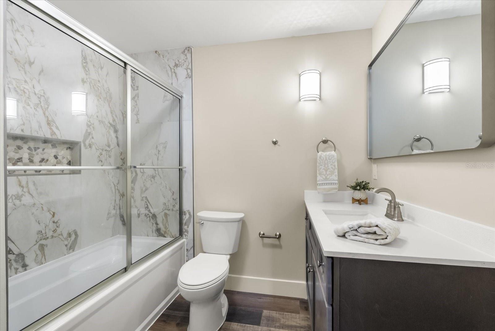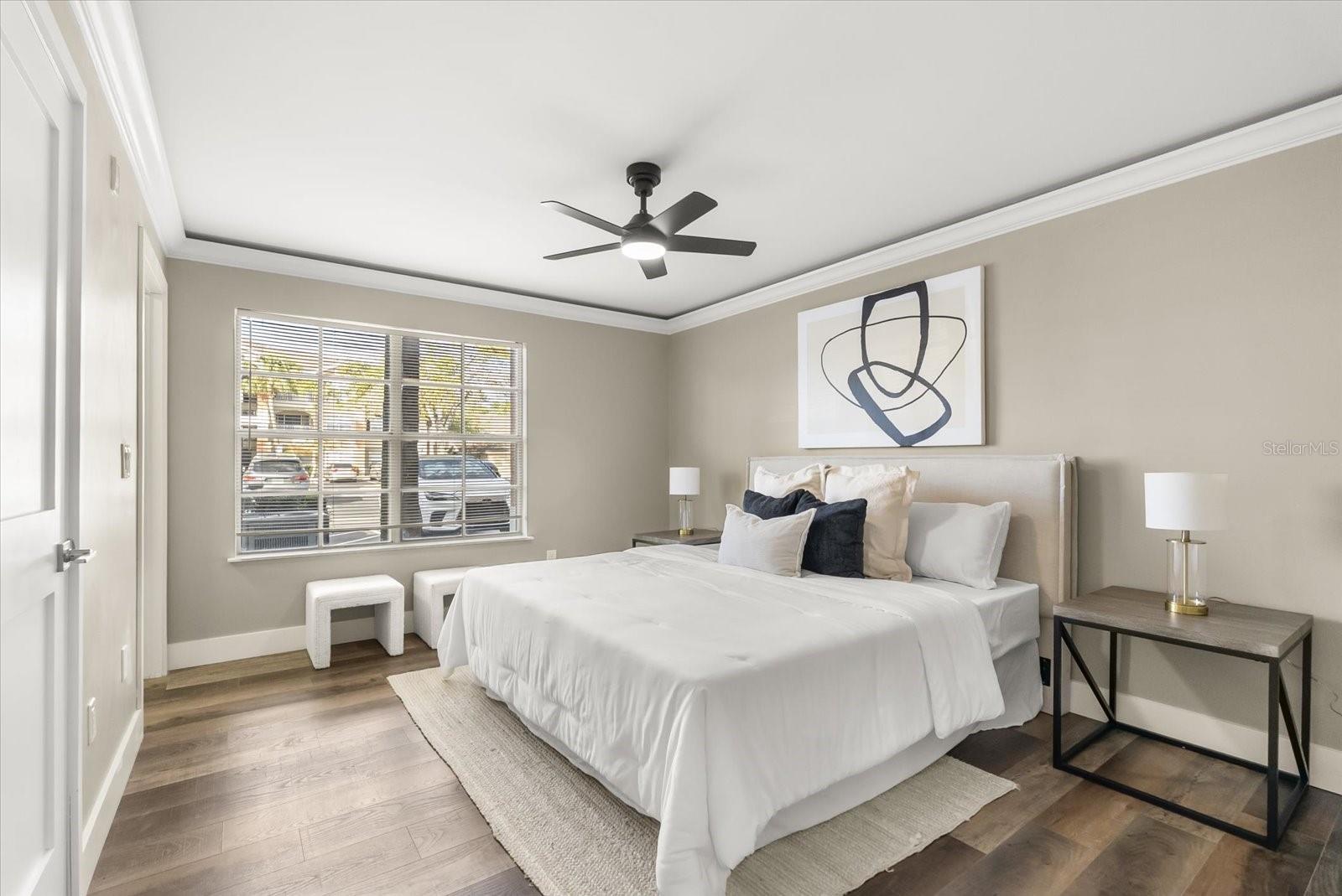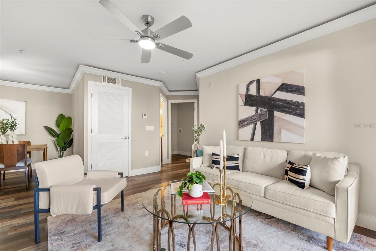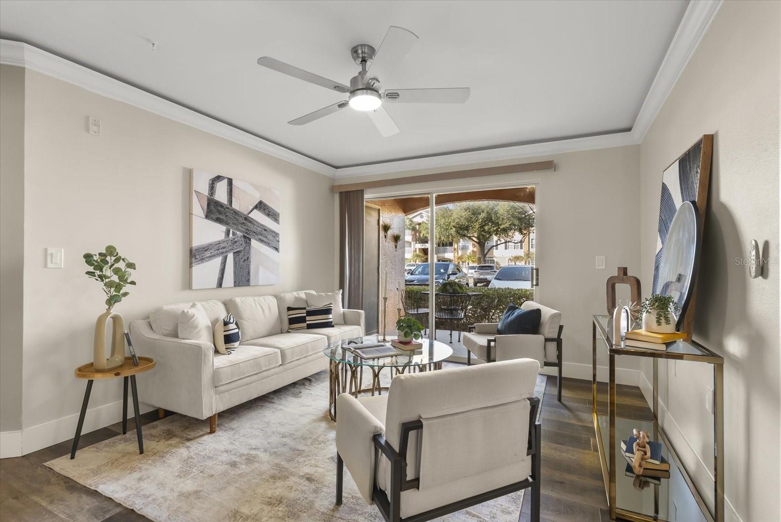 Beautiful, Completely Renovated Ground Level, 2 bedroom 2 bath condominium in Oviedo's Villas at Lakeside. All finishes and surfaces are new! The open Kitchen with breakfast bar features granite countertops, new appliances, and shaker style cabinetry. The combination kitchen/living/dining spaces have all new paint, crown molding and LED lighting. These updates continue throughout the rest of the unit with multiple designer accents including a stone accent on breakfast bar and built in shelving in the guest room. The primary suite boasts a walk-in-closet and newly renovated ensuite. The second bath was also newly renovated. A indoor laundry room with extra bonus storage room completes the functional redesign of the spaces. This popular ground floor unit also has an open patio with storage. The community itself is well appointed with clubhouse, pool, tennis courts, fitness center, playground, walking paths and benches by the lake, and even a car cleaning facility. Great schools, close to UCF, Seminole State College, Oviedo Medical Center, shopping and restaurants and 417 it is a convenient location for access to Central Florida as a whole. HVAC 2022, installed at the beginning of the renovation, New Electrical Panel/Surge Protection/GFCI Breakers installed in 2023. The wiring was also updated to host the smart LED lighting system.