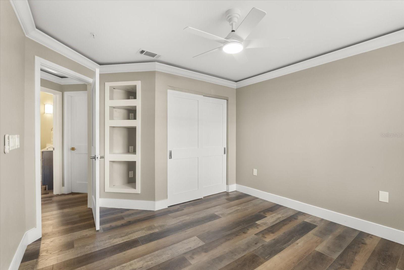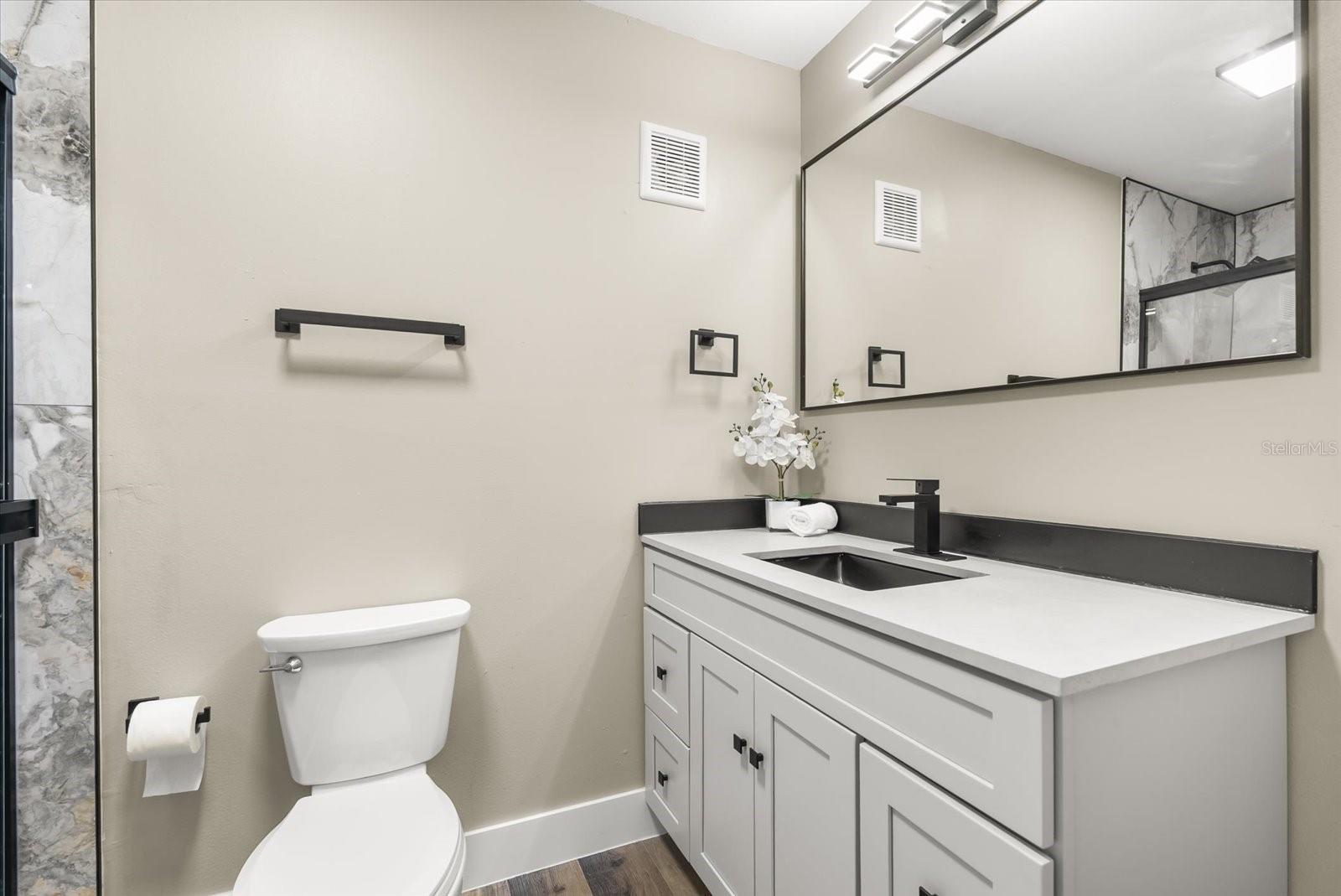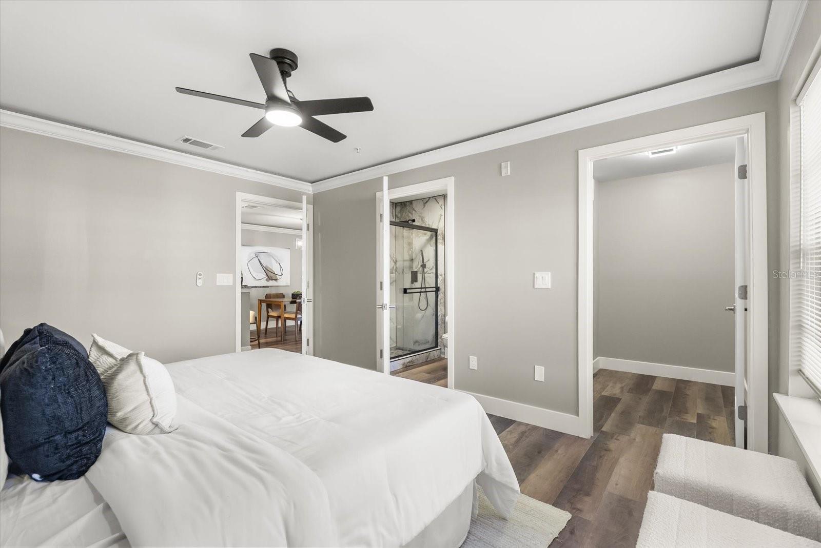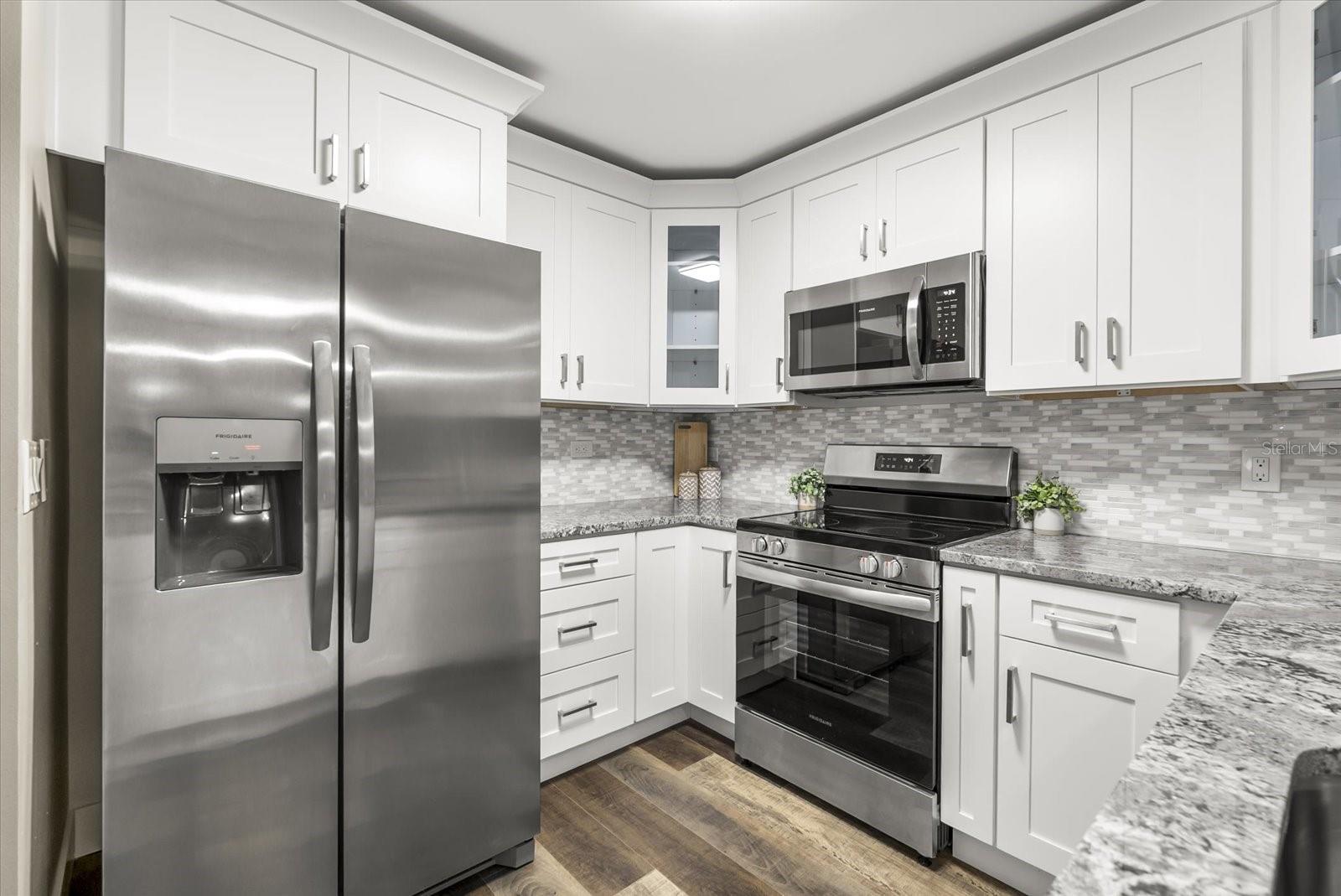 Beautiful, Completely Renovated Ground Level, 2 bedroom 2 bath condominium in Oviedo's Villas at Lakeside. All finishes and surfaces are new! The open Kitchen with breakfast bar features granite countertops, new appliances, and shaker style cabinetry. The combination kitchen/living/dining spaces have all new paint, crown molding and LED lighting. These updates continue throughout the rest of the unit with multiple designer accents including a stone accent on breakfast bar and built in shelving in the guest room. The primary suite boasts a walk-in-closet and newly renovated ensuite. The second bath was also newly renovated. A indoor laundry room with extra bonus storage room completes the functional redesign of the spaces. This popular ground floor unit also has an open patio with storage. The community itself is well appointed with clubhouse, pool, tennis courts, fitness center, playground, walking paths and benches by the lake, and even a car cleaning facility. Great schools, close to UCF, Seminole State College, Oviedo Medical Center, shopping and restaurants and 417 it is a convenient location for access to Central Florida as a whole. HVAC 2022, installed at the beginning of the renovation, New Electrical Panel/Surge Protection/GFCI Breakers installed in 2023. The wiring was also updated to host the smart LED lighting system.