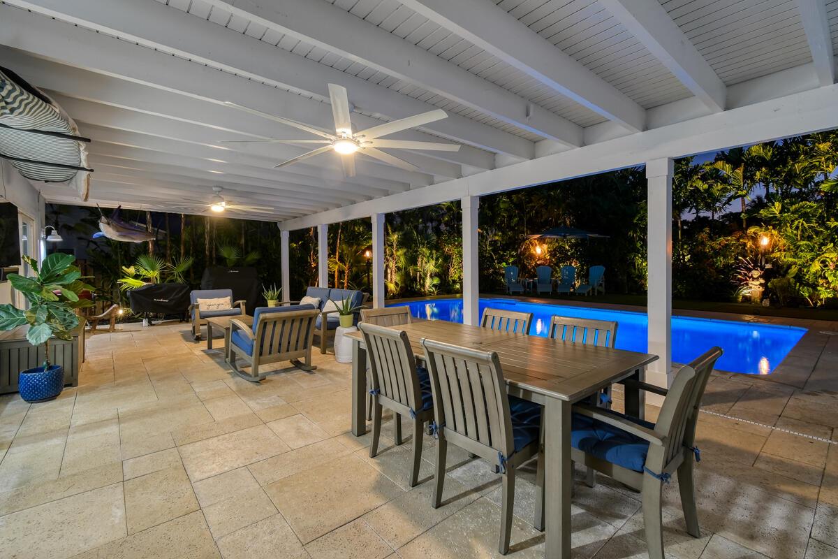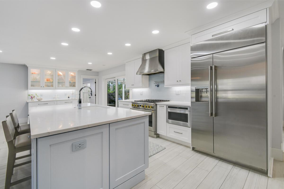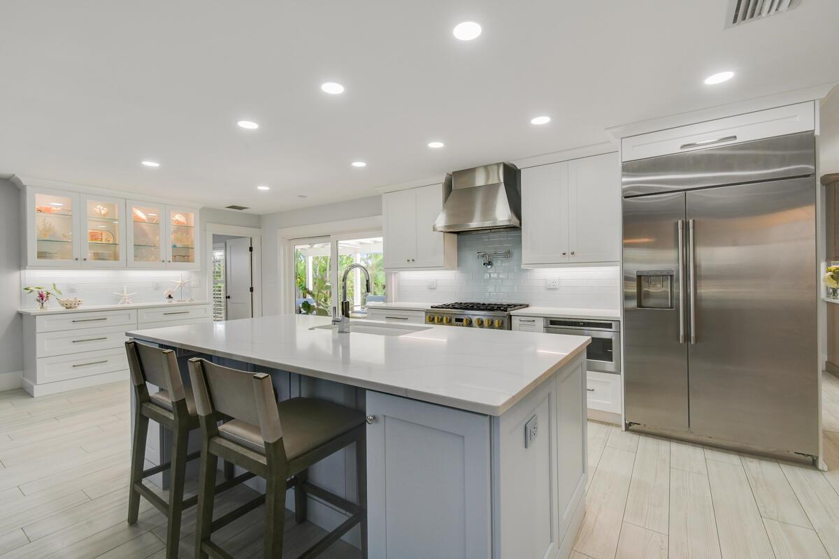 Here's a quick peek at this stunning move-in-ready home in the highly sought-after Bermuda Terrace boating community: 4 BR, 2.5 BA, 2-car garage. Built with solid CBS construction and a durable metal roof, this 2,289 sq ft under air (3,417 total sq ft) home is light, bright, and island-inspired, featuring high-end finishes throughout. The expansive 40x20 lanai overlooks a resurfaced Bahamian blue pool and an ultra-private turf backyard with putting and chipping greens--perfect for relaxing or entertaining. The custom gourmet kitchen boasts Monogram appliances, including a 36'' dual fuel range, 42'' built-in refrigerator, microwave drawer, butler's pantry, pot filler, and large island with seating and tons of storage. Additional highlights include a whole-house generator, impact windows, &