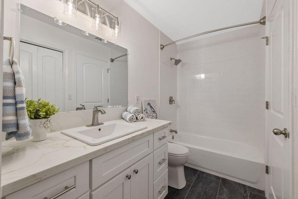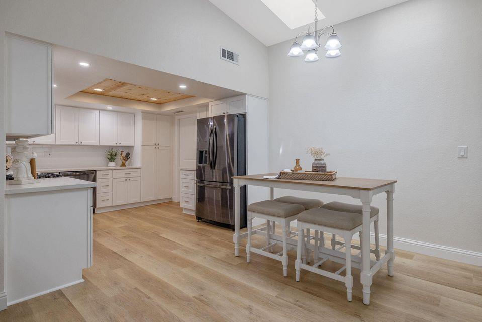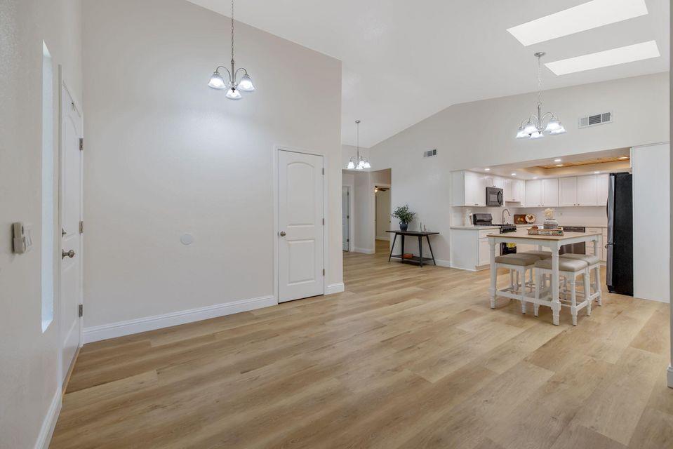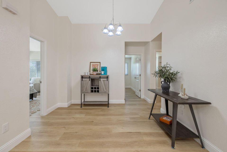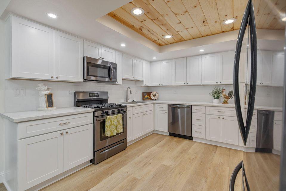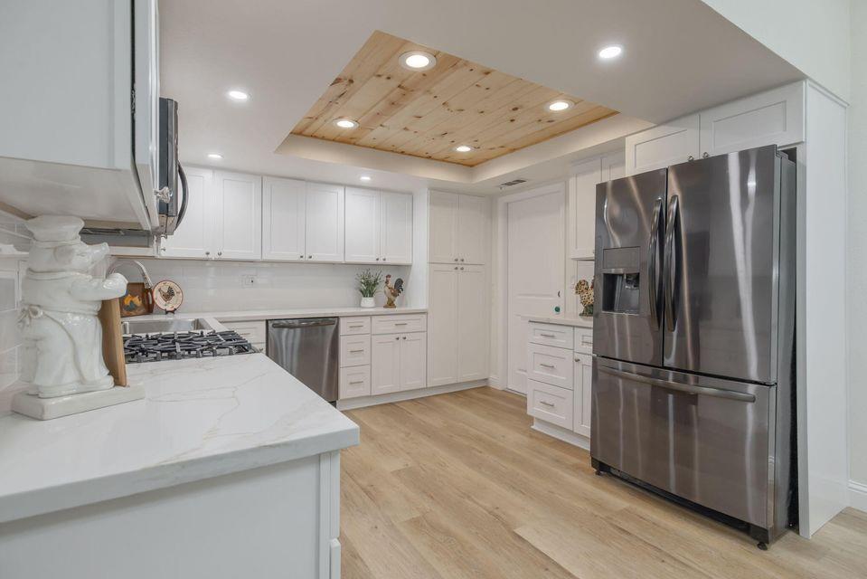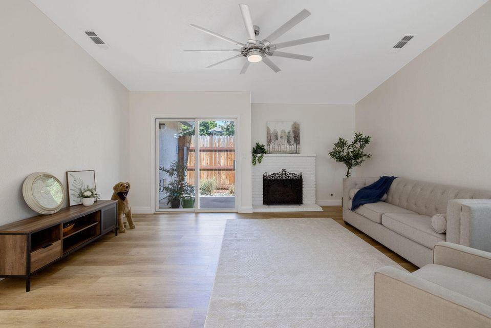 his adorable cottage-style retreat is fully renovated and move-in ready. Welcome to this beautifully reimagined home where every detail has been thoughtfully updated to perfection. Vaulted ceilings in living area and an open floor plan create a bright, airy feel, while the living room's charming fireplace and sliding door opens to your own private patio. The kitchen is a showstopper with brand-new cabinetry, gleaming quartz countertops, a farmhouse-style stainless steel sink, subway tile backsplash, and stainless steel appliances all set against the warmth of luxury vinyl plank flooring throughout. A wood-accent ceiling adds a unique designer touch in the stunning kitchen. Both bathrooms are fully remodeled, each with new slate flooring, new cabinetry and quartz counters, and updated fixtures. The primary bath boasts a step-in shower, while the secondary bath offers a bright, spa-like ambiance. Enjoy the convenience of a whole-house reverse osmosis water purification system for fresh, clean drinking water. Outside, a tall privacy fence encloses the yard and behind the fence the pathway opens up to your own secret garden complete with a fire pitperfect for cozy evenings under the stars. As part of this welcoming community, you'll have access to a sparkling pool, tennis court, and a park-like playgroundideal for recreation and relaxation. This home blends modern finishes with cottage charm, offering a turn-key living experience you'll instantly fall in love with. Just steps to Annie Mitchell Elementary School. Near all amenities. From the moment you walk in, you will know this gem is the one! Tour this home in the attached 3D now, then call to experience it in person!