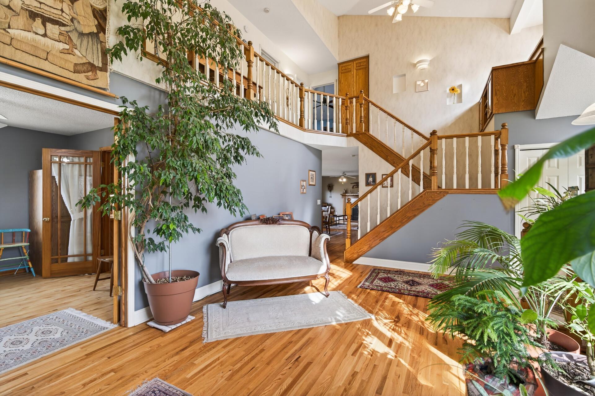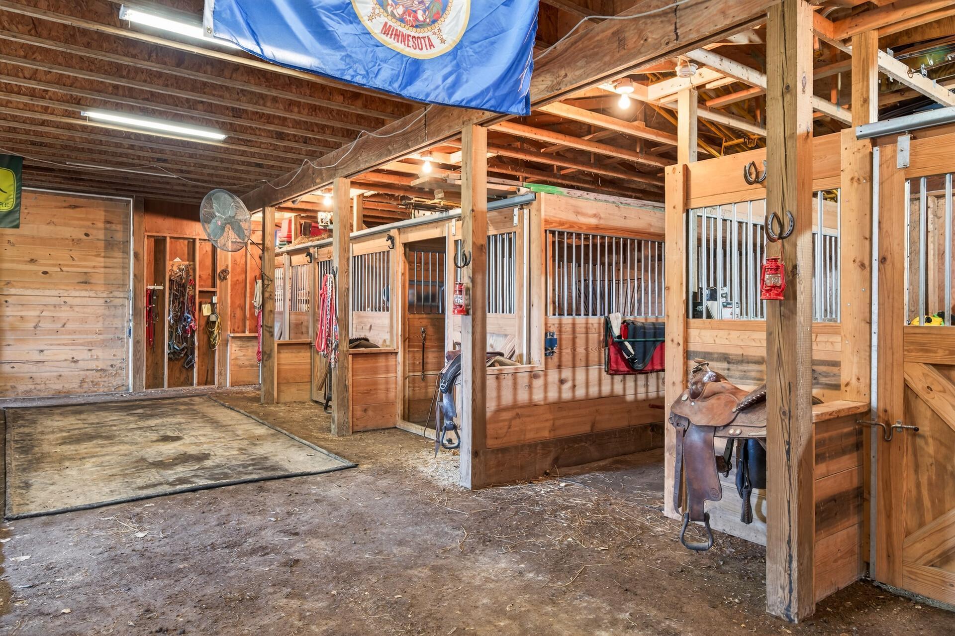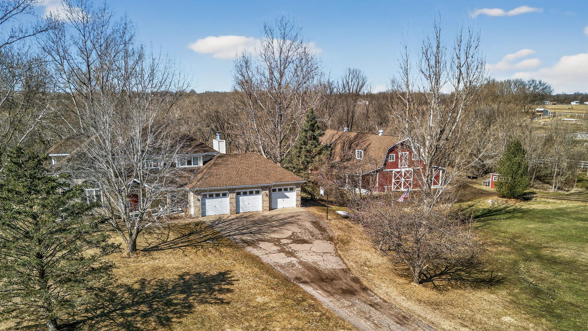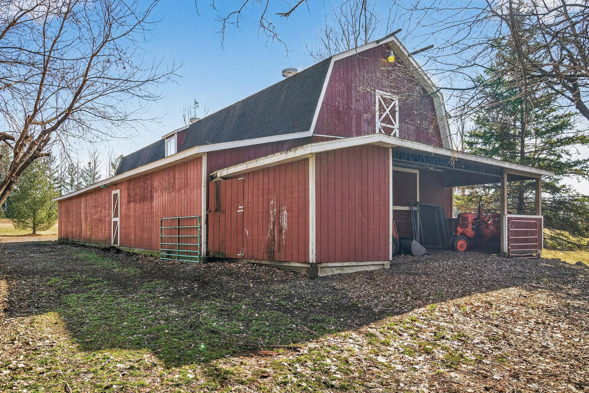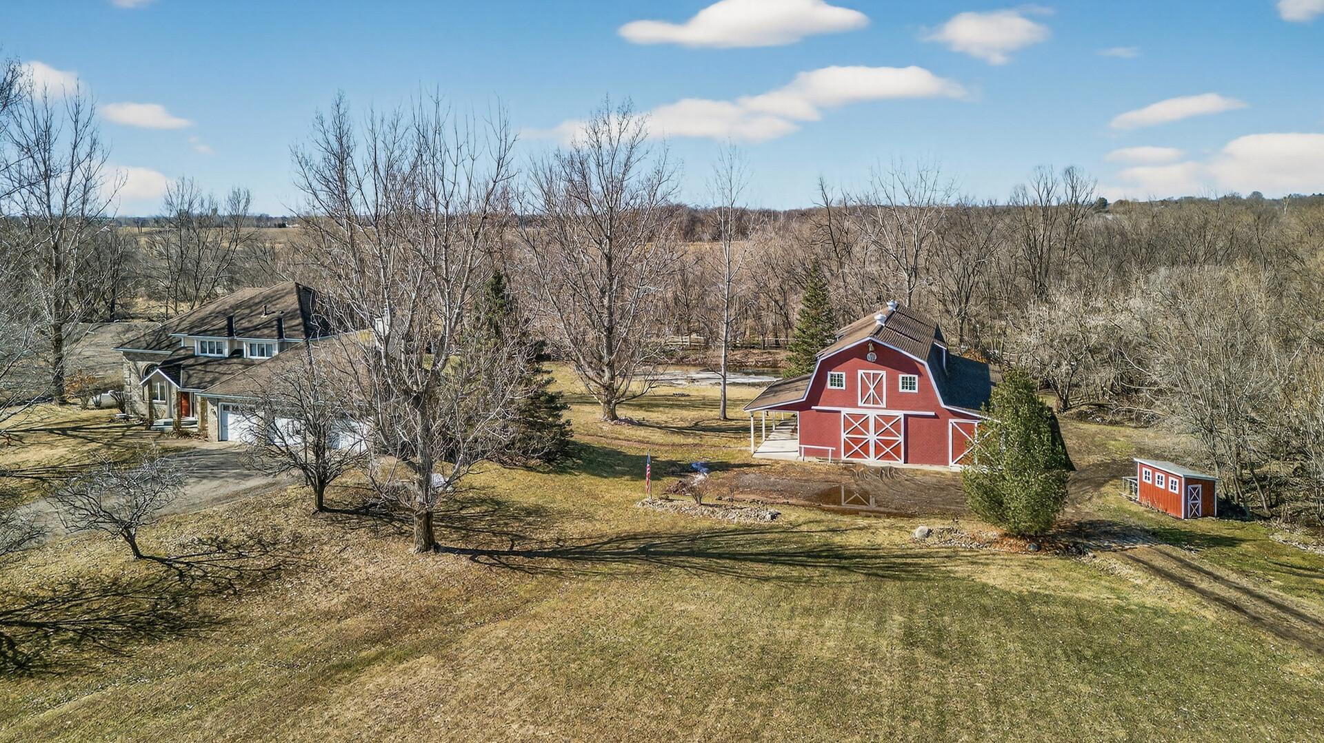 Horse Property Hobby Farm Barn with Stalls 7.9 Acres with Pasture and Pond. A Rare opportunity to own a horse property on 7.9 acres offering the perfect combination of equestrian amenities, hobby farm acreage, and an executive two-story home. Ideal for buyers searching for a horse farm, hobby farm with barn, or acreage property with pasture and outbuildings. The property includes a 41x71 stick built barn with four horse stalls, a 26x71 hay loft, and a dedicated workshop area, making it perfect for horse owners, hobby farmers or anyone needing space for equipment and animals. The 7.9 acres feature pasture and tillable land, giving horses room to graze and providing flexibility for riding space, gardening, or additional farm use. Additional outbuildings include a chicken coop, and the property overlooks a private pond complete with its own ice-skating warming house, creating a truly unique year-round lifestyle property. The impressive executive two-story home welcomes you with a grand two-story entrance and offers 5 bedrooms and 4 bathrooms with generous living space throughout. Interior features include hardwood floors, two wood-burning fireplaces, and a luxurious primary suite with a see-through gas fireplace. The home also offers main-floor laundry and a spacious walkout basement, providing excellent functionality for everyday living and entertaining. Whether you're searching for a horse property with barn and stalls, a hobby farm with pasture and acreage, a private country estate with outbuildings or hunting right out your backyard this property delivers a rare combination of equestrian infrastructure, scenic land, and executive home comfort.
