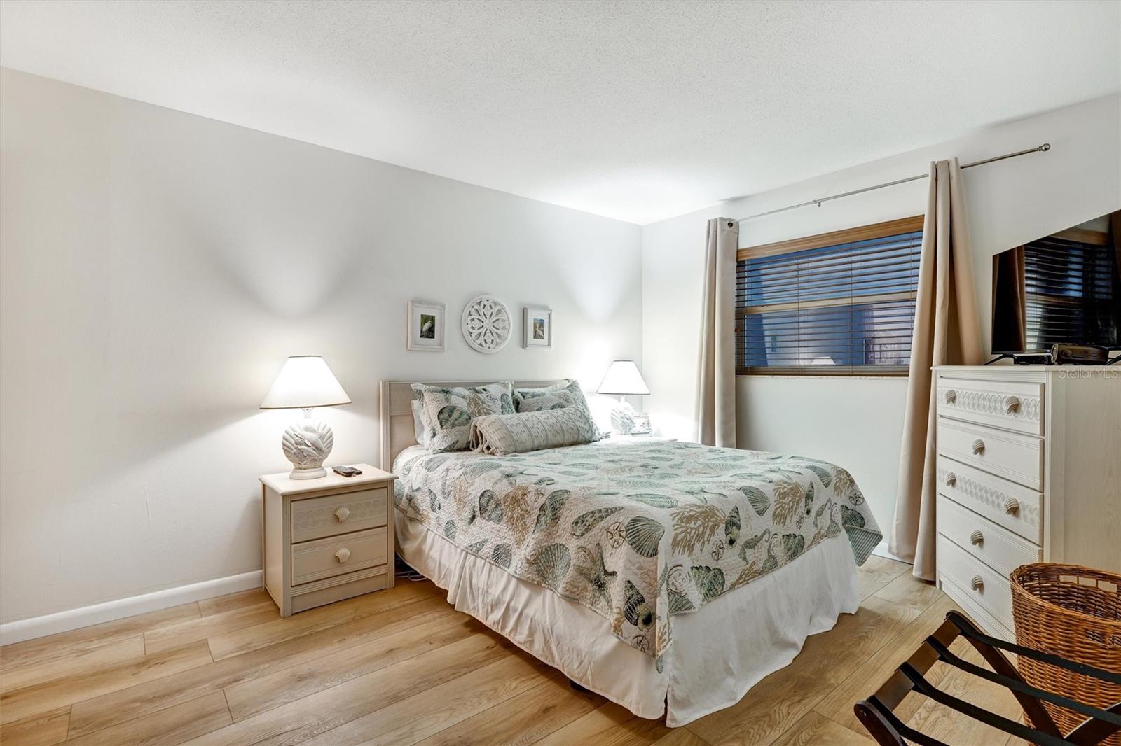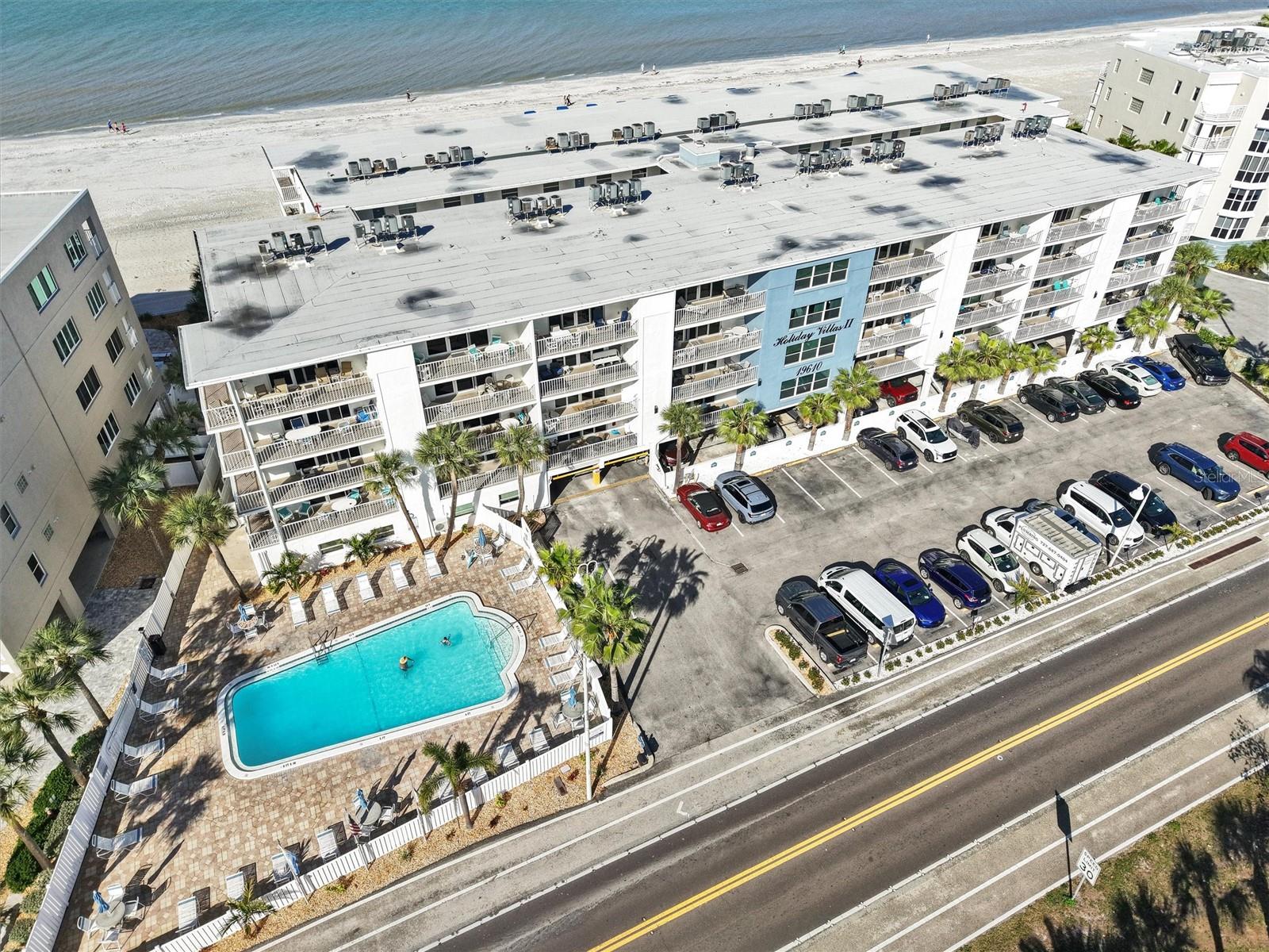 LOWEST PRICED CONDO NOW AVAILABLE AT HOLIDAY VILLAS II!!! COME ENJOY HOLIDAYS IN THE SUN!!! Paradise Awaits! Bring All your Beach toys!!! Enjoy endless sunsets and the carefree beach Life! Priced below market value! Short Term Rentals ALLOWED! Minimal Rental Restrictions! Never flooded. No storm damage to unit or building! The building is elevated above flood level! New natural wood style high quality Laminate Floors recently installed in the 'Primary (master) Bedroom'! New Hurricane Rated, impact resistant Glass Sliding Door wall (plus retractable sliding storm shutters on the balcony for extra peace of mind). Sold furnished with all accouterments. Extra storage on the balcony for all your beach toys. This fully furnished unit is very well maintained and in immaculate condition. Ready to be your primary home, part time beach get-away, and/or a rental source of income. Short-term rentals are allowed with a 4-day minimum. Holiday Villas II provides a heated beachfront pool, outdoor grill, assigned garage covered parking (Space D-8), and quick elevator access. Large ceramic tile floors throughout, with Berber carpet in the 2nd "guest" bedroom. This is the definition of a "turn-key" beach income property! Quaint Indian Rocks Beach is just a short hike up the beach, quick drive, or bike ride to shops, cafes and dining; with seafood restaurant (and other cuisine) selections galore! Catch fantastic sunrises over the Intracoastal waterway from your private balcony with your favorite morning beverage! Take in stellar Beach sunsets within a short 3-min stroll to the beach from your 2nd story Indian Shores condo! Forget the cold winters up north! Come enjoy the Indian Shores Beach Life - where life truly can be a Beach!!!
