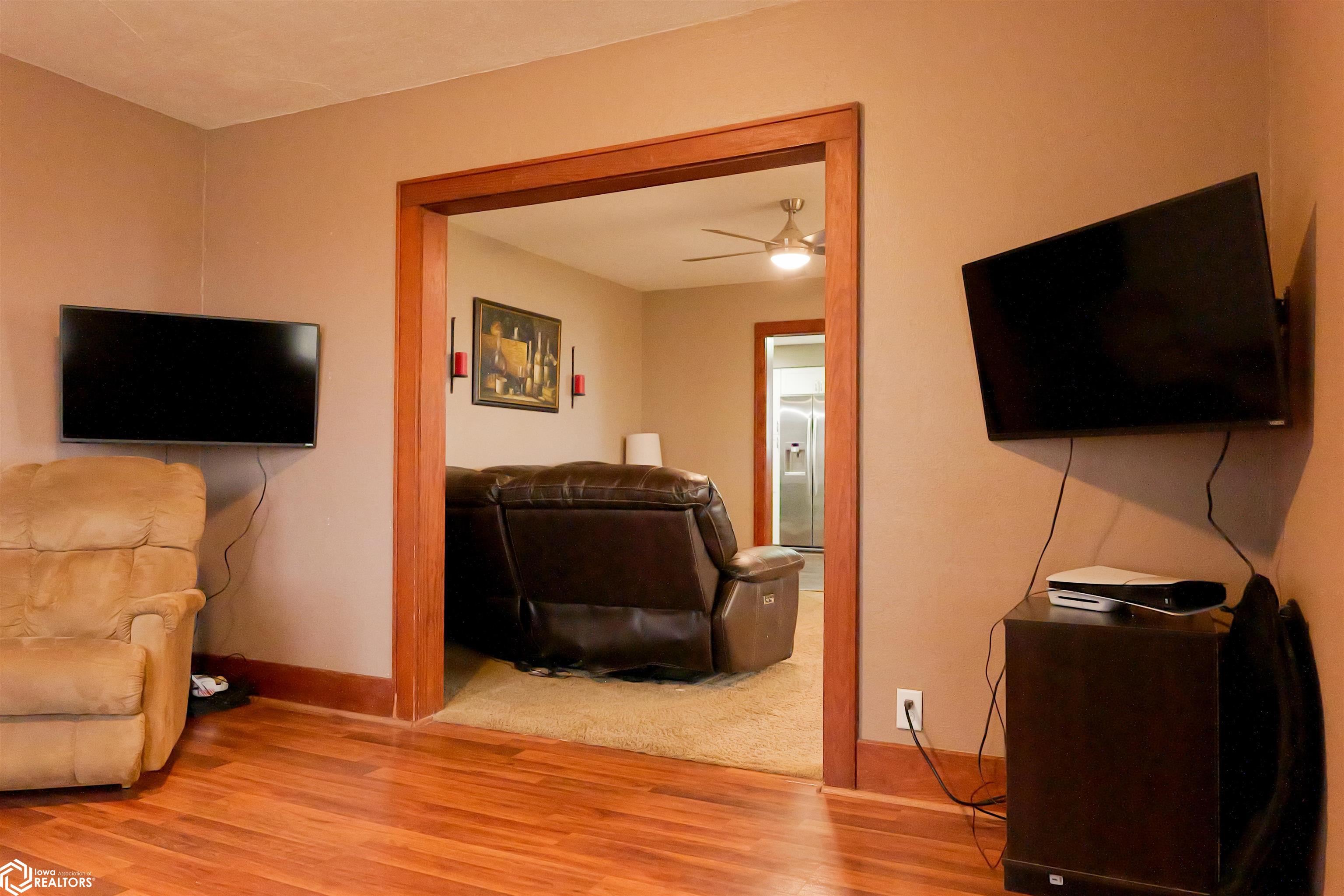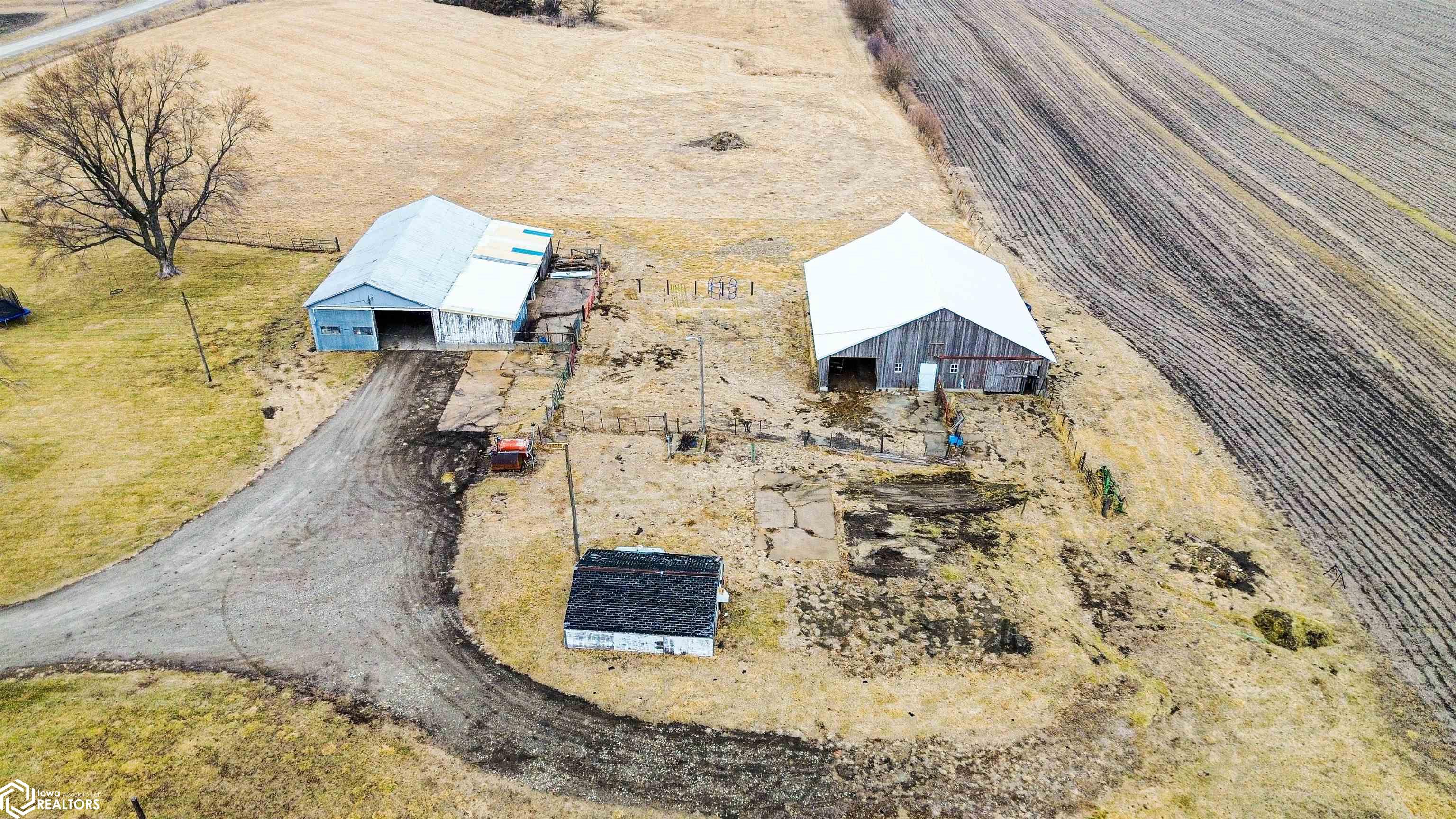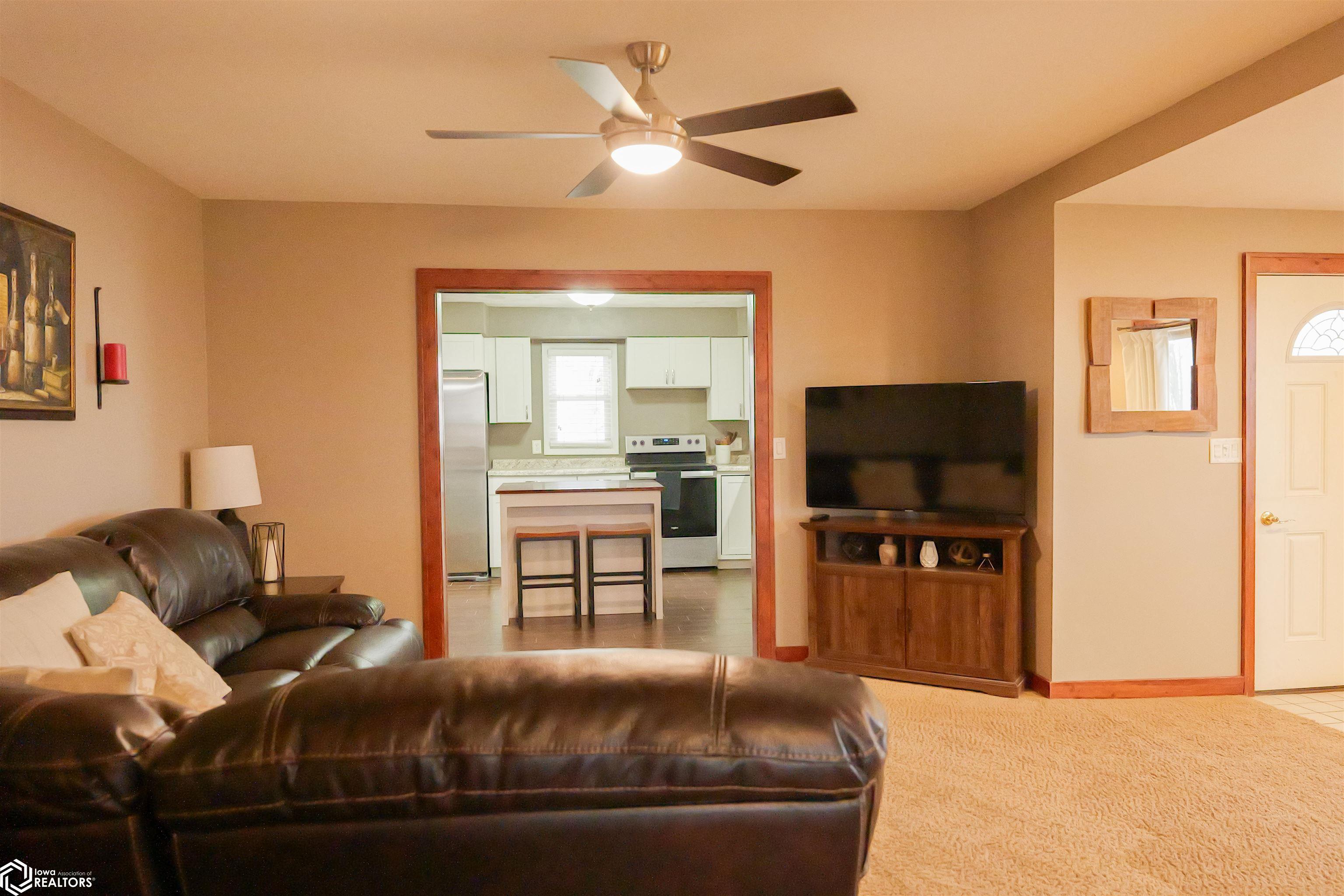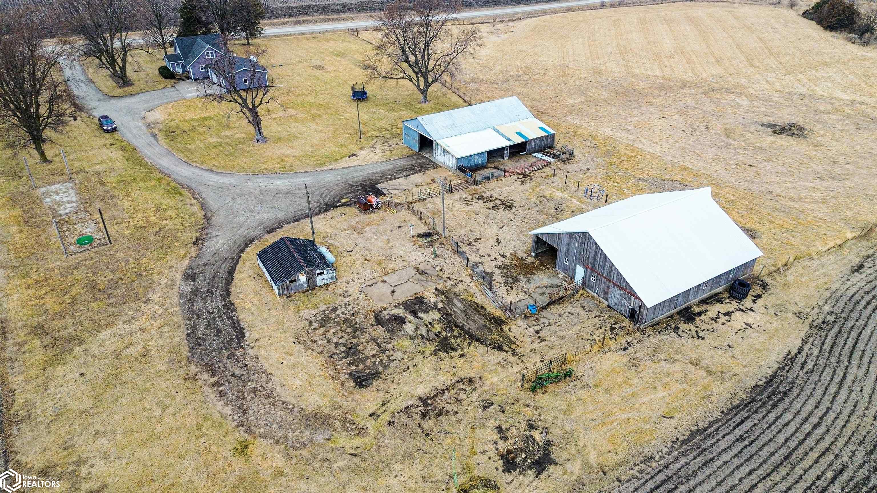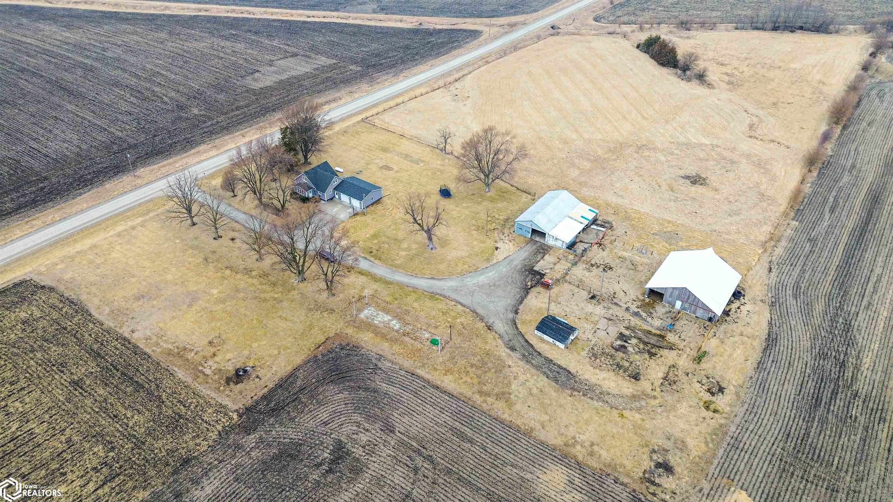 This four-bedroom, two-bathroom bungalow is situated on over three acres, providing tranquil country living with convenient access to town. The home includes a spacious kitchen that flows into the living area, complemented by a bonus room adjoining the primary bedroom. A full bathroom is located on the main level, while the upper bungalow area comprises three additional bedrooms. The basement features another full bathroom, an office space, and a versatile open area suitable for various uses. Additional amenities include an attached two 1/2 car garage and two outbuildings, which offer ample options for storage, workshop space, or other hobbies.