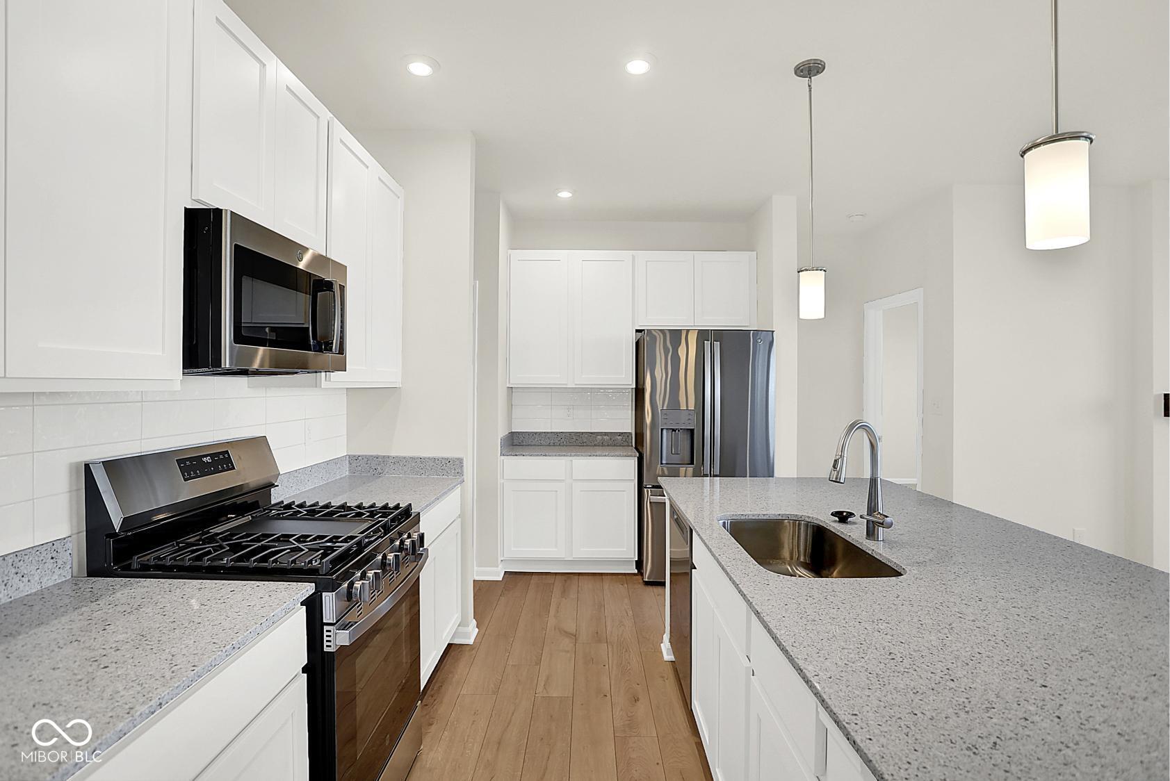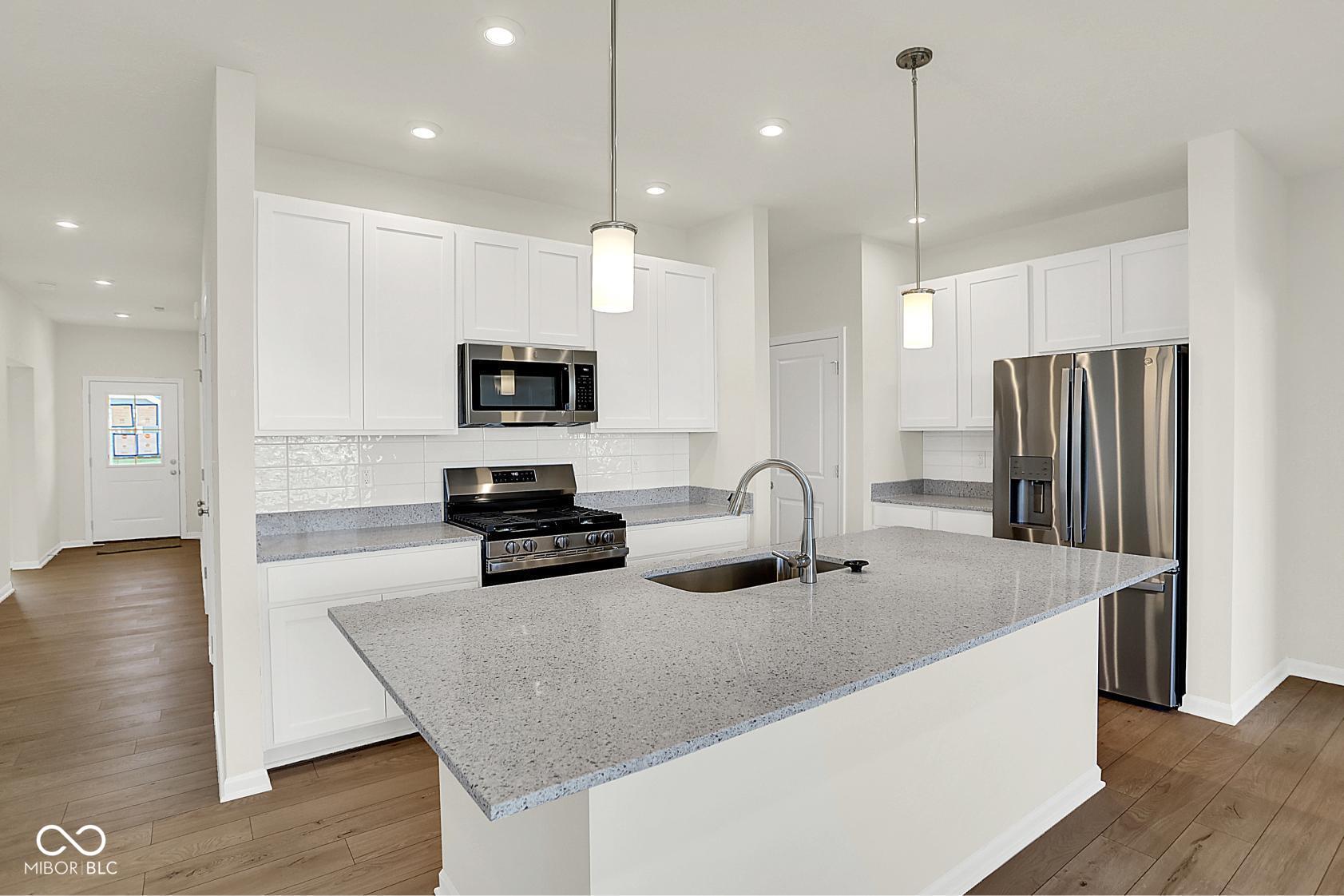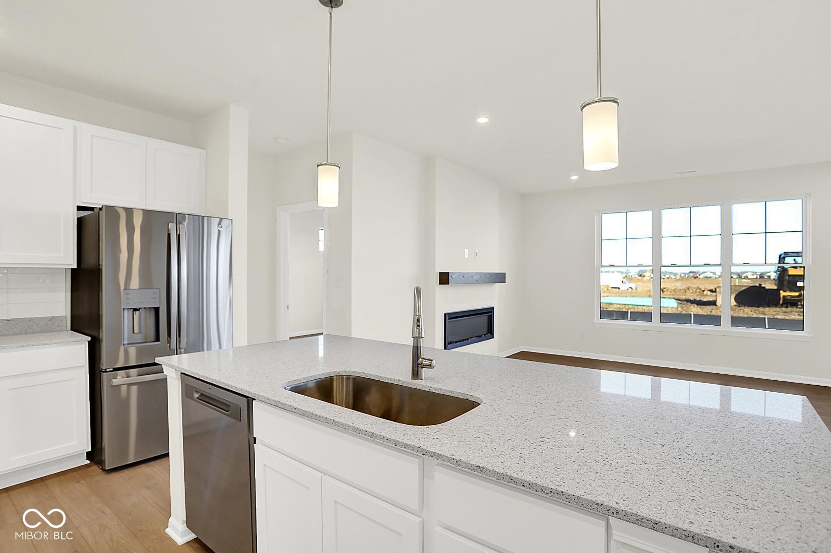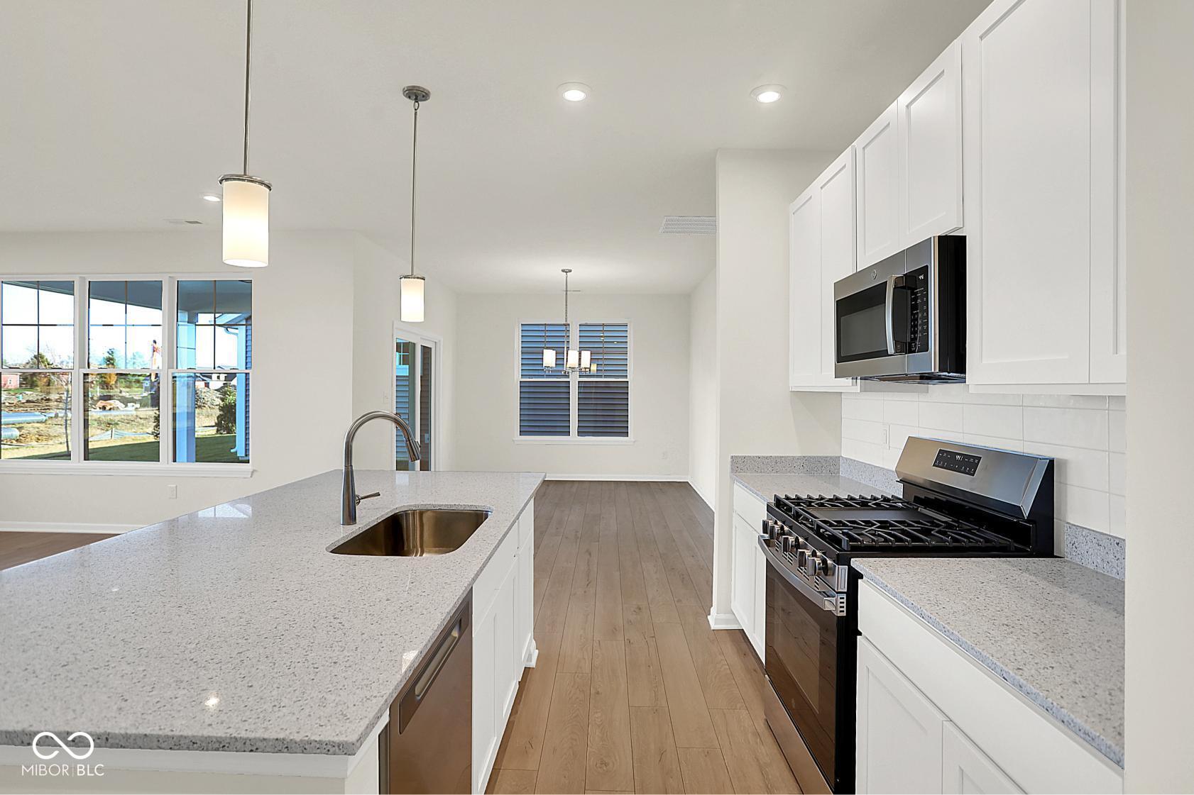 Olthof Homes presents the Harmony. Discover effortless living in this low-maintenance, 3-bedroom, 2-bathroom ranch designed for comfort and style. The open-concept layout features a spacious great room centered around a sleek contemporary fireplace, perfect for relaxing or entertaining. The modern kitchen flows seamlessly into the living and dining areas, making everyday living a breeze. Retreat to the private primary suite with a beautifully tiled walk-in shower and double sinks for added convenience and a spacious walk-in closet. With single-level living, thoughtful finishes, and minimal upkeep, this home offers the ideal blend of luxury and ease. The community is incorporated by the City of Westfield, Westfield Schools. Upgrades in the home: Maple Painted White with Quartz Countertops, 3rd Bedroom in lieu of Flex Room, Contemporary Fireplace, Tiled Shower and Double Sinks in Primary Bathroom, Low Maintenance Living, All 4 GE Stainless Steel Kitchen Appliances.