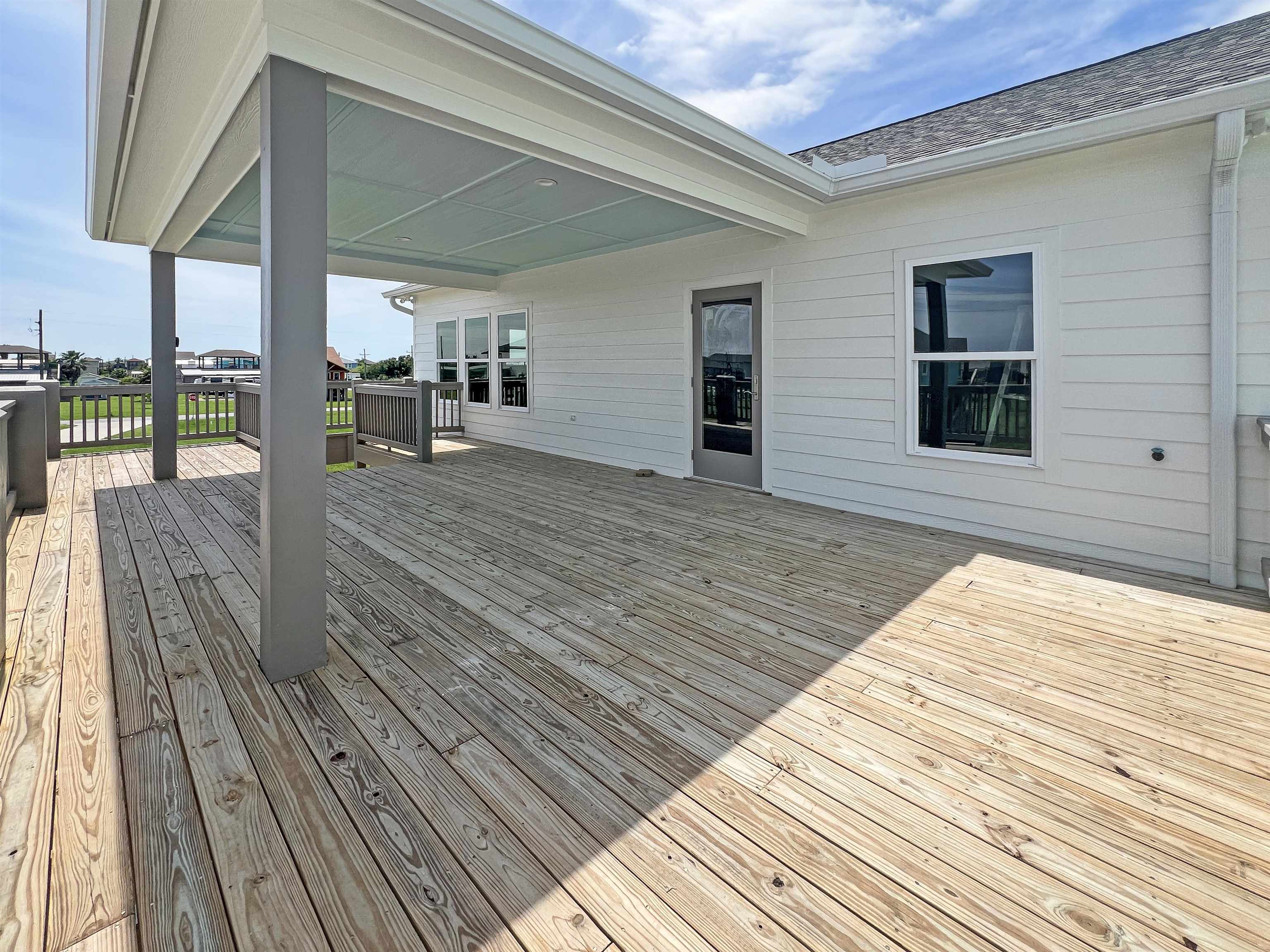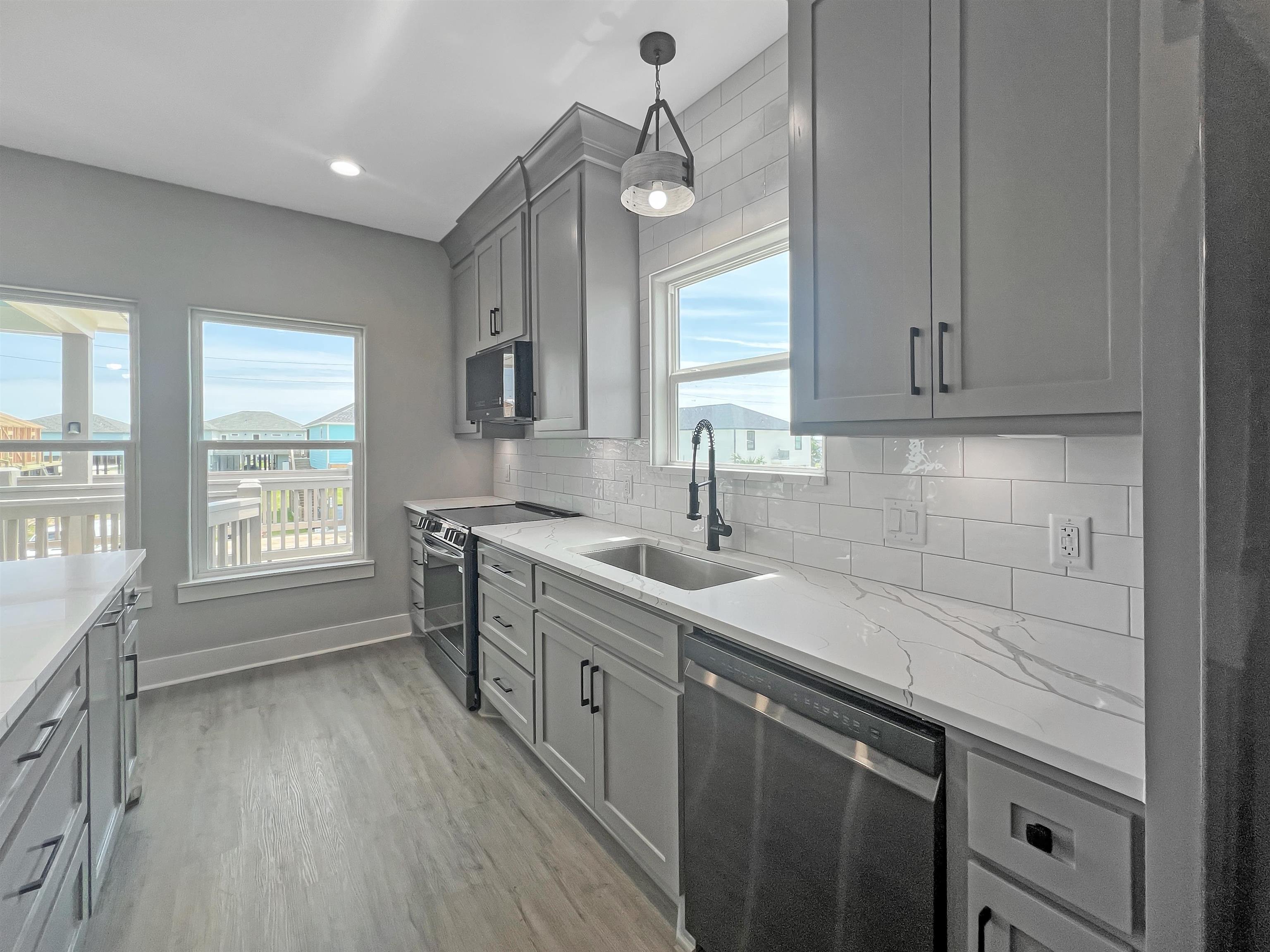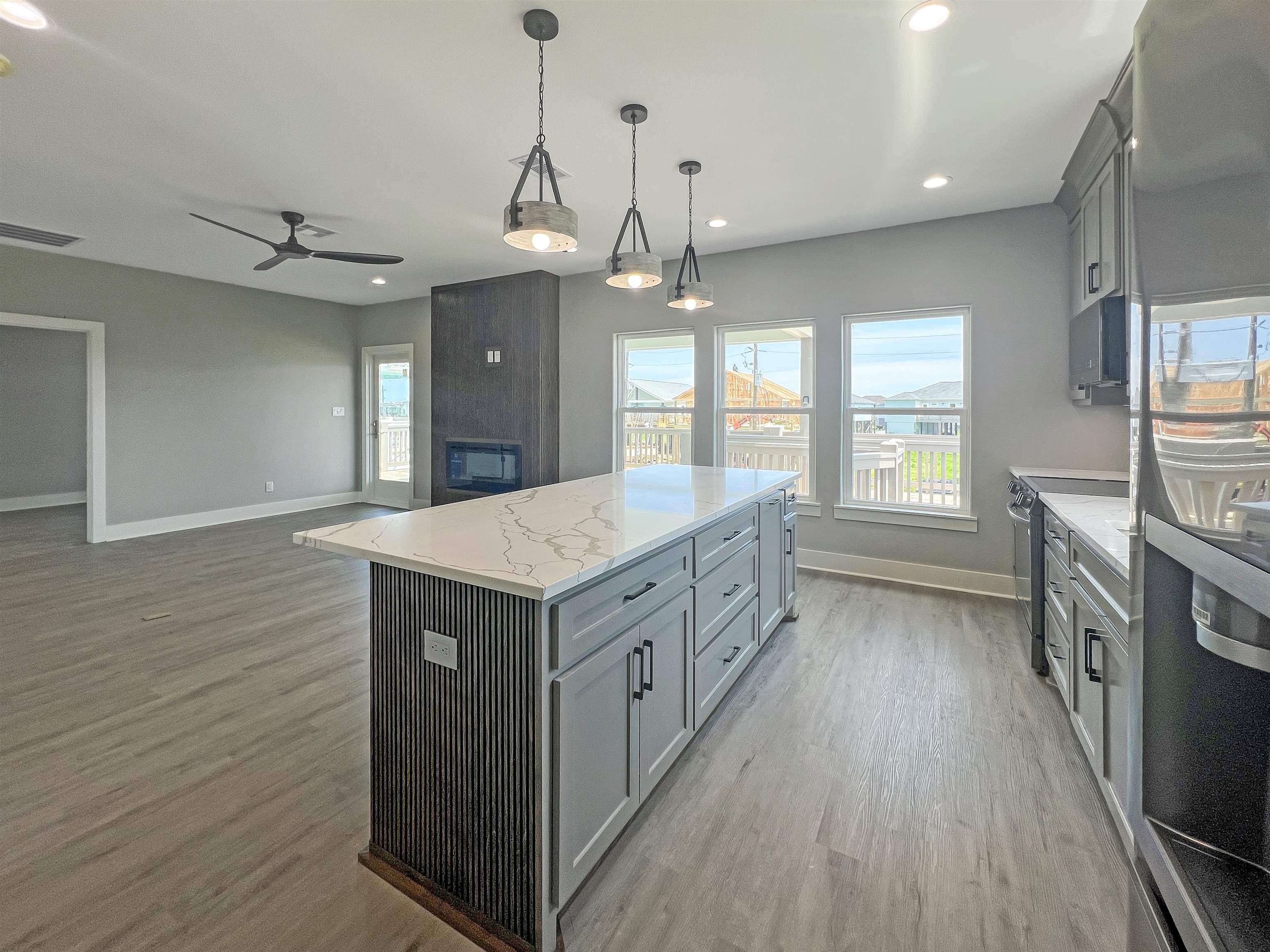 MOVE-IN READY! Amazing 3-2-1 new construction by Easton Homes, known for excellence! This beautiful coastal cottage features a chef inspired kitchen w/custom cabinetry, stainless appliances, quartz counters, electric built-in fireplace with remote plus designer finishes throughout. Primary suite w/built-in king bed, luxury shower w/ frameless glass enclosure & more! Second bedroom offers built-in bunk with full & twin beds! Built 21' above sea level for lowest insurance rates w/premium MI windows & wrapped in moisture resistant Tyvek system + sod is included! This home is built to last while saving you $$ on utilities & upkeep! Downstairs youll find a golf cart garage + foot wash & sand shower for your convenience. Perfect for your family retreat, full time residence or short term rental portfolio!