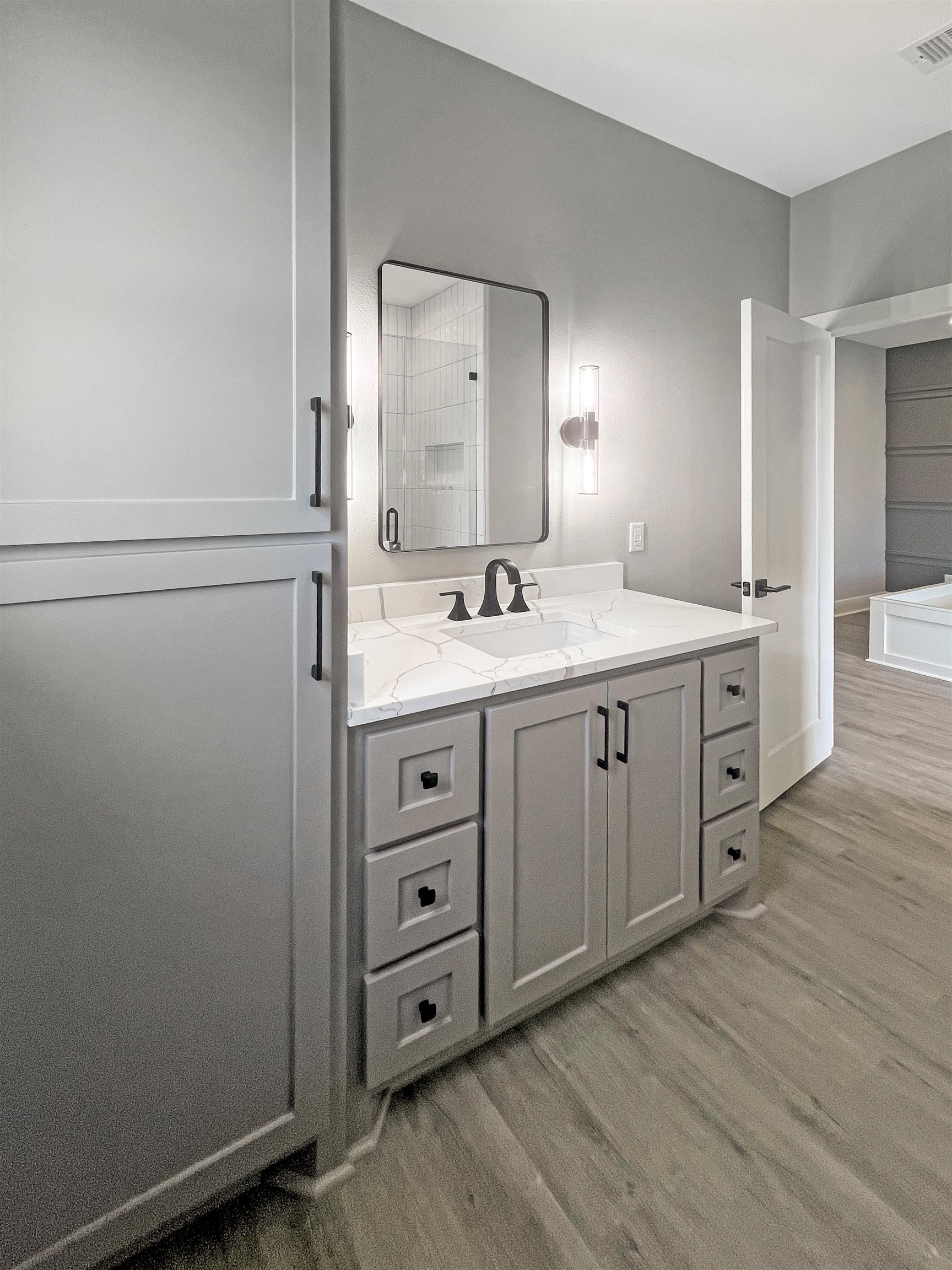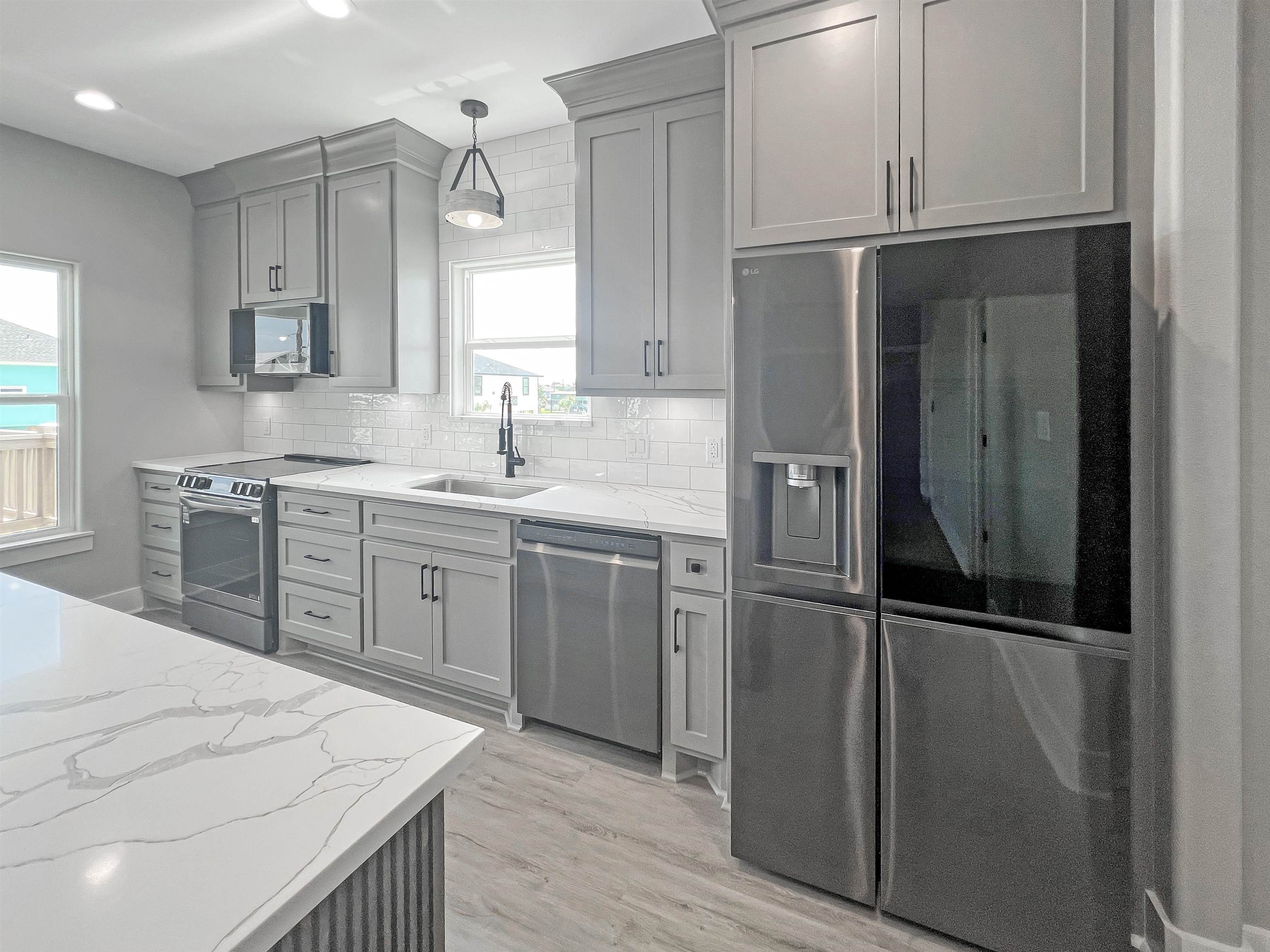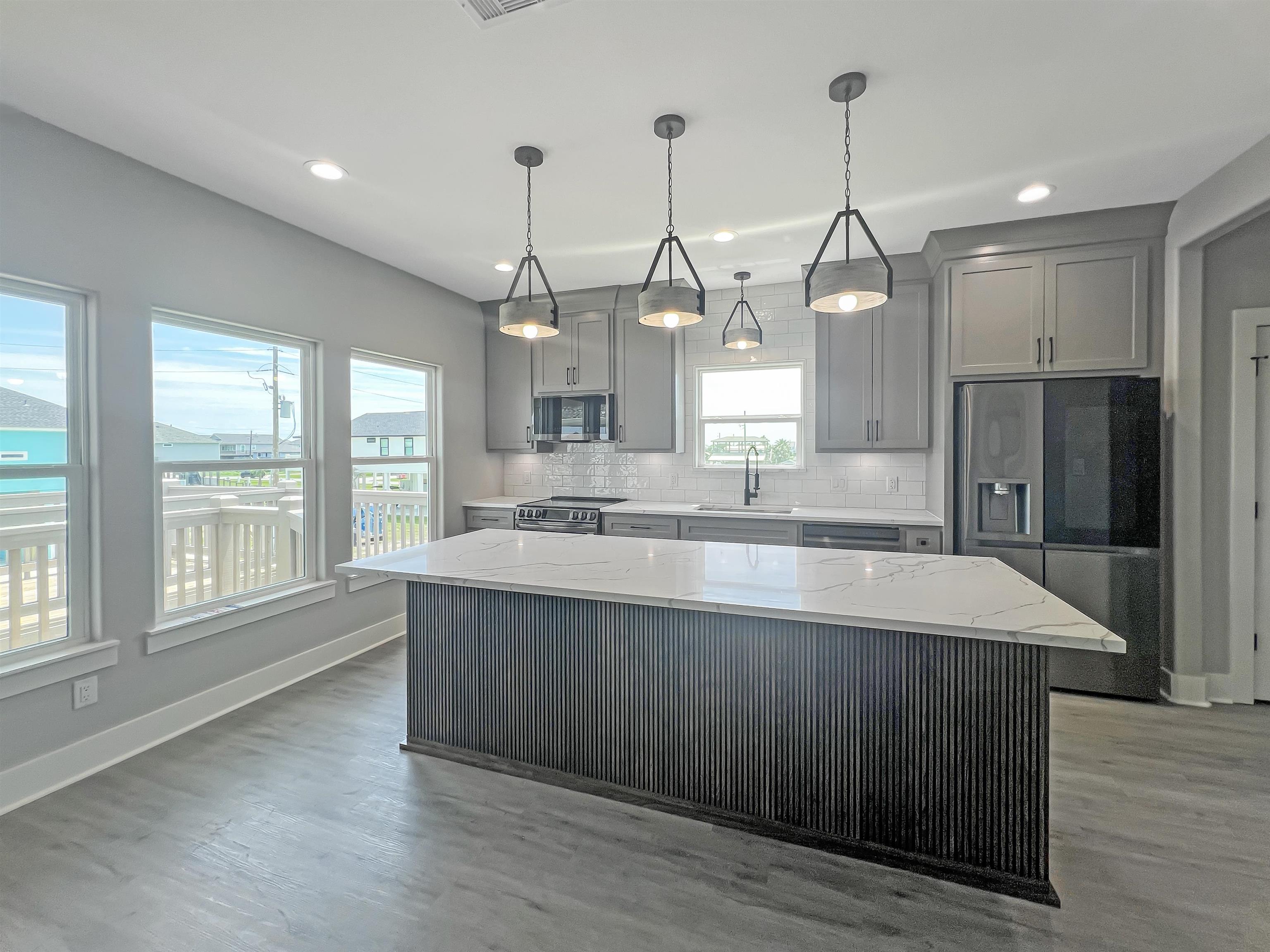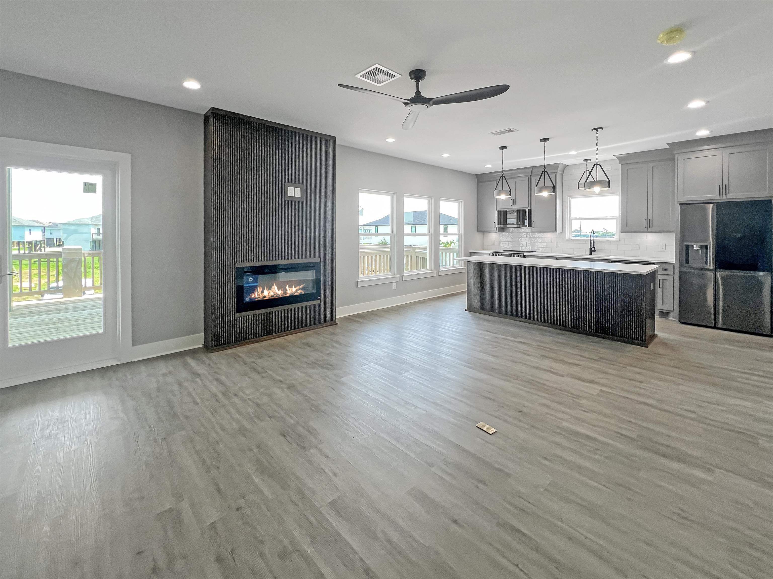 MOVE-IN READY! Amazing 3-2-1 new construction by Easton Homes, known for excellence! This beautiful coastal cottage features a chef inspired kitchen w/custom cabinetry, stainless appliances, quartz counters, electric built-in fireplace with remote plus designer finishes throughout. Primary suite w/built-in king bed, luxury shower w/ frameless glass enclosure & more! Second bedroom offers built-in bunk with full & twin beds! Built 21' above sea level for lowest insurance rates w/premium MI windows & wrapped in moisture resistant Tyvek system + sod is included! This home is built to last while saving you $$ on utilities & upkeep! Downstairs youll find a golf cart garage + foot wash & sand shower for your convenience. Perfect for your family retreat, full time residence or short term rental portfolio!