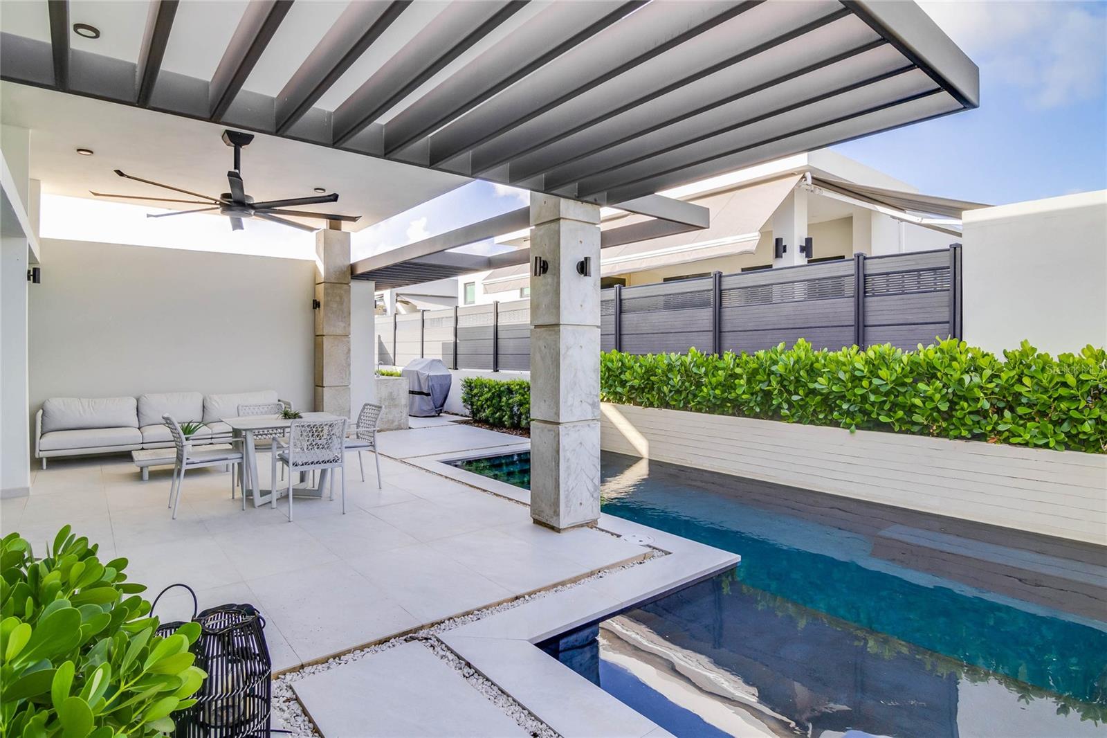 Luxury living awaits at Residences at Rio! This meticulously renovated single-story home, nestled on a tranquil cul-de-sac, epitomizes modern elegance. Experience an airy, light-filled open-concept layout with contemporary touches. Available fully furnished and equipped, move in hassle-free! Featuring 4 bedrooms and 3.5 bathrooms, including a lavish master suite with dual walk-in closets and renovated ensuite bath, a junior suite, and two bedrooms connected by a Jack & Jill bath. Upgraded closets and pantry ensure optimal storage. Enjoy amenities like a 17kw generator, built-in office, gym, basketball court, resort-style pool, and central AC. Property maintenance included. Close proximity to respected schools like Baldwin School and Marista adds to the appeal. Don't miss out on this pinnacle of luxury living!