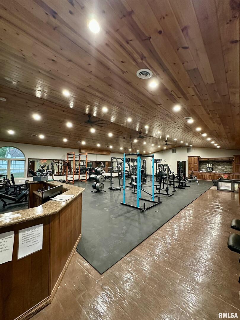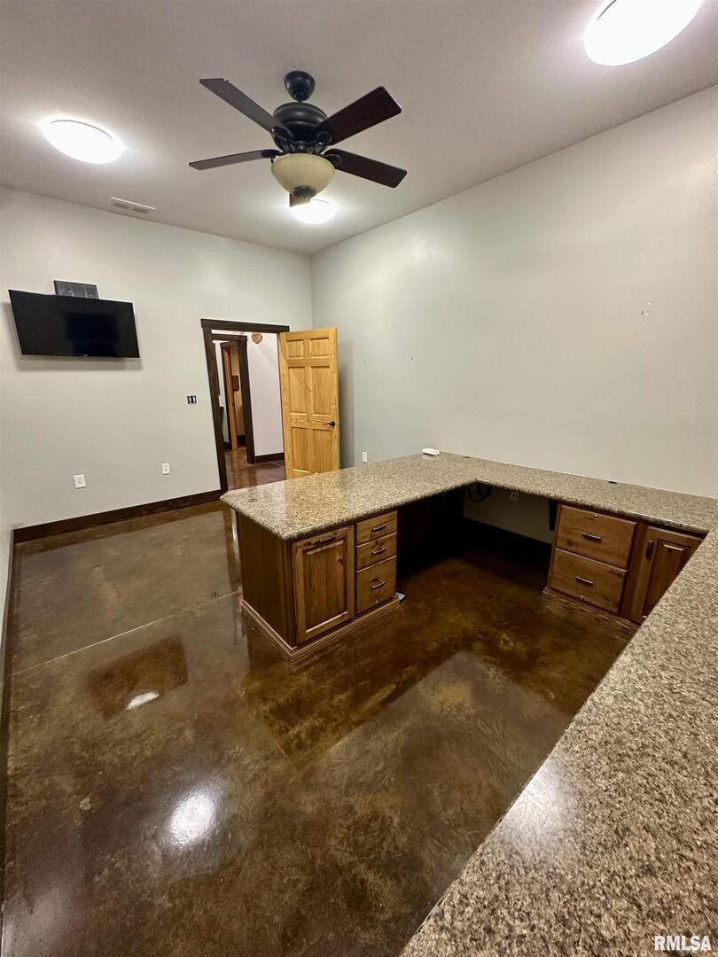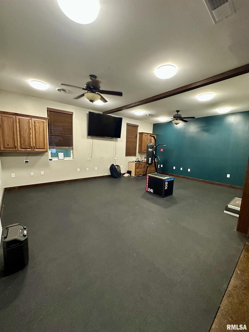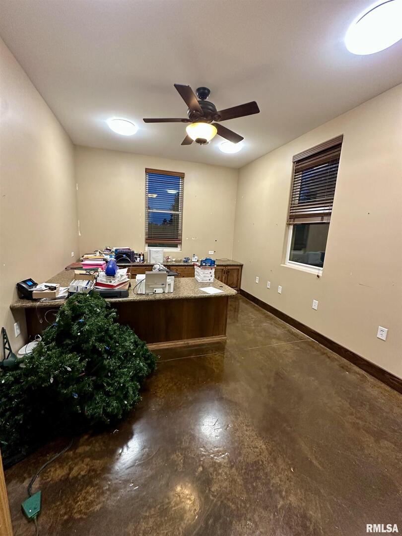 A rare opportunity to live, work, and build your dream all under one roof! This incredible 6,600 sq. ft. property offers the space, flexibility, and foundation to run multiple thriving businesses centered around health, wellness, and better living-while also providing a place to call home. Currently set up as a wellness and fitness retreat, it features a gym with infrared saunas, locker rooms, and showers, massage and aesthetic suites, and a peaceful client lounge. The event area includes a fireplace, full kitchen, snack bar, and dual restrooms, perfect for workshops, gatherings, or private classes. The back section provides five office/studio spaces, a second kitchen, and areas ideal for studio apartments, therapy rooms, or daycare. Outside, enjoy multi-level patios, a stone oven and outdoor kitchen, and ample parking beneath mature trees. Modern comforts include heated concrete floors stamped with a wood look, radiant floor heat, central air, fiber internet, and city utilities. This is more than property-it's a path to independence, community impact, and a life built around wellness and purpose just outside Casey.