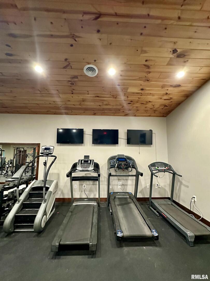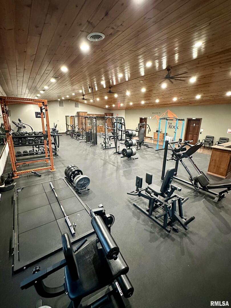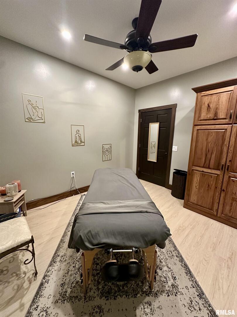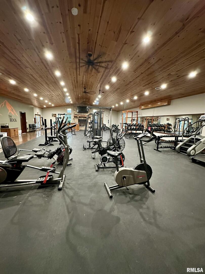 A rare opportunity to live, work, and build your dream all under one roof! This incredible 6,600 sq. ft. property offers the space, flexibility, and foundation to run multiple thriving businesses centered around health, wellness, and better living-while also providing a place to call home. Currently set up as a wellness and fitness retreat, it features a gym with infrared saunas, locker rooms, and showers, massage and aesthetic suites, and a peaceful client lounge. The event area includes a fireplace, full kitchen, snack bar, and dual restrooms, perfect for workshops, gatherings, or private classes. The back section provides five office/studio spaces, a second kitchen, and areas ideal for studio apartments, therapy rooms, or daycare. Outside, enjoy multi-level patios, a stone oven and outdoor kitchen, and ample parking beneath mature trees. Modern comforts include heated concrete floors stamped with a wood look, radiant floor heat, central air, fiber internet, and city utilities. This is more than property-it's a path to independence, community impact, and a life built around wellness and purpose just outside Casey.