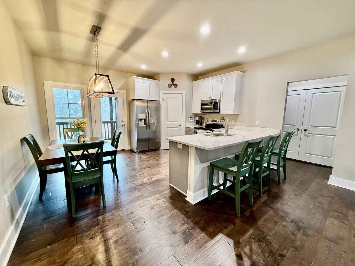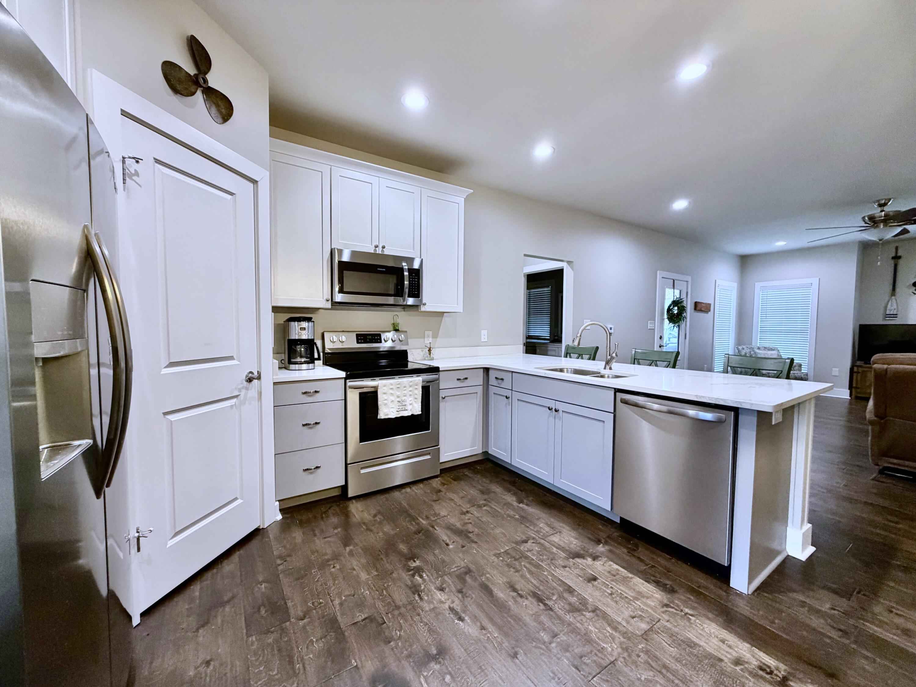 One level with Open Floor Plan. Built 2020. This 2 Br, 2 Bath is ready for a full-time owner or weekends at Pickwick Lake. Large Living/Dining/Kitchen area. Granite and stainless appliances in the kitchen. Both bathrooms have a tile walk-in shower and double vanity sinks. Open porch and a Screen Porch on the back overlooking the woods. Mostly furnished; a list of what Won't Convey will be agreed upon before Closing. Concrete driveway. Pickwick St. Park nearby. A must see!