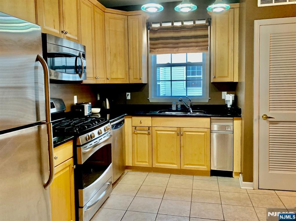 17 year young 2-level condo. Brewster Model (1,340 sf) with 1 covered parking space. Central air. 9'ceiling on 1st level. Living Rm: 14'2x18'6, Dining Rm: 10'3x11'1, Kit: 11'2x11'6, BRs: 14'2x11'2 & 16'2x14'. Hardwood fls on 1st level. Porcelain plank fls on 2nd level & landings. Granite countertop, maple cabinets & crown molding above kit cabinets. Updated vanity, medicine cabinet & bath walls in master bath. Tenant pays all utilities including water & sewer. Walk to Path in 12 minutes. Good credit required. Flood insurance covered by HOA fees. Available to occupy around 2/1/26. Security Deposit:1.5 months. $250 move-in fee, $200 moving deposit & renter's insurance required by condo management. Photos taken before current tenant moved in. One fully trained pet under 40 lbs can be considered for $50 a month. Maximum occupancy: 4. Refrigerator, gas range, dishwasher, washer & dryer included. No loud music & no smoking in or near the apartment. Balconies in entire community cannot be opened or used. Access to gym/clubhouse/pool & shuttle to path requires annual membership enrollment every November with fees. Walk to Path Station in 12-15 minutes. Close to Newark Light Rail, NJIT, Rutgers University, NJPAC, Prudential Center & Red Bull Stadium. Convenient to Turnpike, Parkway, Rt. 280 & Rt. 21. Attached photos were taken before current tenants moved in.