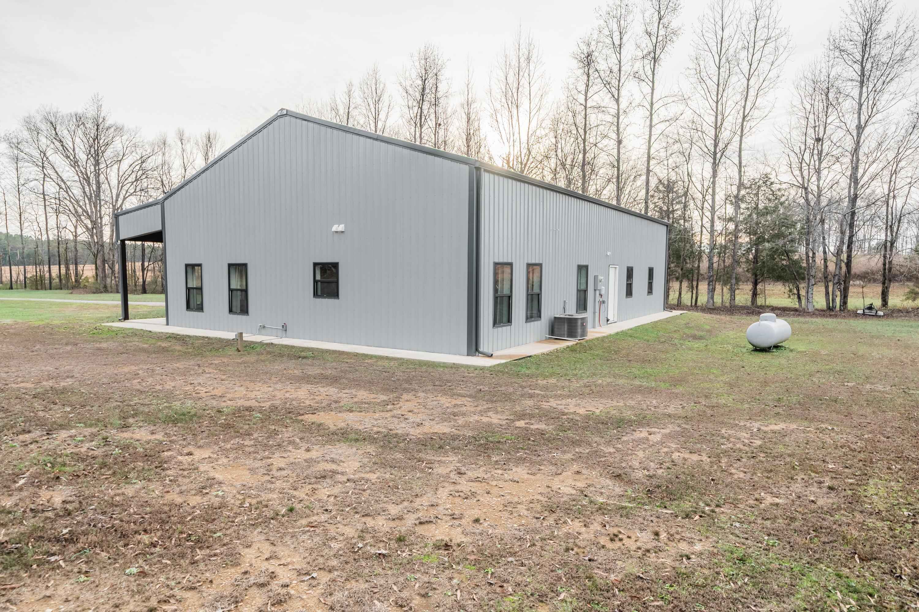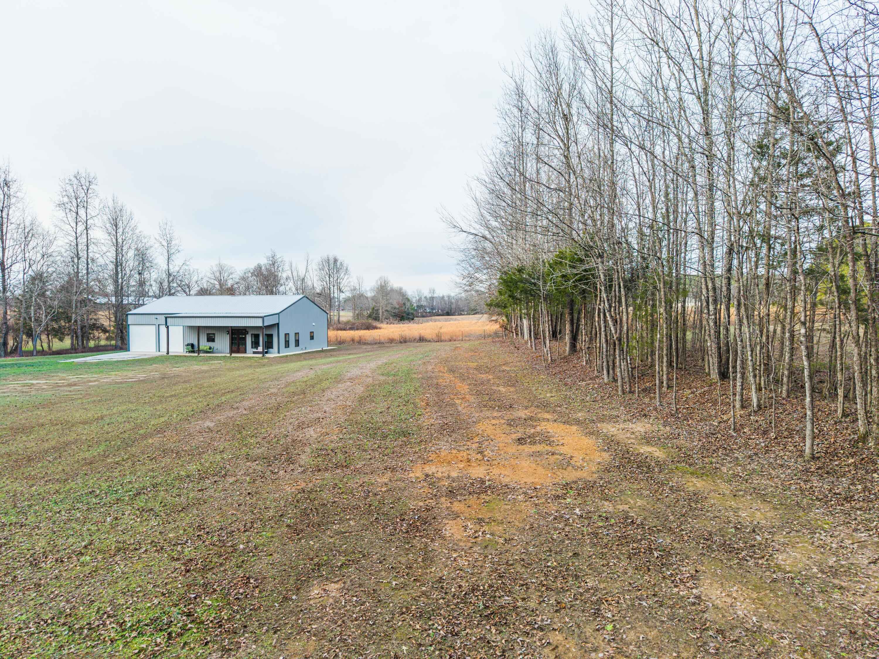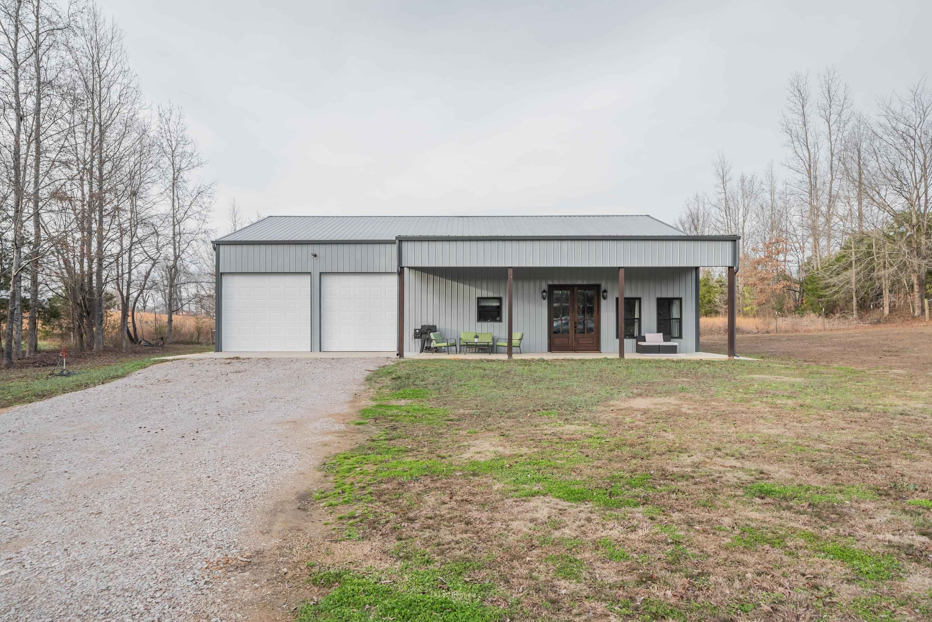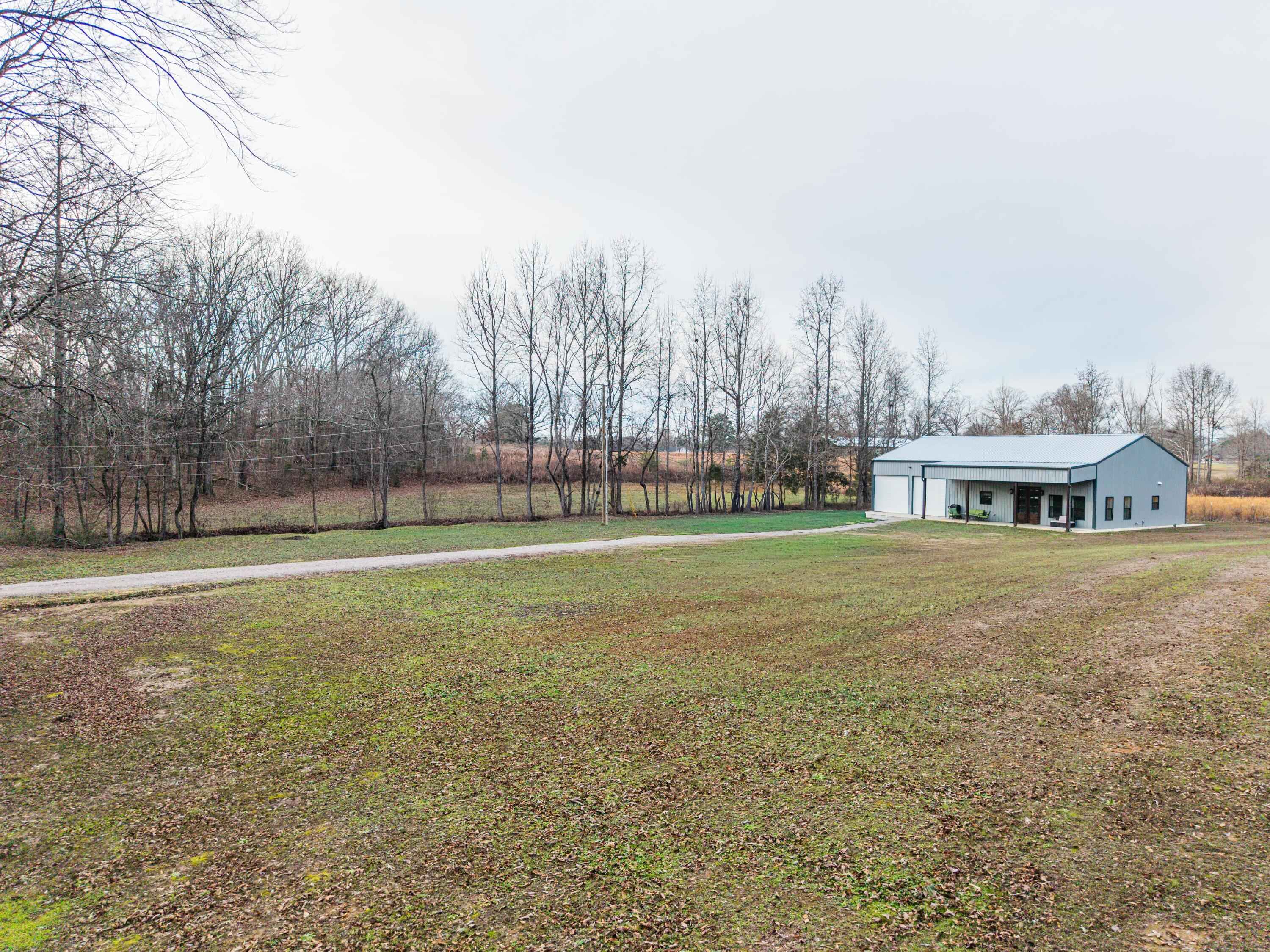 This 40'x60' barndo is perfect for low maintenance living in comfort and privacy!! The interior of the living space is stylish and immaculate! The approx. 1,125 sq ft garage/shop/man-cave portion has high ceilings, two 10' automatic garage doors and a man door. It can accommodate your boats, trailers, and vehicles. This space comes with a large bar top area for entertaining and watching ballgames. The attic over the living space is huge and easily accessed from the shop. This property is in a great area in the Michie community and less than 15 minutes to Corinth and Pickwick lake! Its sits to the back of the 5 acre lot and is surrounded by trees for privacy on the sides and along the road for great views!