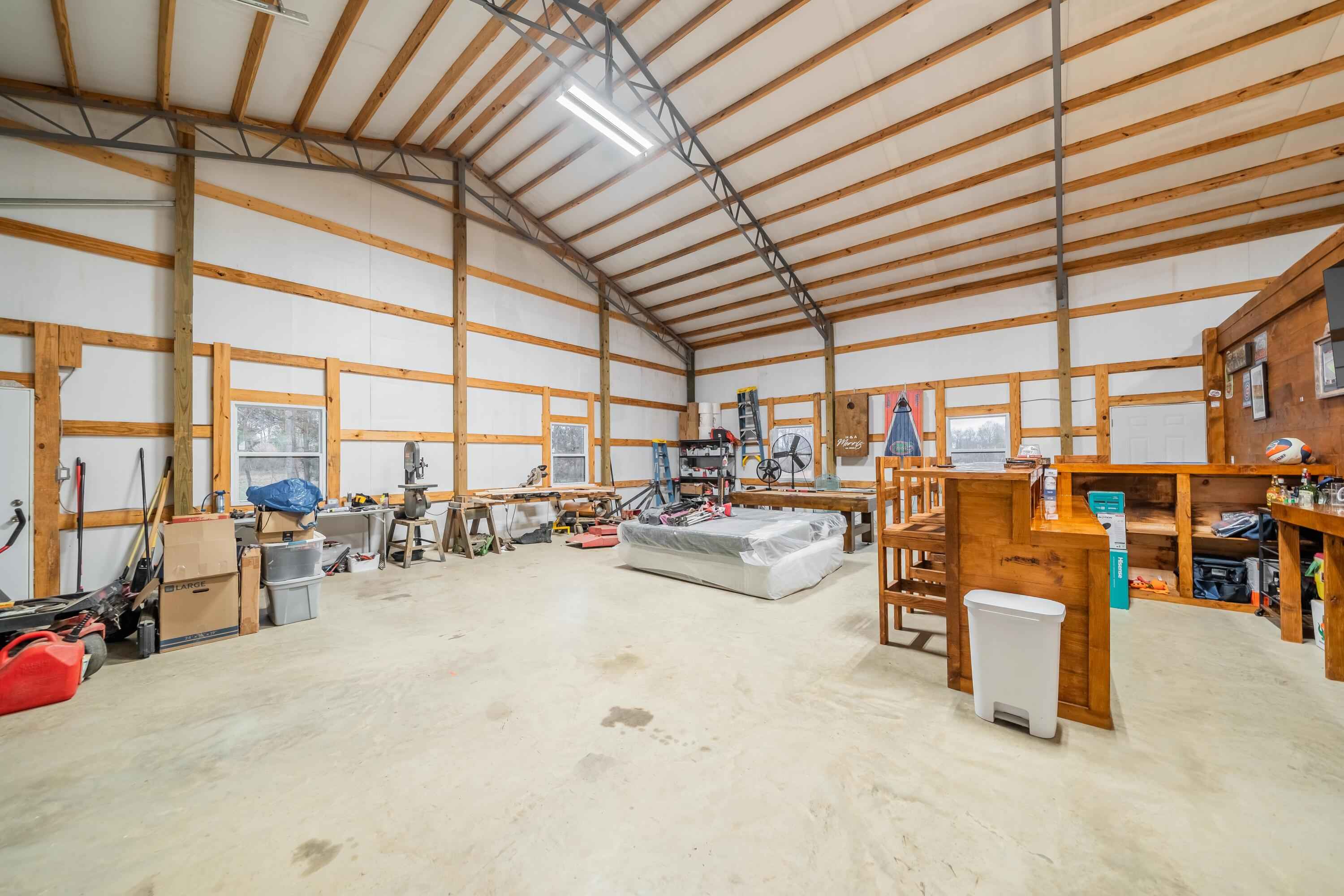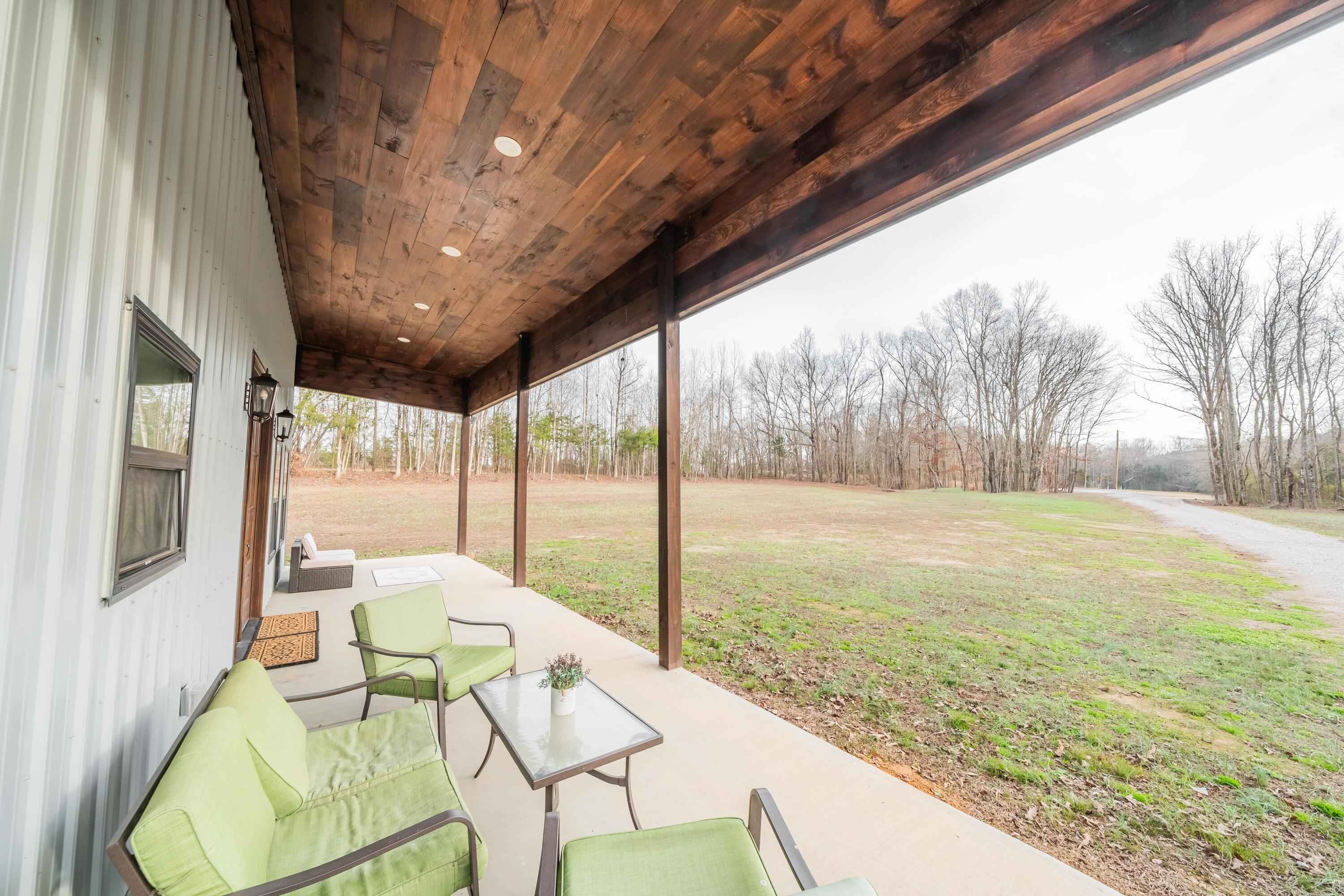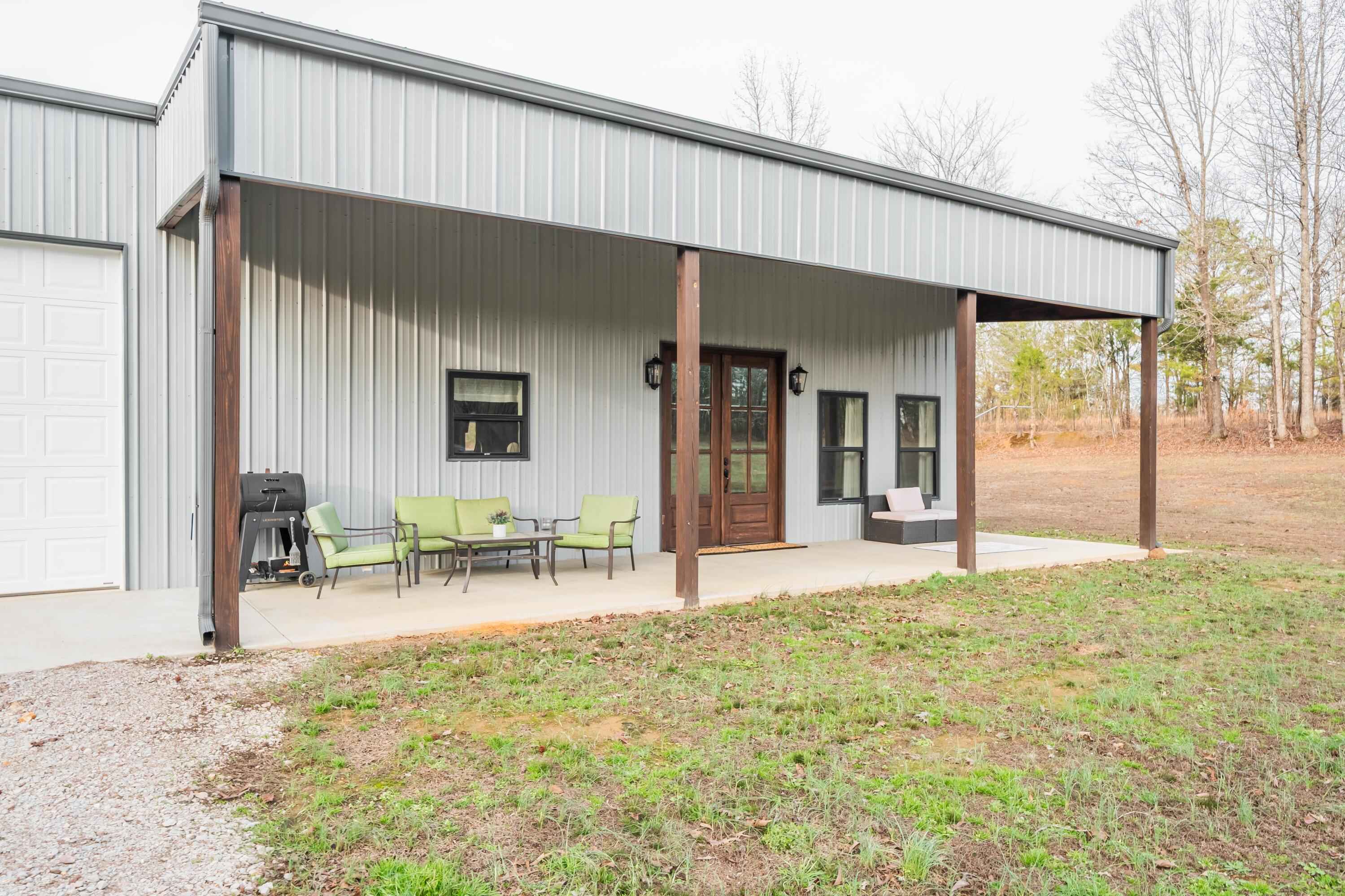 This 40'x60' barndo is perfect for low maintenance living in comfort and privacy!! The interior of the living space is stylish and immaculate! The approx. 1,125 sq ft garage/shop/man-cave portion has high ceilings, two 10' automatic garage doors and a man door. It can accommodate your boats, trailers, and vehicles. This space comes with a large bar top area for entertaining and watching ballgames. The attic over the living space is huge and easily accessed from the shop. This property is in a great area in the Michie community and less than 15 minutes to Corinth and Pickwick lake! Its sits to the back of the 5 acre lot and is surrounded by trees for privacy on the sides and along the road for great views!