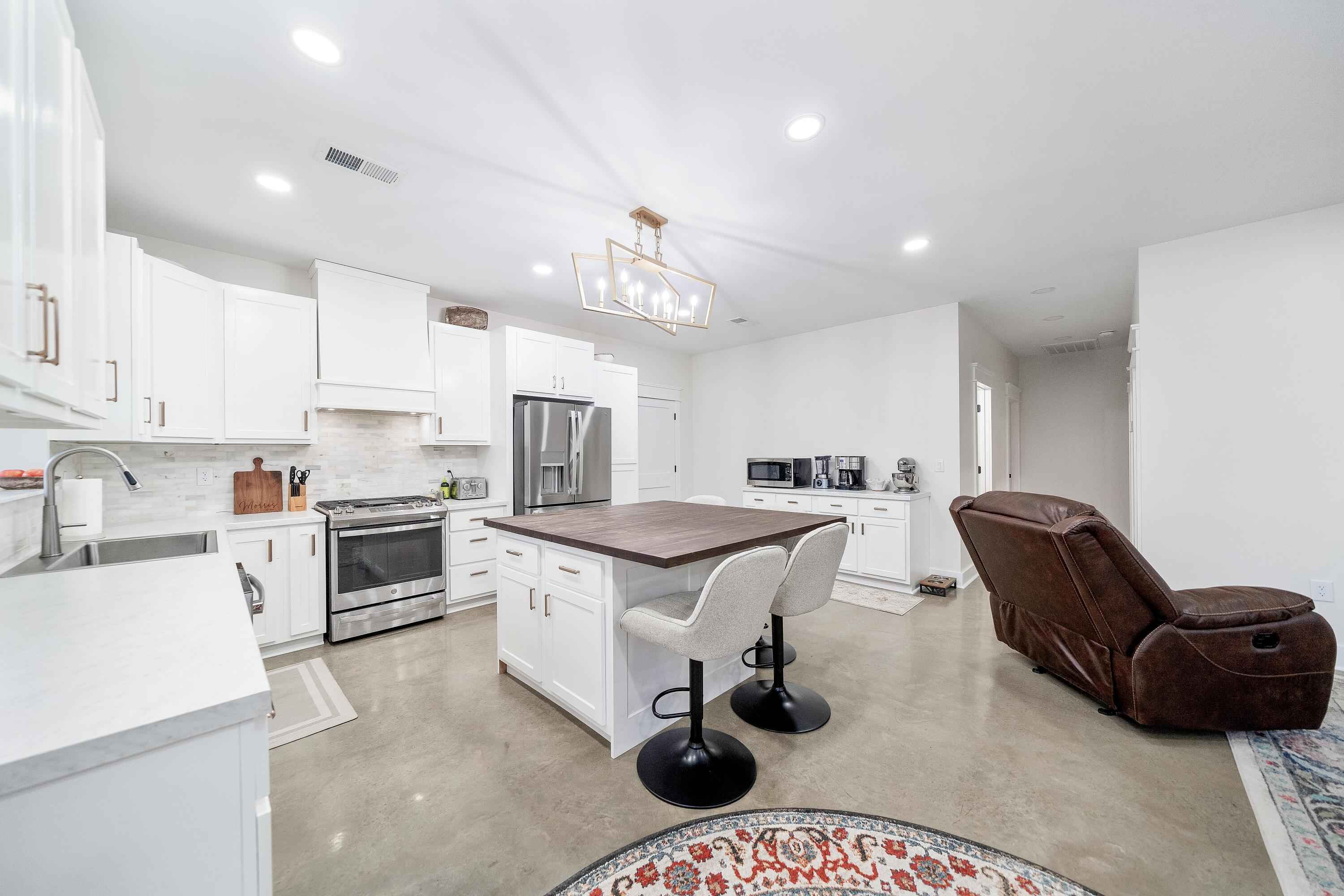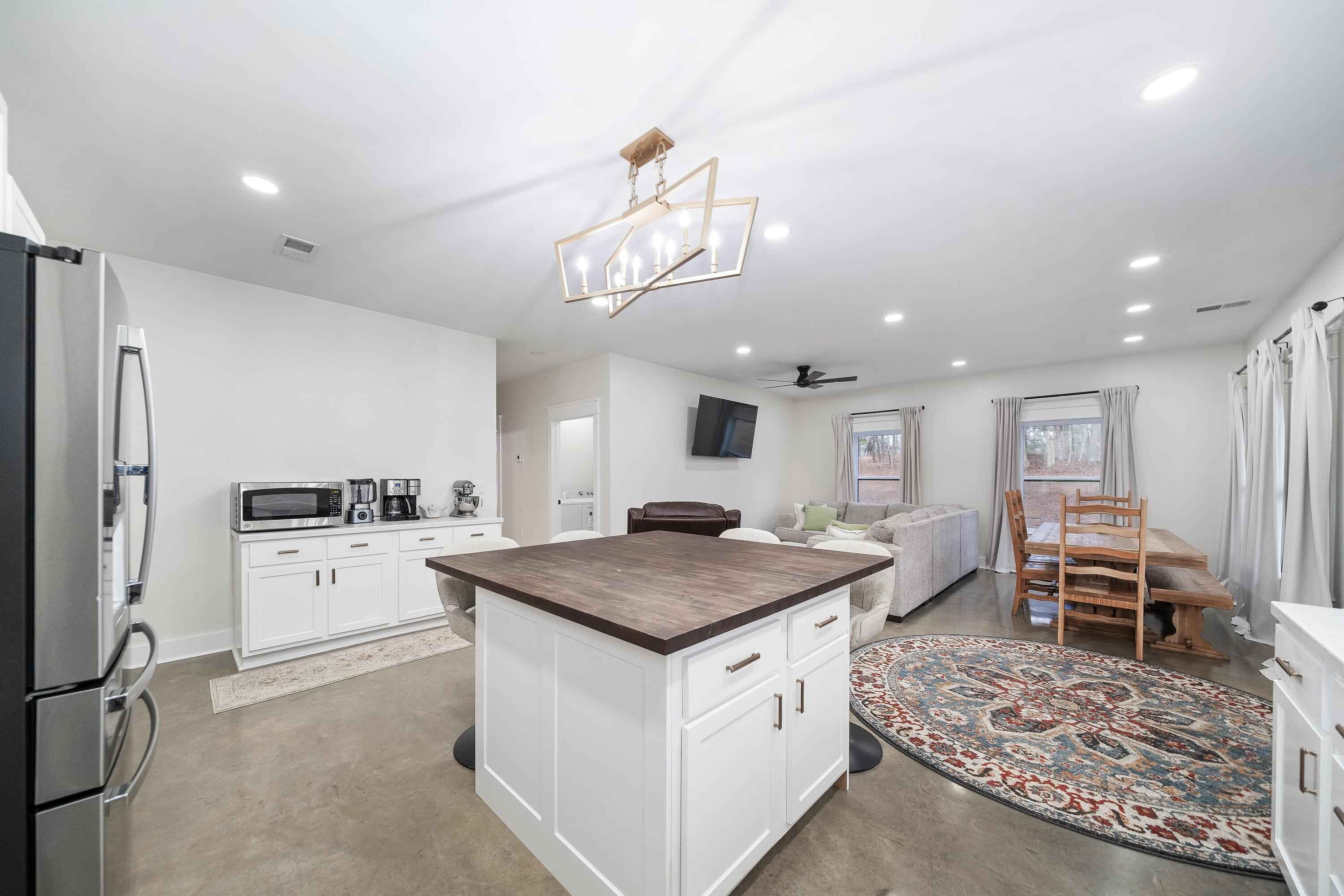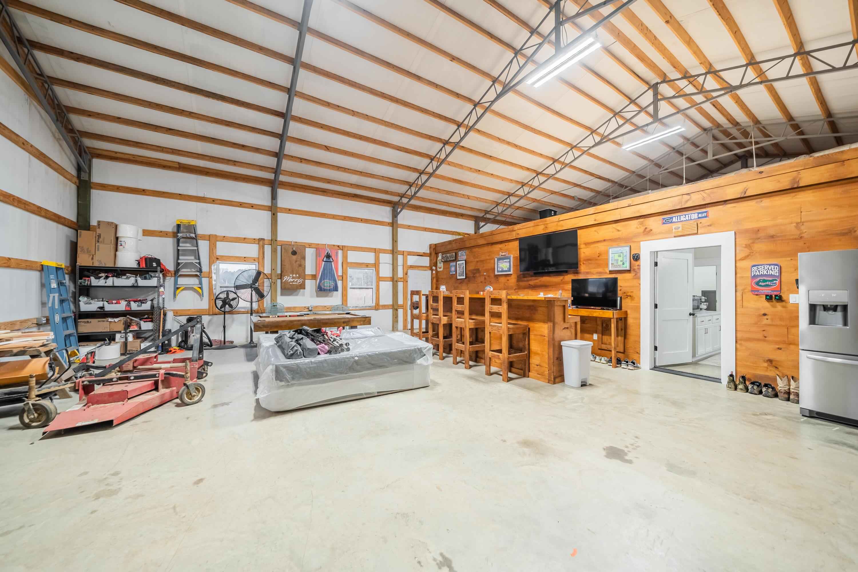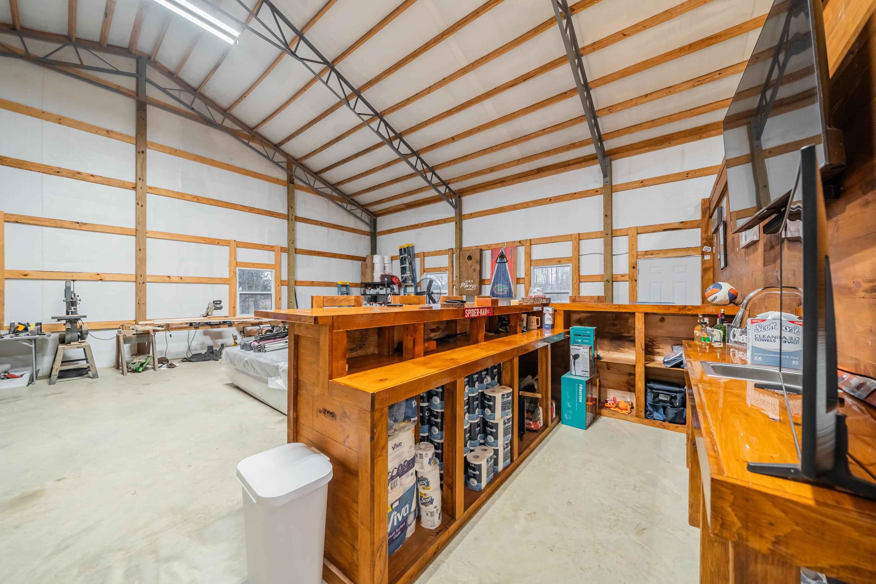 This 40'x60' barndo is perfect for low maintenance living in comfort and privacy!! The interior of the living space is stylish and immaculate! The approx. 1,125 sq ft garage/shop/man-cave portion has high ceilings, two 10' automatic garage doors and a man door. It can accommodate your boats, trailers, and vehicles. This space comes with a large bar top area for entertaining and watching ballgames. The attic over the living space is huge and easily accessed from the shop. This property is in a great area in the Michie community and less than 15 minutes to Corinth and Pickwick lake! Its sits to the back of the 5 acre lot and is surrounded by trees for privacy on the sides and along the road for great views!