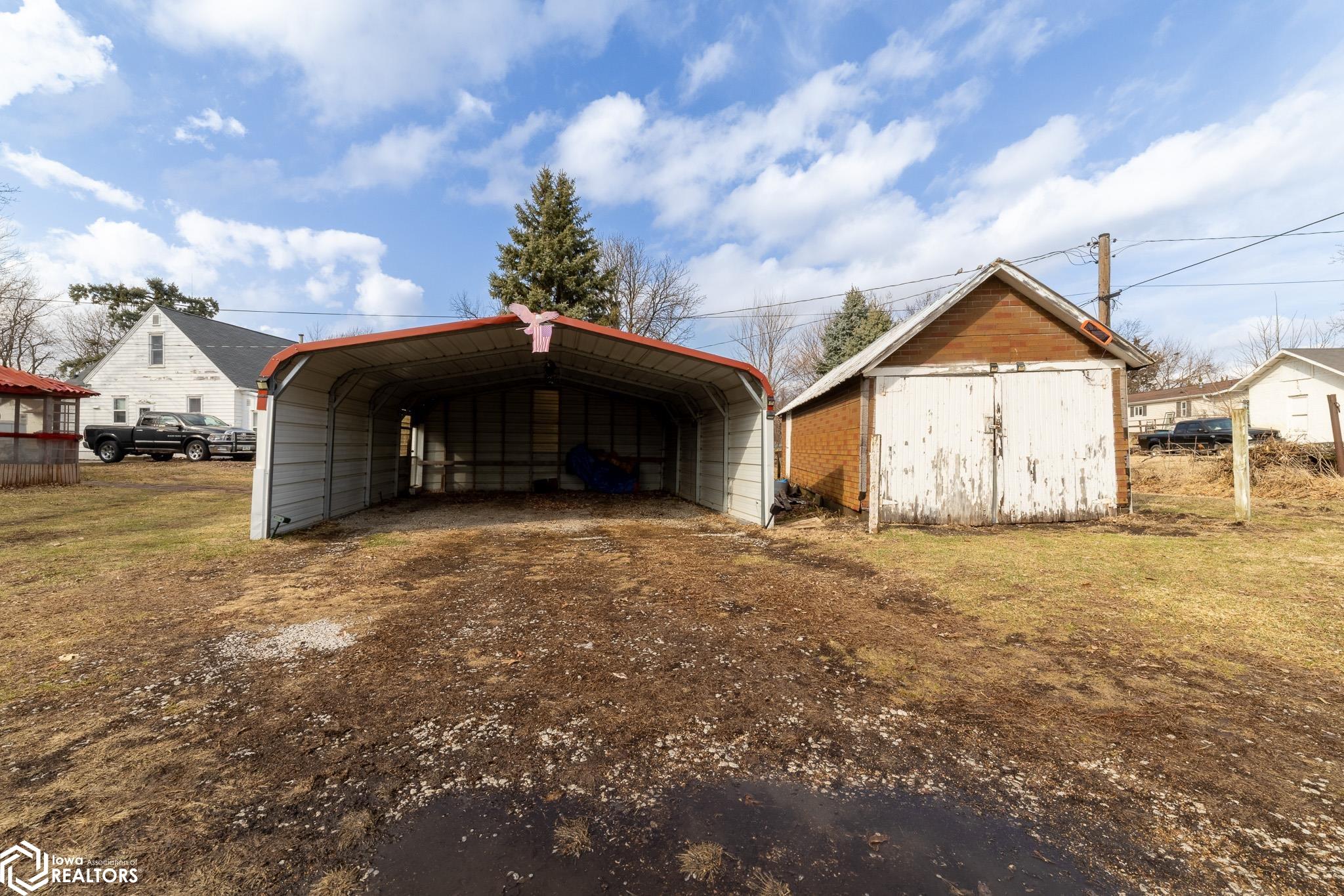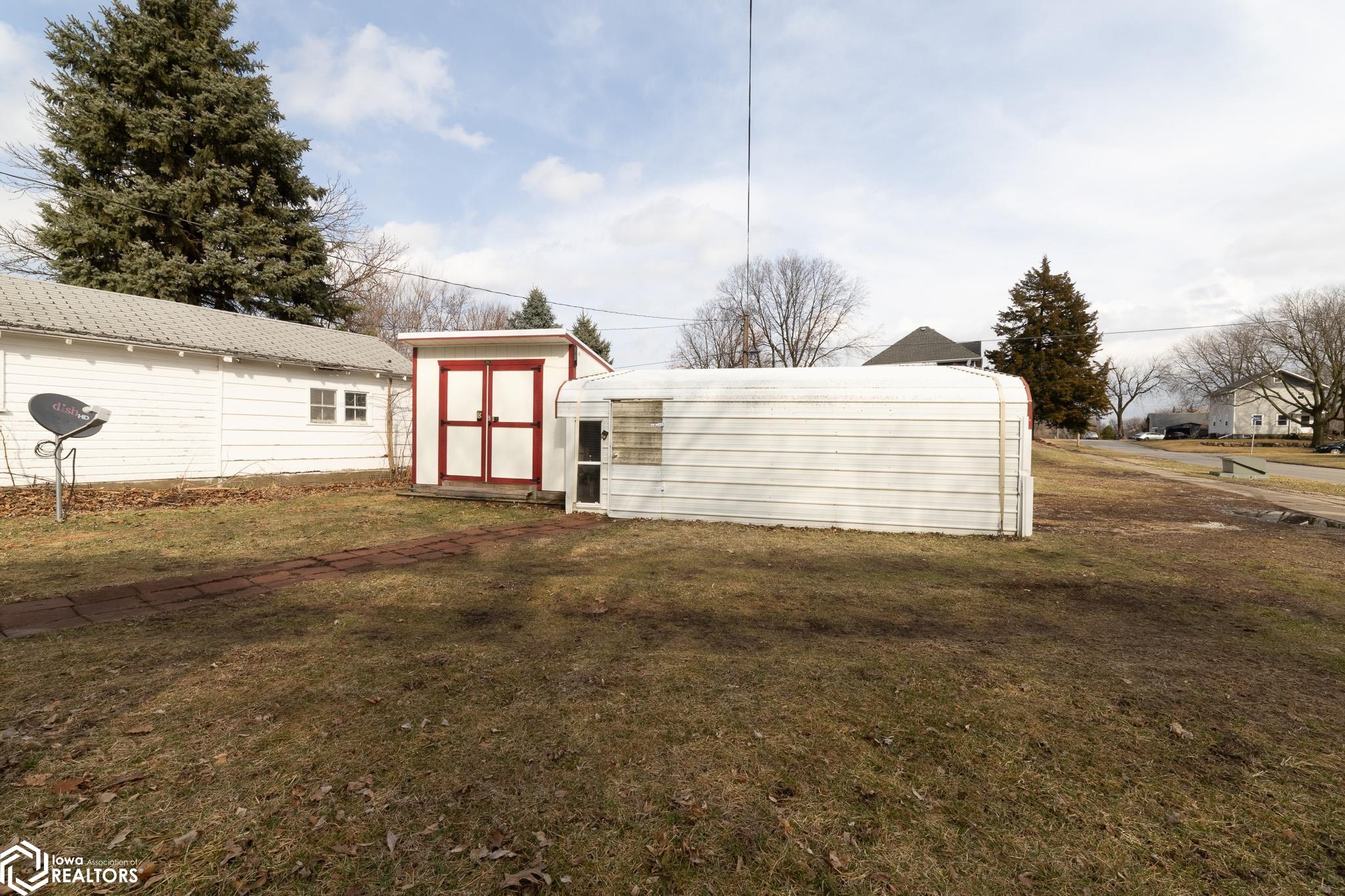 Charming and located in a safe neighborhood, this well-maintained home sits on a desirable corner lot and offers comfortable main-floor living. Inside you'll find 2 bedrooms, 1 bathroom, a welcoming living room, dining room, and kitchen, along with the added convenience of a main-floor laundry room. The basement provides additional storage and serves as a great storm shelter for peace of mind. Step outside to enjoy the spacious yard featuring a cozy gazebo perfect for relaxing or entertaining. A 2 car carport offers covered parking and an additional shed provides plenty of room for tools, lawn equipment, and hobby space. This property combines functionality, comfort, and outdoor charm and is ready for its next owner to make it their own!