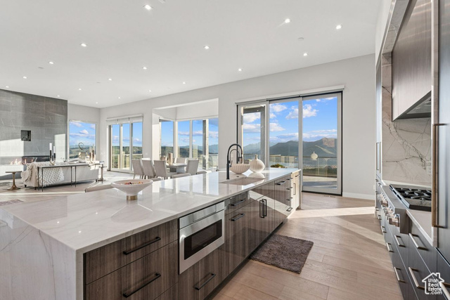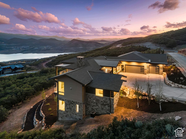 Discover the epitome of luxury living in this stunning two-story masterpiece, perfectly positioned on one of Golden Eagle's most breathtaking view lots. With panoramic vistas of the Jordanelle Reservoir, the new Deer Valley East village, and the majestic Mount Timpanogos, every glance out the window is a reminder of Utah's natural beauty. This home features an expansive double deck - perfect for enjoying jaw-dropping sunsets. Inside, the state-of-the-art construction offers a seamless flow throughout the floor plan. The main level boasts an expansive kitchen designed for both function and style, and one of the largest, deepest oversized three-car garages in the area, providing ample space for a boat and more. Designed with minimal stairs, the main level includes an office or second bedroom and the primary bedroom, making it ideal for those seeking convenience and accessibility. Multiple fireplaces add warmth and ambiance, while every bedroom offers stunning views, ensuring that no corner of this home is without a visual treat. Behind the walls, the builder's pride shines through with spray foam insulation, air exchangers, a 50-year shingle roof, and a top-of-the-line window package. These features not only provide comfort but also reflect a commitment to quality and longevity. This home is a true testament to luxurious living and superior craftsmanship. Every detail has been meticulously planned to offer an unparalleled living experience. Don't miss the opportunity to own a piece of paradise with this exceptional property in Golden Eagle. Embrace a lifestyle defined by breathtaking views, elegant design, and state-of-the-art construction.
