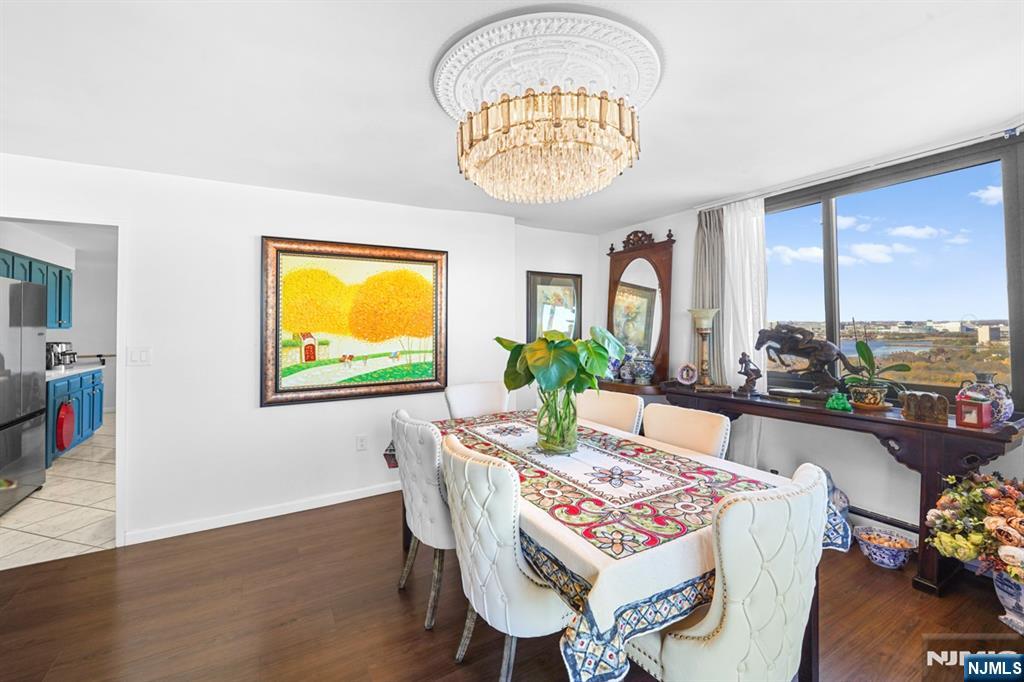 Step into this spacious 2-bedroom (plus den), 2-bath residence offering the perfect blend of comfort and versatility. A standout feature of this home is the additional den/office space conveniently located next to the kitchenideal for remote work, a study nook, or an extra guest area. The open-concept living and dining area flows seamlessly onto two private walk out terraces with panoramic views, perfect for morning coffee or evening relaxation with skyline and river views. The primary suite offers ample closet space and an en-suite bath with private sauna, while the second bedroom provides flexibility for family or guests. Located in the highly sought-after Harmon Cove Towers, residents enjoy resort style amenities including a 24-hour concierge, fitness center, pool, tennis courts, childrens play area, covered (deeded) parking and guest parking. NYC transportation at the doorstep, EZ access to major highways, and Secaucus shopping. This home offers both luxury and convenience in one of the areas sought after communities.