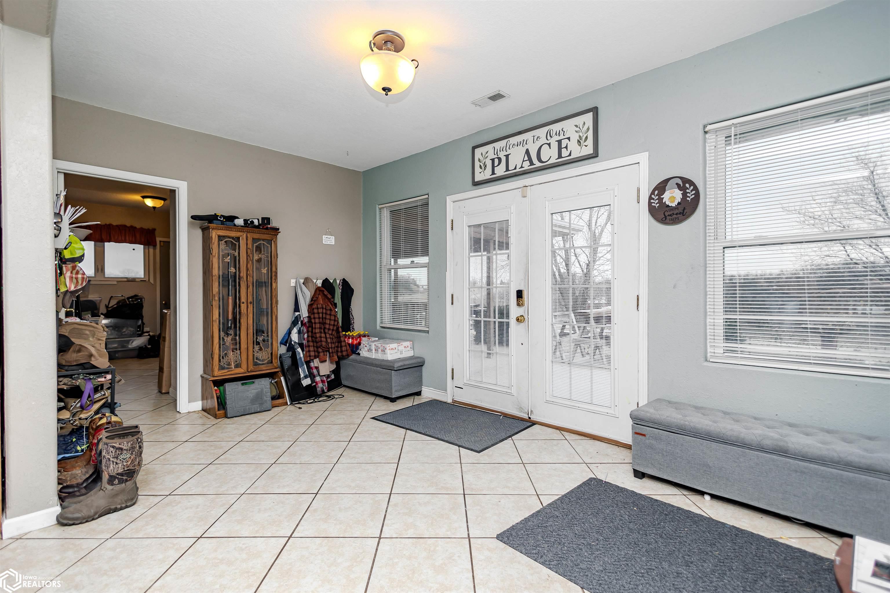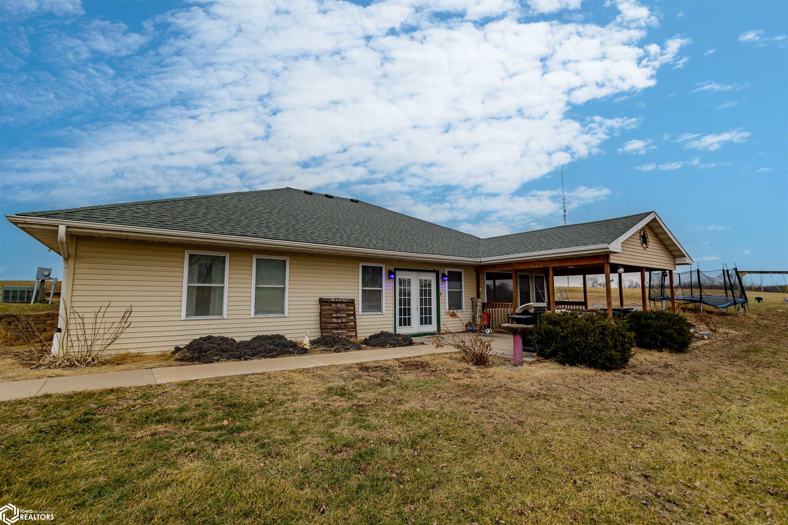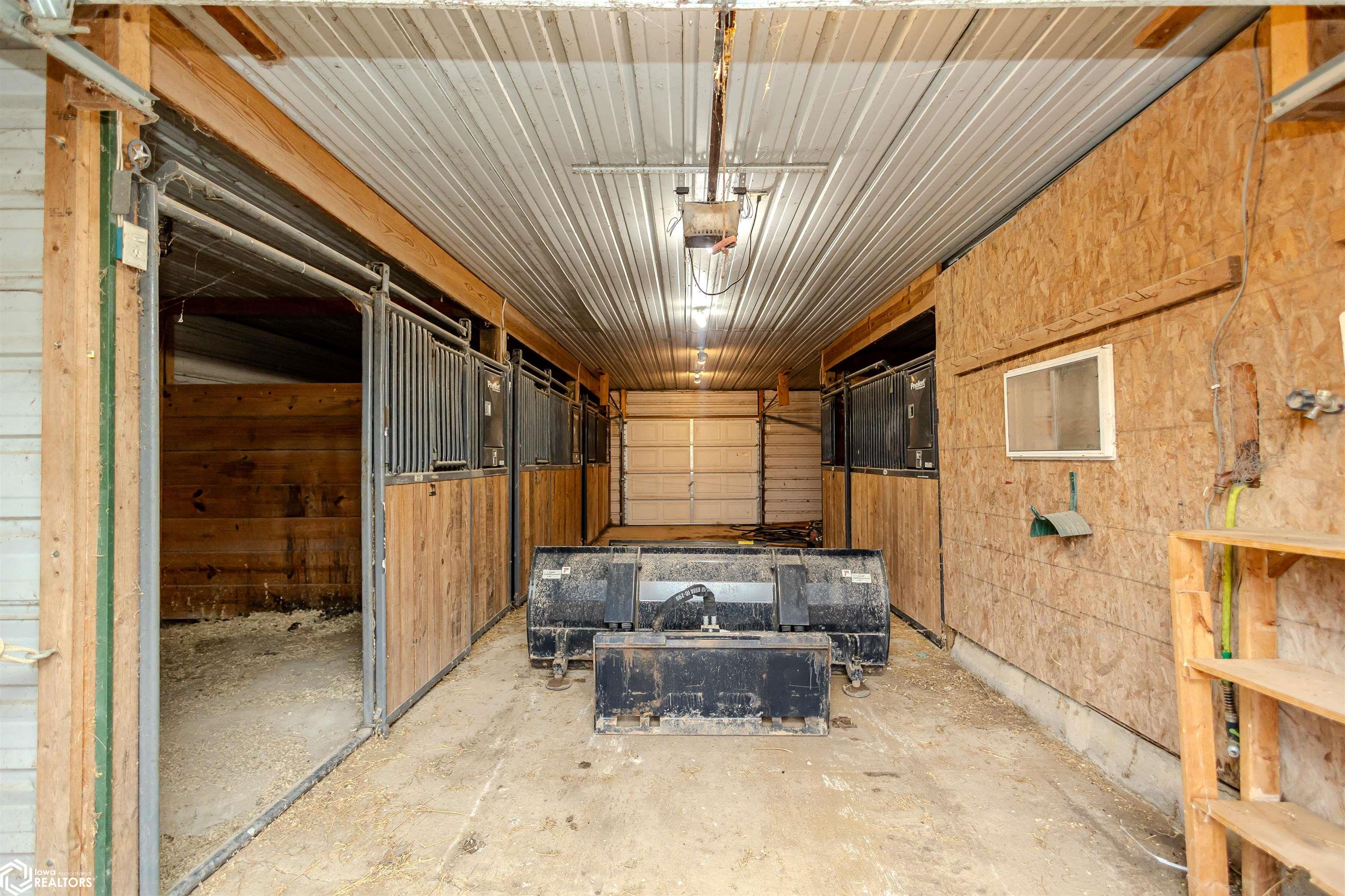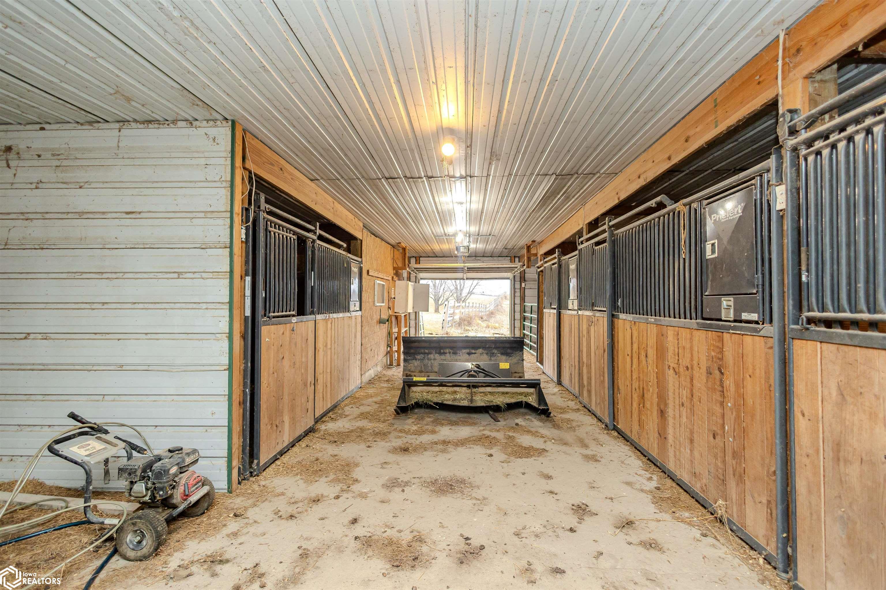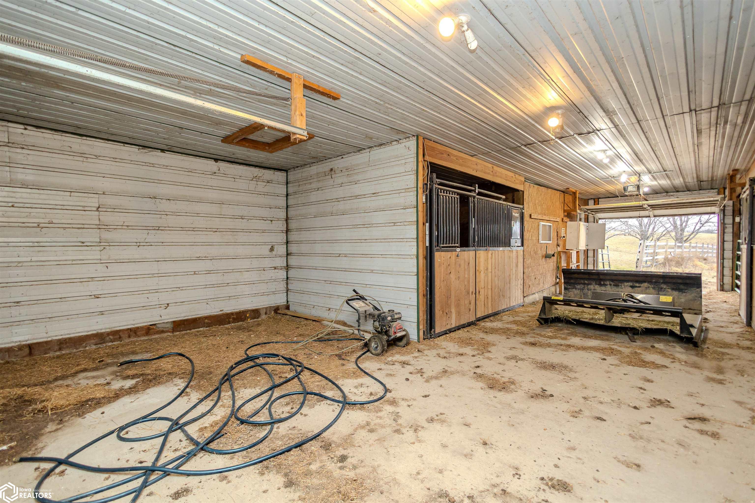 Open and spacious berm style home on 10.68 acres located on the edge of Oskaloosa city limits. Built in 2002, this home offers just under 2,400 sq ft with 4 bedrooms and 2 full baths. The ranch layout allows for abundant natural light through large north-facing windows. A spacious entry leads into the open-concept kitchen, dining, and living area. The primary suite features a walk-in closet and a full bath with a tile soaking tub. Three additional bedrooms plus an office (or potential 5th bedroom) provide flexible living options. Main-floor laundry is located off the kitchen. Updates include LVP flooring (2020) and a new roof (2015). Exterior features include a large machine shed built in 2012 with cement floors, electric, office space, and heated sections, plus a 30x50 insulated horse barn with 4 stalls, wash area, tack room, hay storage, and cement floors. A rare acreage close to towndont miss this one!