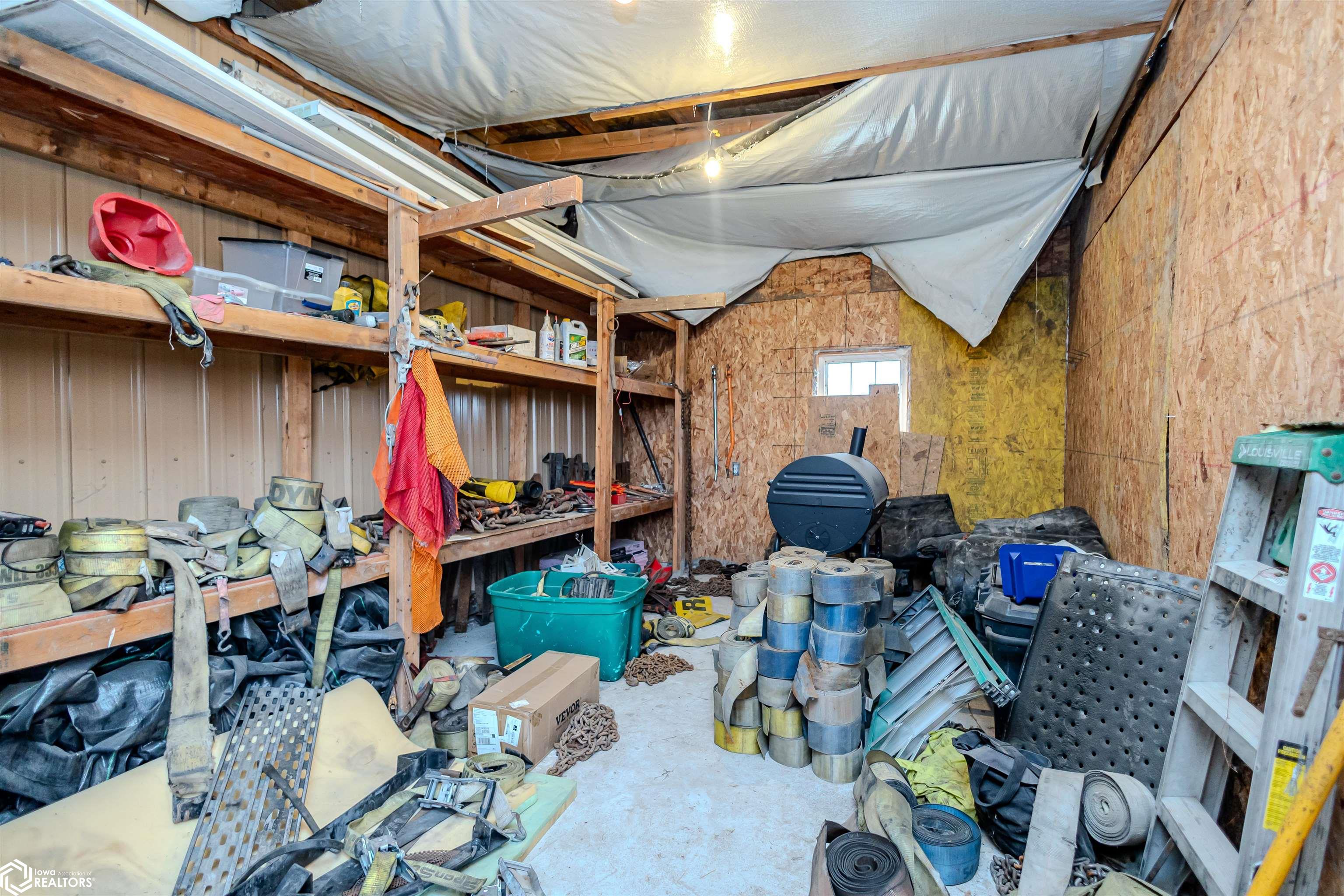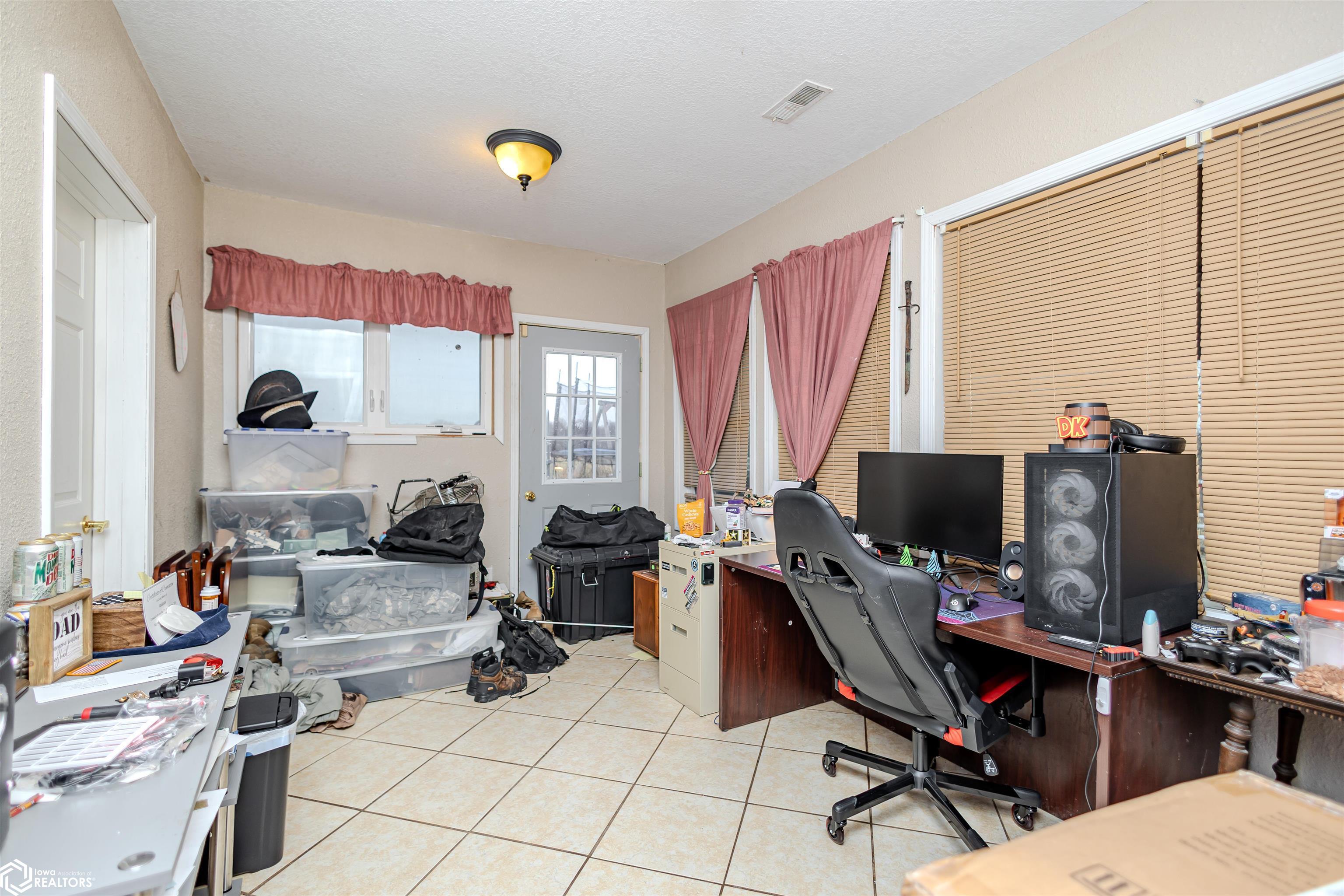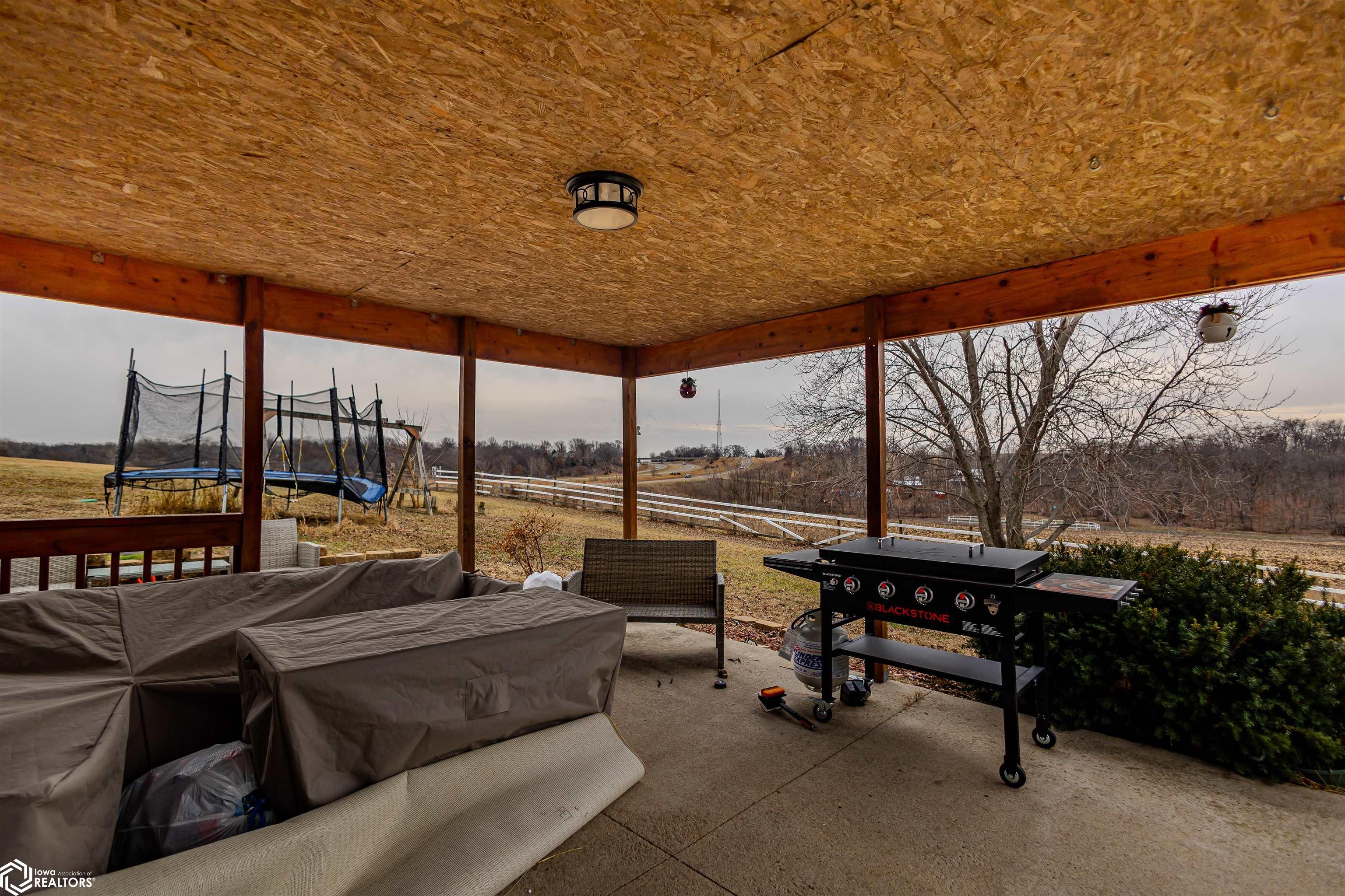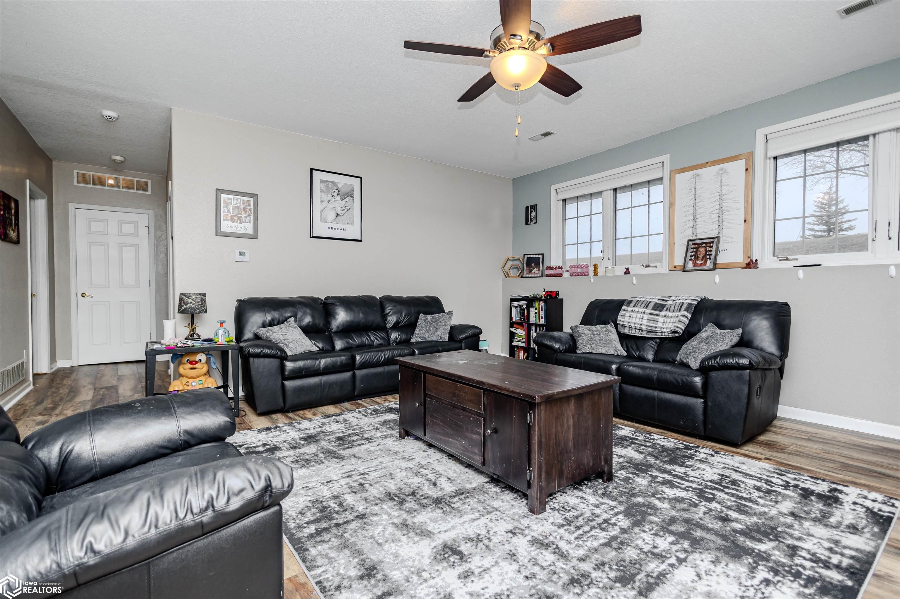Open and spacious berm style home on 10.68 acres located on the edge of Oskaloosa city limits. Built in 2002, this home offers just under 2,400 sq ft with 4 bedrooms and 2 full baths. The ranch layout allows for abundant natural light through large north-facing windows. A spacious entry leads into the open-concept kitchen, dining, and living area. The primary suite features a walk-in closet and a full bath with a tile soaking tub. Three additional bedrooms plus an office (or potential 5th bedroom) provide flexible living options. Main-floor laundry is located off the kitchen. Updates include LVP flooring (2020) and a new roof (2015). Exterior features include a large machine shed built in 2012 with cement floors, electric, office space, and heated sections, plus a 30x50 insulated horse barn with 4 stalls, wash area, tack room, hay storage, and cement floors. A rare acreage close to towndont miss this one!