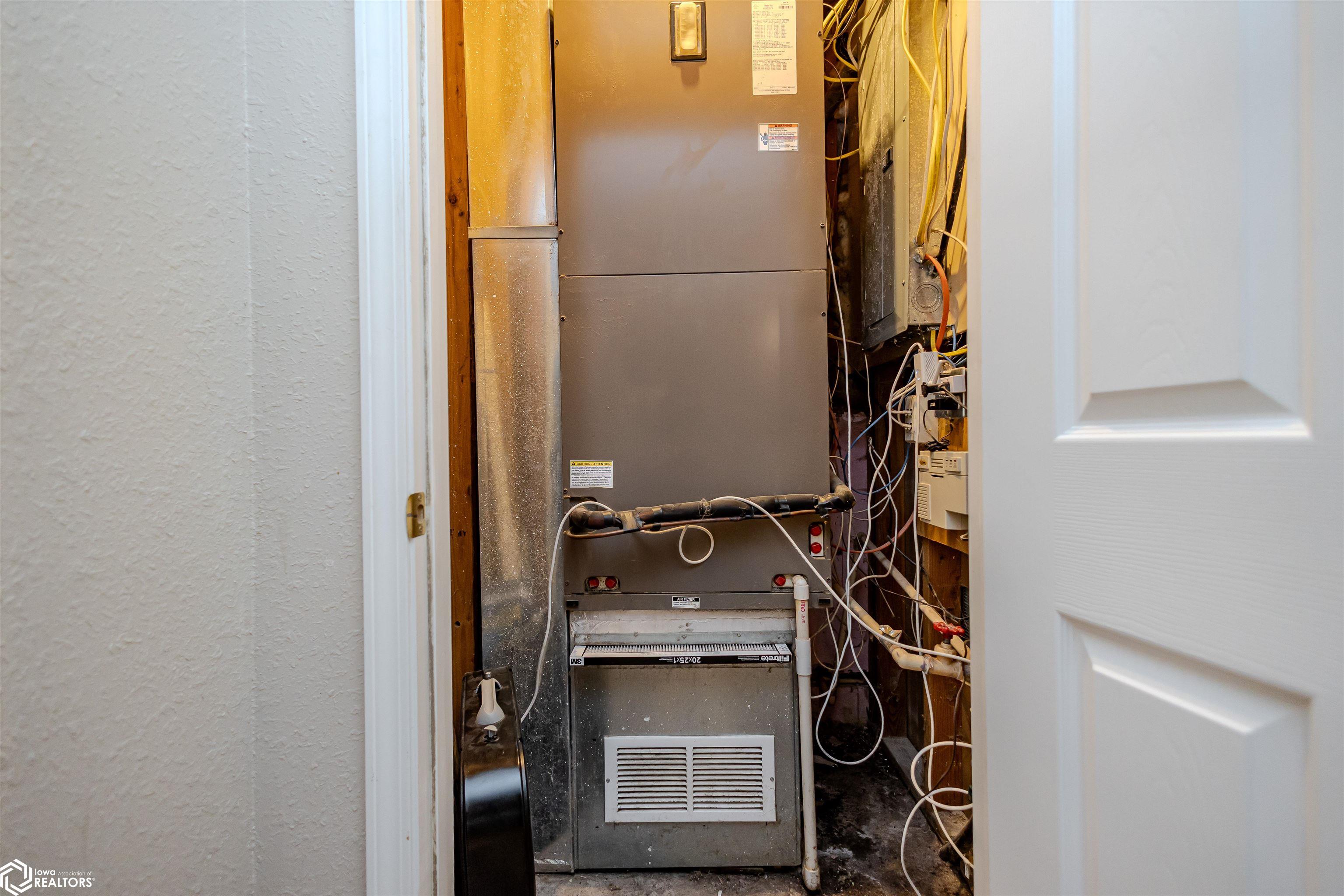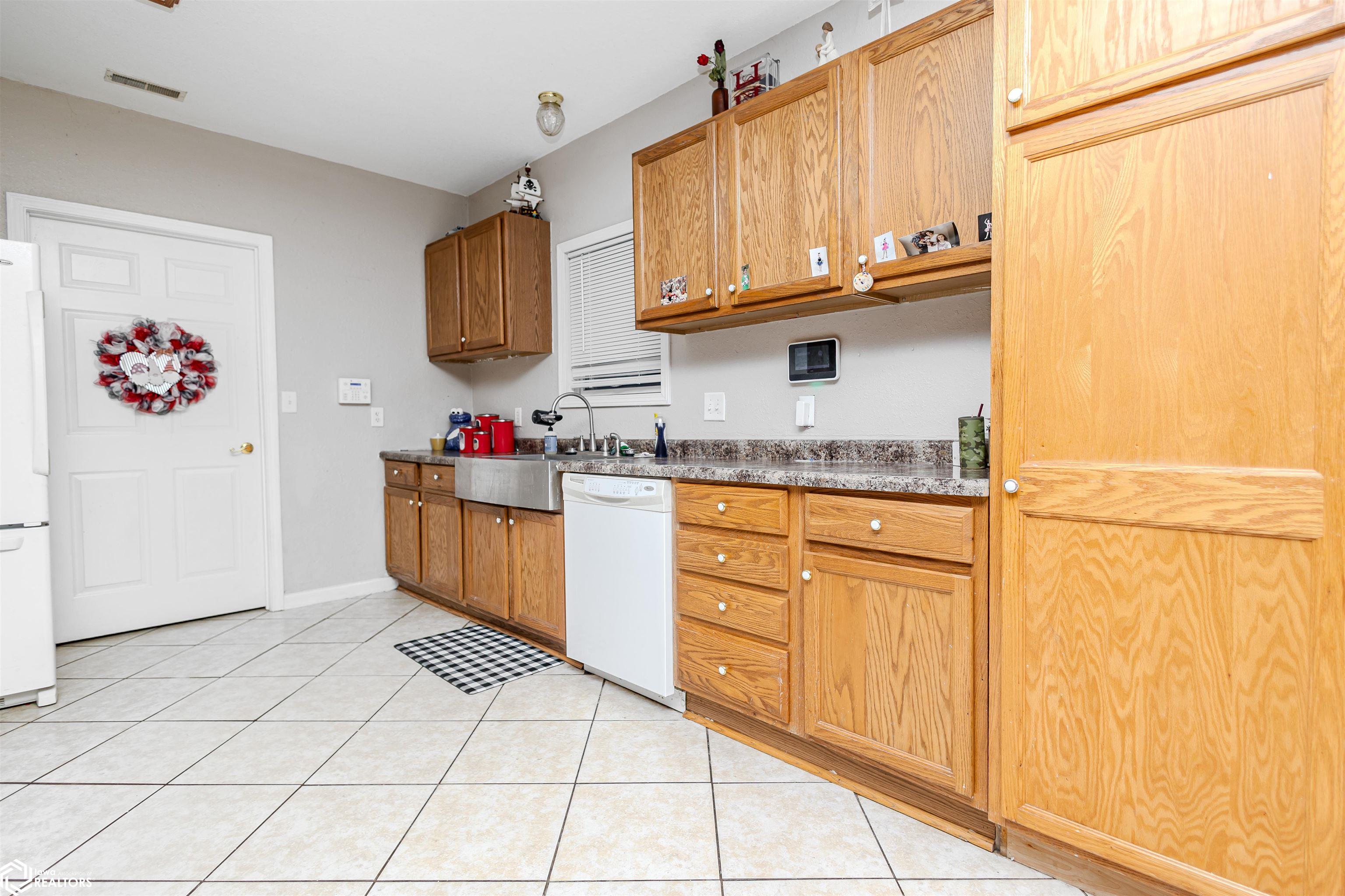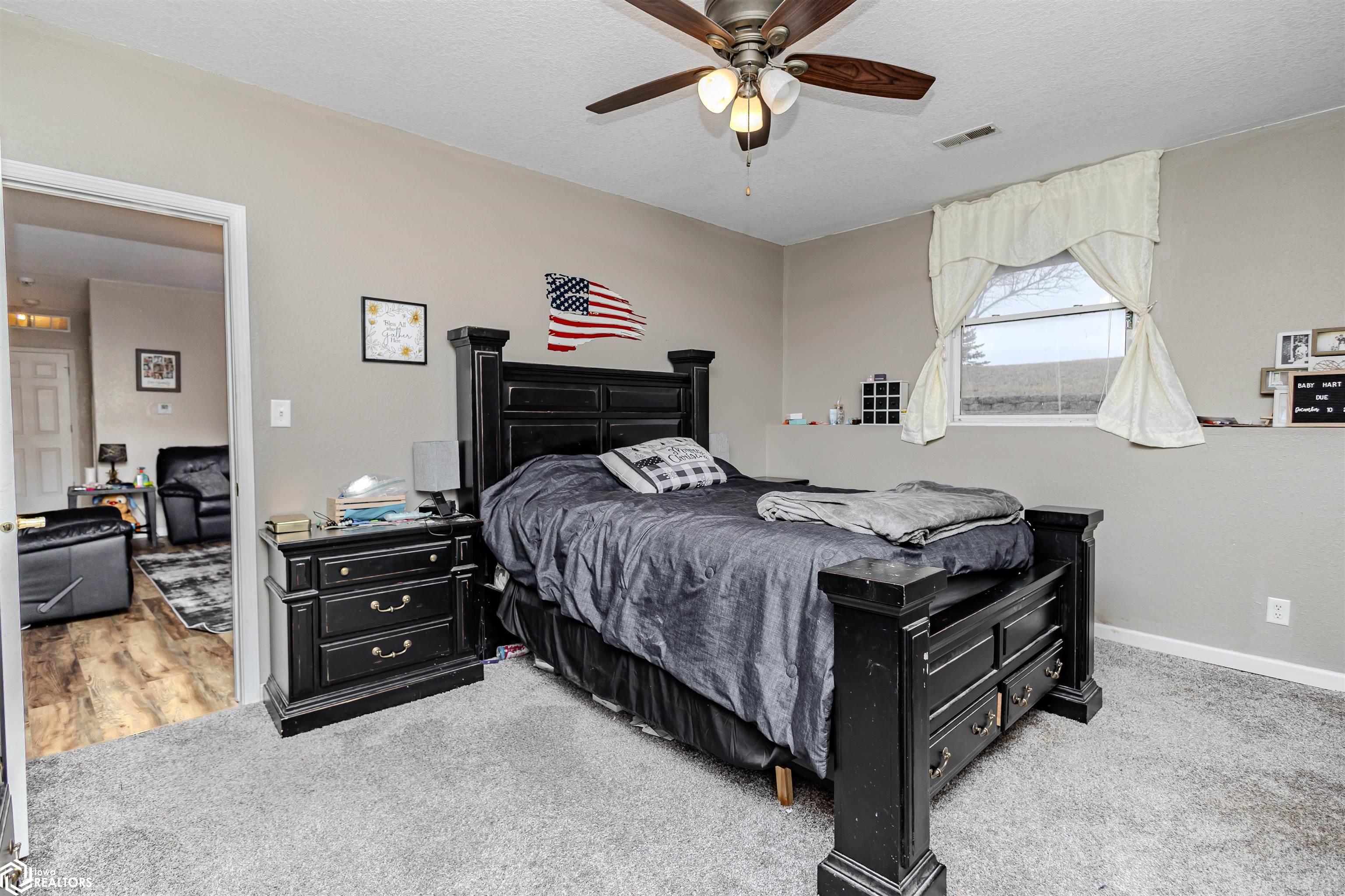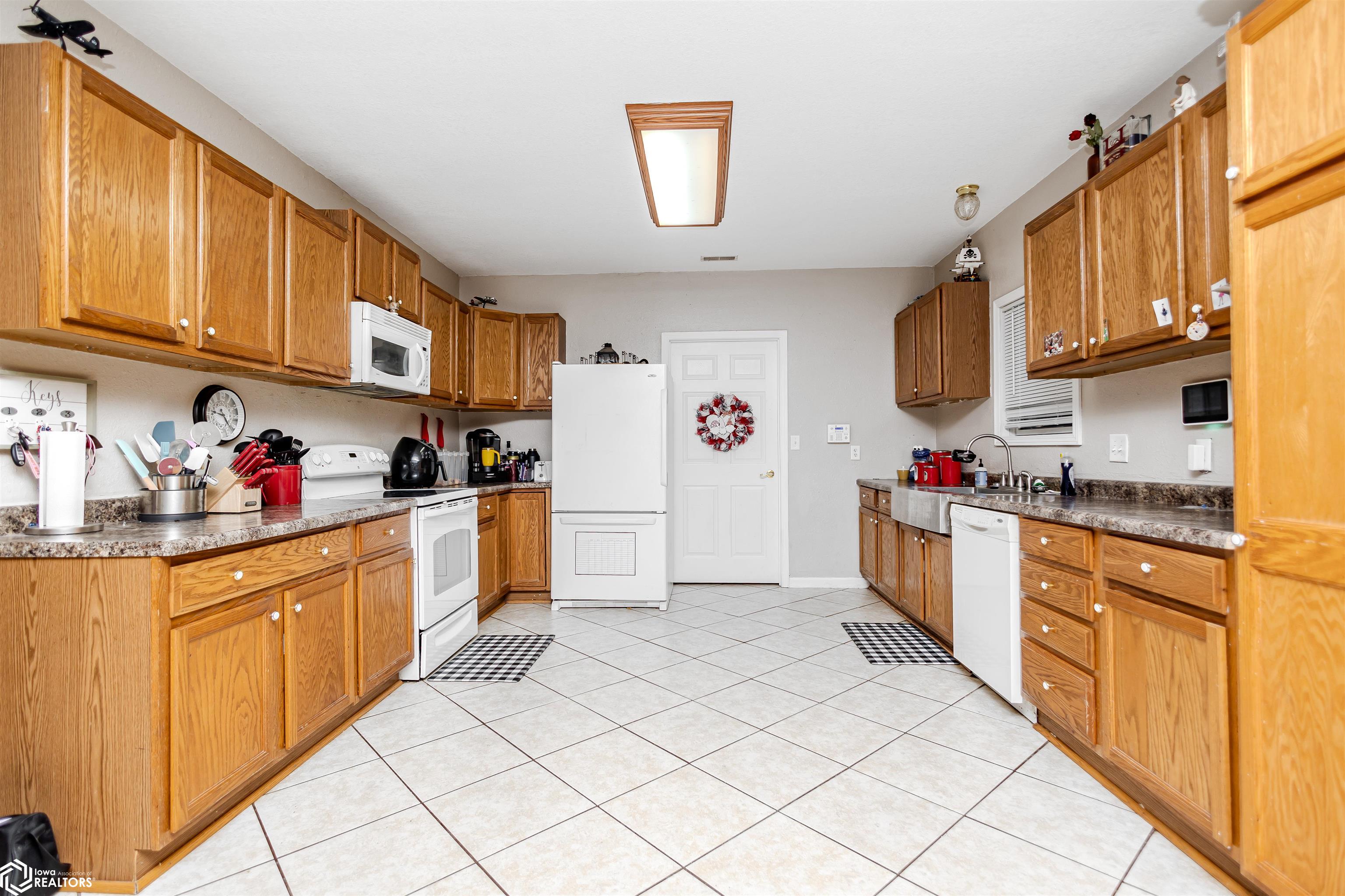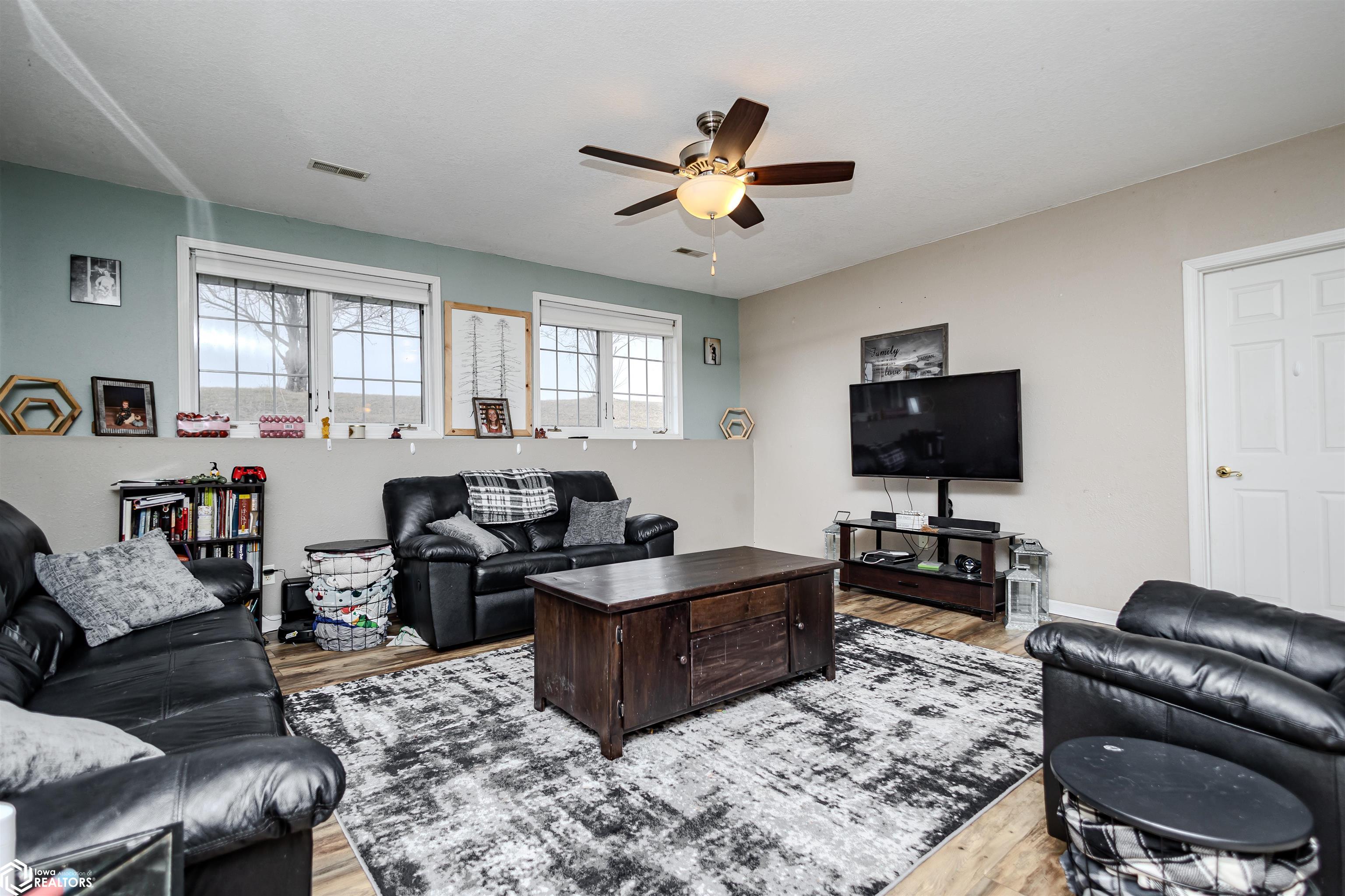 Open and spacious berm style home on 10.68 acres located on the edge of Oskaloosa city limits. Built in 2002, this home offers just under 2,400 sq ft with 4 bedrooms and 2 full baths. The ranch layout allows for abundant natural light through large north-facing windows. A spacious entry leads into the open-concept kitchen, dining, and living area. The primary suite features a walk-in closet and a full bath with a tile soaking tub. Three additional bedrooms plus an office (or potential 5th bedroom) provide flexible living options. Main-floor laundry is located off the kitchen. Updates include LVP flooring (2020) and a new roof (2015). Exterior features include a large machine shed built in 2012 with cement floors, electric, office space, and heated sections, plus a 30x50 insulated horse barn with 4 stalls, wash area, tack room, hay storage, and cement floors. A rare acreage close to towndont miss this one!