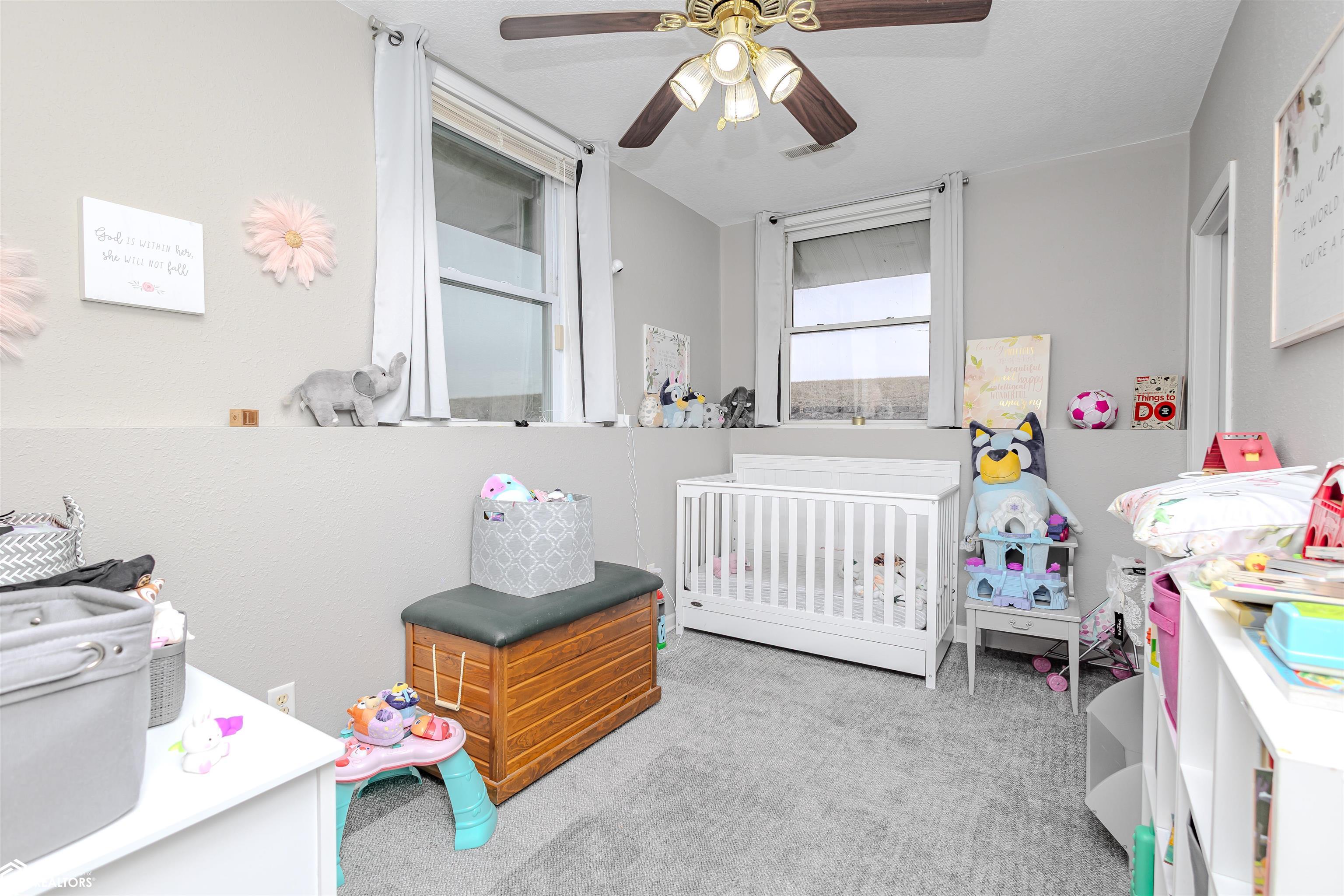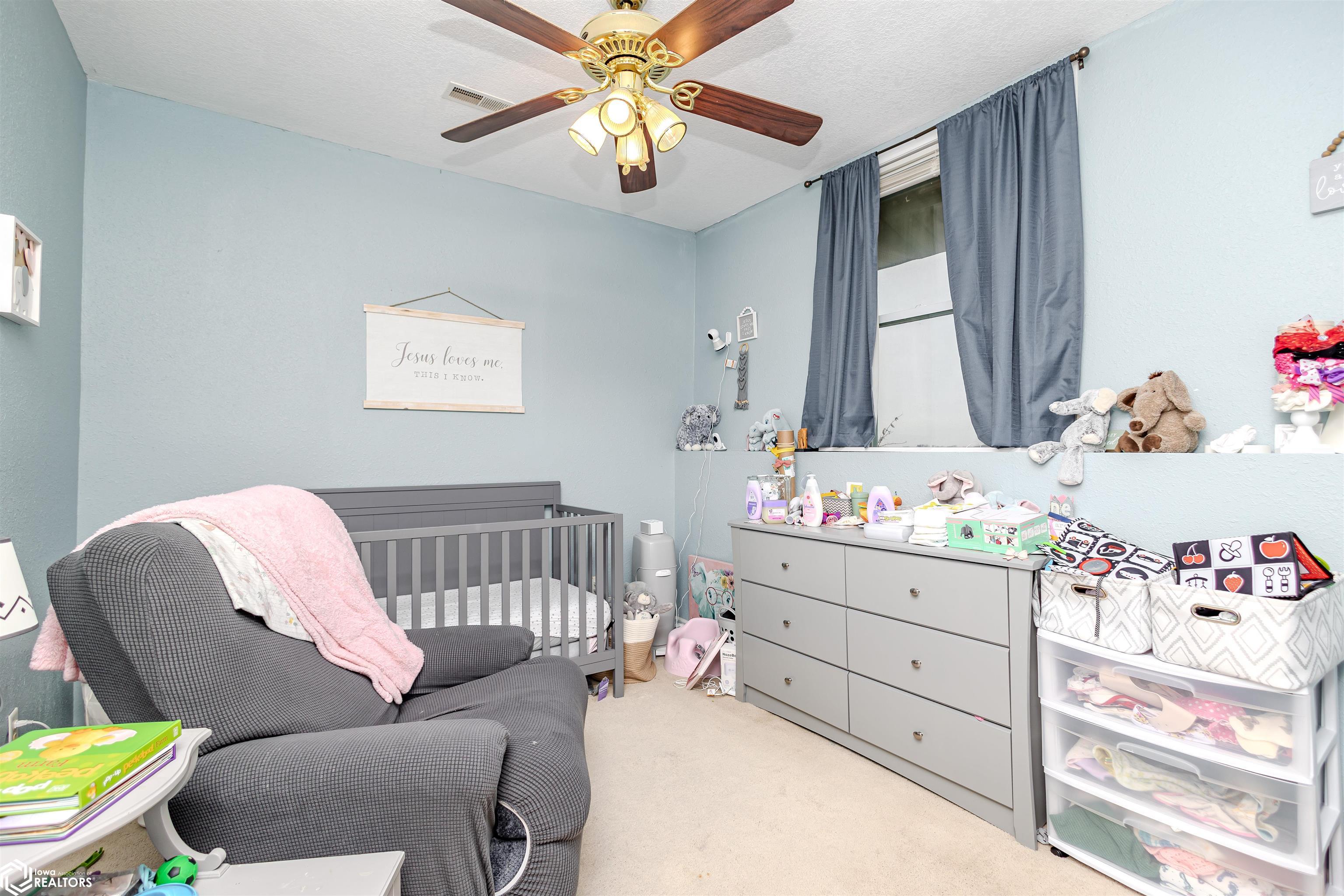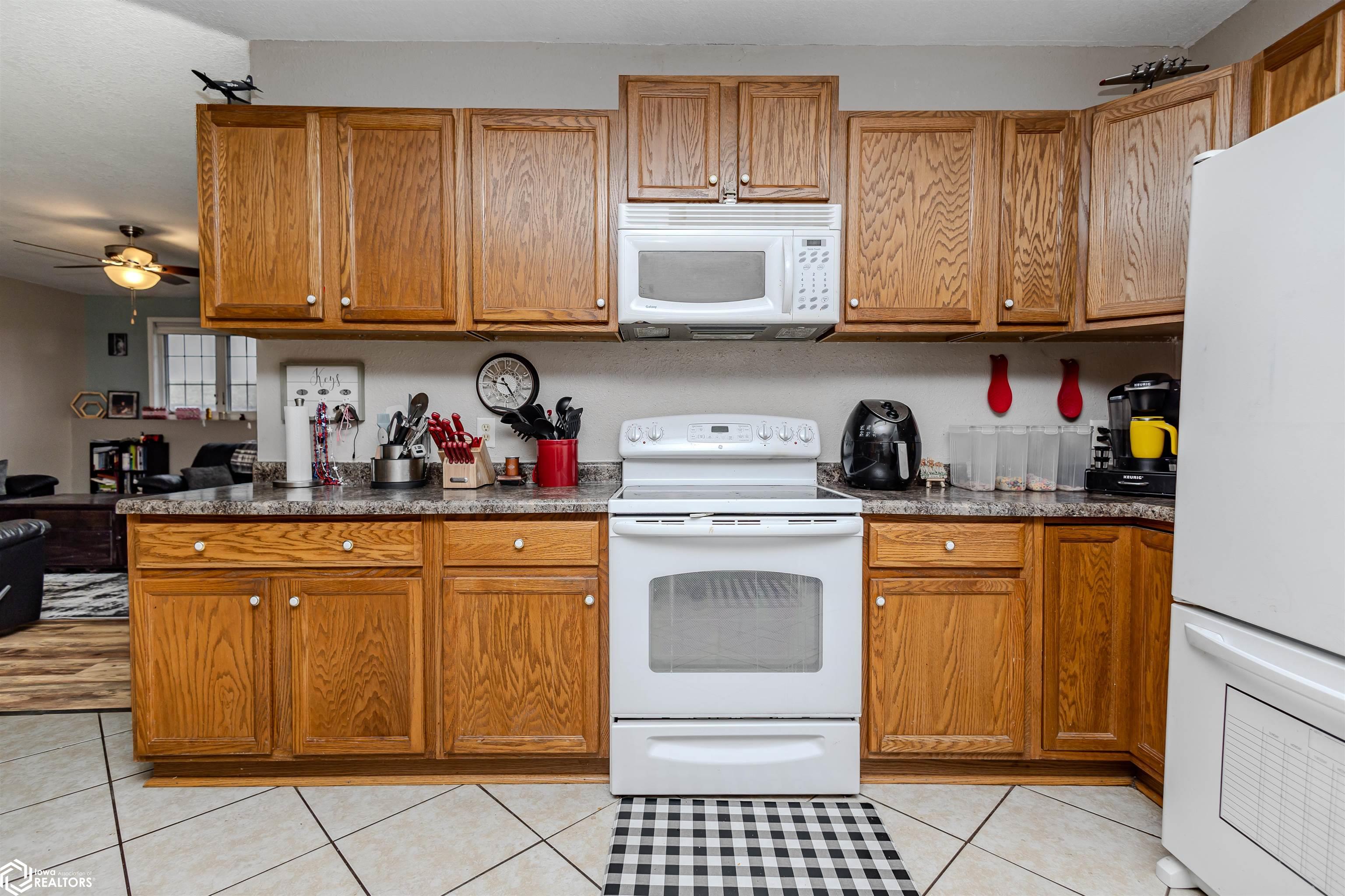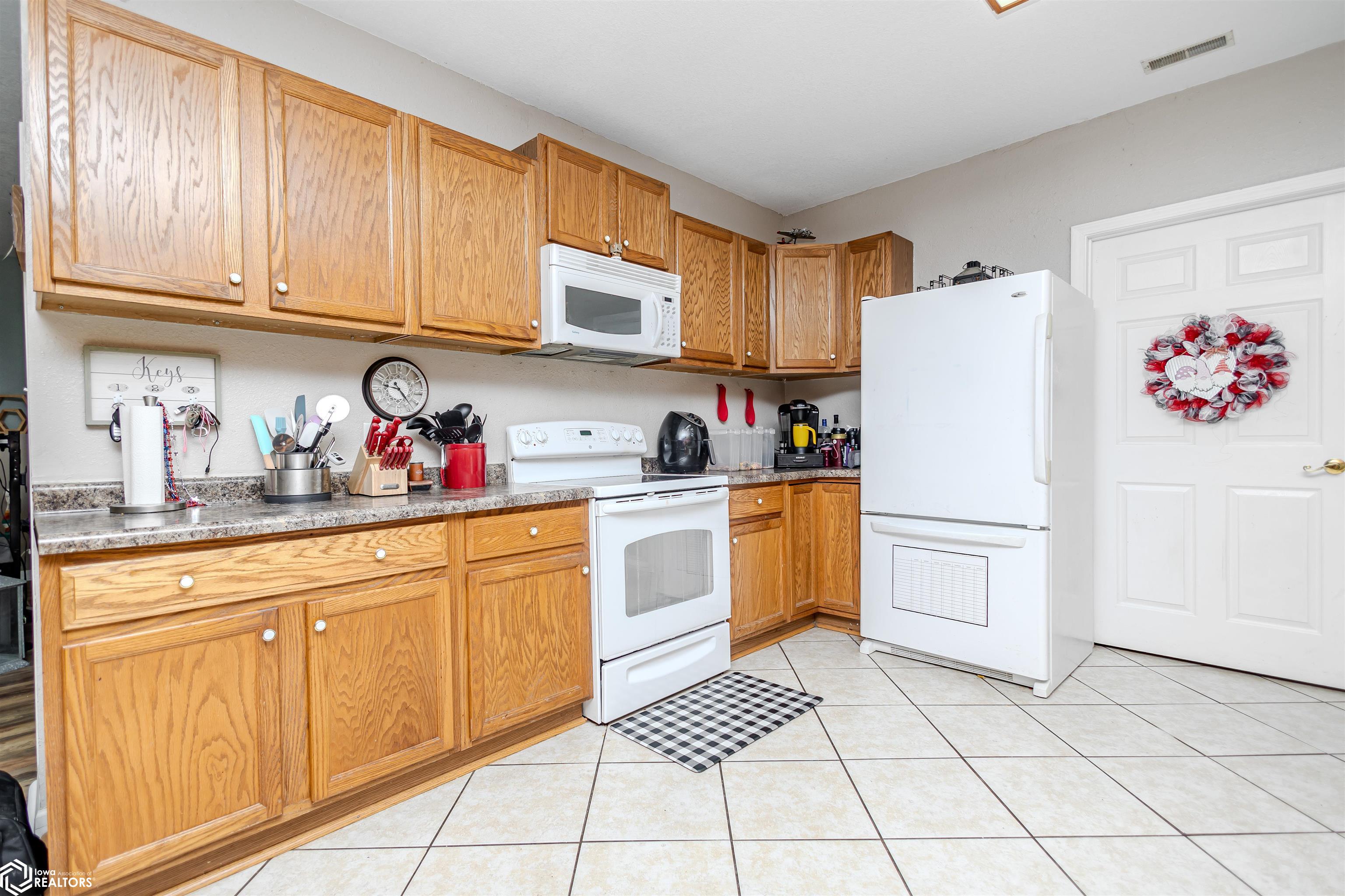 Open and spacious berm style home on 10.68 acres located on the edge of Oskaloosa city limits. Built in 2002, this home offers just under 2,400 sq ft with 4 bedrooms and 2 full baths. The ranch layout allows for abundant natural light through large north-facing windows. A spacious entry leads into the open-concept kitchen, dining, and living area. The primary suite features a walk-in closet and a full bath with a tile soaking tub. Three additional bedrooms plus an office (or potential 5th bedroom) provide flexible living options. Main-floor laundry is located off the kitchen. Updates include LVP flooring (2020) and a new roof (2015). Exterior features include a large machine shed built in 2012 with cement floors, electric, office space, and heated sections, plus a 30x50 insulated horse barn with 4 stalls, wash area, tack room, hay storage, and cement floors. A rare acreage close to towndont miss this one!