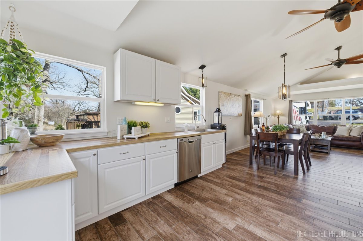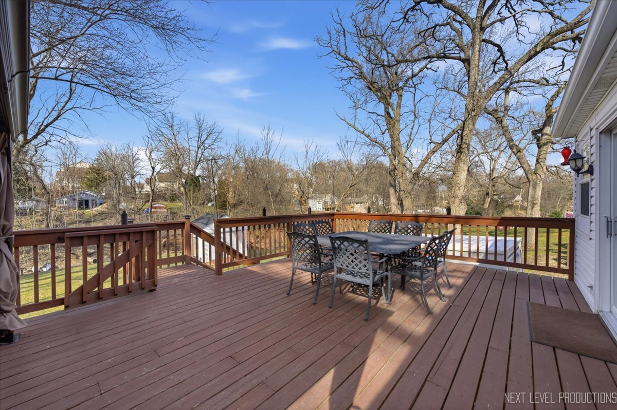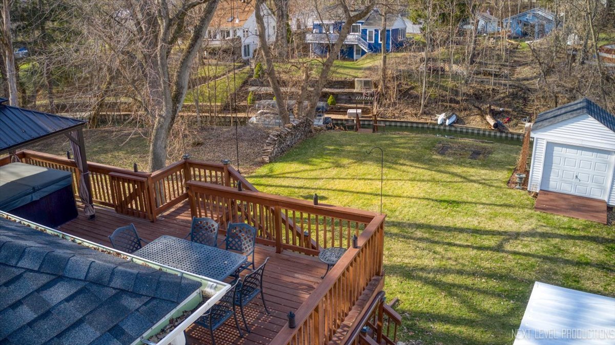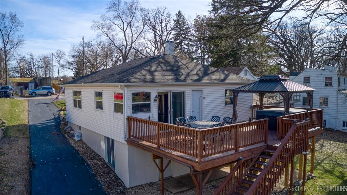 Rare opportunity featuring access to the Chain O' Lakes via the Fox River! Nestled along Cary Creek Channel, this beautifully renovated home offers a rare blend of modern updates and natural beauty, with direct access to the Fox River. Offering 1530 square feet above grade plus additional finished basement space, the home features 2 above-grade bedrooms, 1 below-grade bedroom, and 2 full bathrooms, providing exceptional flexibility for a variety of living arrangements. From the moment you step inside, you will appreciate the extensive renovations throughout. The home showcases updated electrical, insulation, and windows, along with soaring vaulted cathedral ceilings that create a bright, open, and airy atmosphere. The kitchen has been thoughtfully updated with new cabinetry and appliances, while ceiling fans throughout enhance year-round comfort. The upstairs was fully renovated in 2017, with the exception of the bathroom. The finished basement offers incredible versatility, including a private in-law arrangement with a bedroom, full bathroom, and direct access to the backyard and creek. An oven hookup allows for a potential kitchenette, creating an ideal setup for extended living or guest accommodations. The opposite side of the basement is separately walled off with its own access, offering excellent space for storage, laundry, or a dedicated work or craft area. This home has been meticulously maintained with major system updates already completed, including a brand new washer and dryer and high efficiency water heater in 2022, well pump, pressure tank, and softener in 2023, and a new roof, gutters, and portions of the HVAC system updated in 2024. The well was inspected within the past two years in conjunction with the hot tub permit, providing added peace of mind. Step outside to your own private retreat. A spacious deck overlooks the expansive backyard and tranquil creek, with partial deck replacements completed between 2020 and 2024. Enjoy year-round outdoor living with a wonderful hot tub and gazebo, perfect for relaxing or entertaining in every season. Stairs leading down to the river access have been newly replaced in 2025, offering easy access to the water. A large shed provides ample storage for tools and outdoor equipment. This water adjacent property is ideal for kayaking, fishing, or simply enjoying the peaceful surroundings. Conveniently located near downtown Cary, the Metra, shopping, parks, and more, this home offers the perfect balance of everyday convenience and serene, nature-filled living. With extensive updates, a flexible living space, potential for an in-law arrangement, and a truly exceptional setting, this move-in-ready home presents a rare opportunity. Schedule your private showing today.