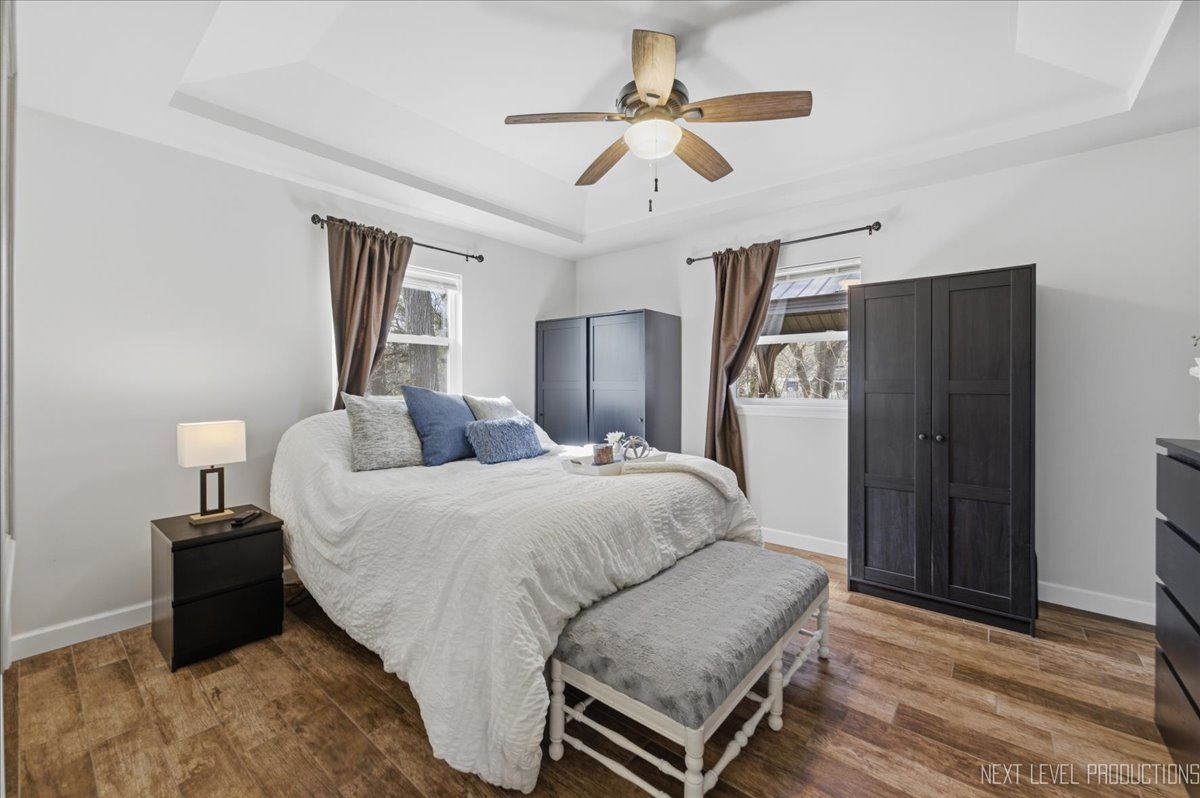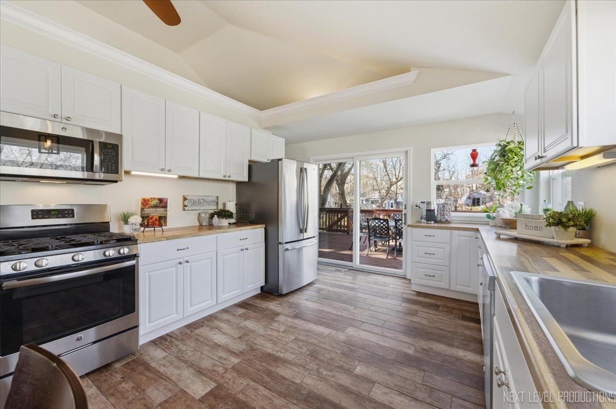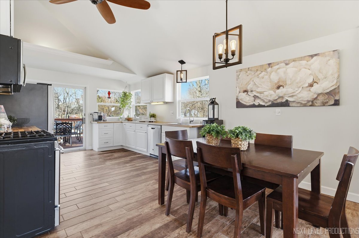 Rare opportunity featuring access to the Chain O' Lakes via the Fox River! Nestled along Cary Creek Channel, this beautifully renovated home offers a rare blend of modern updates and natural beauty, with direct access to the Fox River. Offering 1530 square feet above grade plus additional finished basement space, the home features 2 above-grade bedrooms, 1 below-grade bedroom, and 2 full bathrooms, providing exceptional flexibility for a variety of living arrangements. From the moment you step inside, you will appreciate the extensive renovations throughout. The home showcases updated electrical, insulation, and windows, along with soaring vaulted cathedral ceilings that create a bright, open, and airy atmosphere. The kitchen has been thoughtfully updated with new cabinetry and appliances, while ceiling fans throughout enhance year-round comfort. The upstairs was fully renovated in 2017, with the exception of the bathroom. The finished basement offers incredible versatility, including a private in-law arrangement with a bedroom, full bathroom, and direct access to the backyard and creek. An oven hookup allows for a potential kitchenette, creating an ideal setup for extended living or guest accommodations. The opposite side of the basement is separately walled off with its own access, offering excellent space for storage, laundry, or a dedicated work or craft area. This home has been meticulously maintained with major system updates already completed, including a brand new washer and dryer and high efficiency water heater in 2022, well pump, pressure tank, and softener in 2023, and a new roof, gutters, and portions of the HVAC system updated in 2024. The well was inspected within the past two years in conjunction with the hot tub permit, providing added peace of mind. Step outside to your own private retreat. A spacious deck overlooks the expansive backyard and tranquil creek, with partial deck replacements completed between 2020 and 2024. Enjoy year-round outdoor living with a wonderful hot tub and gazebo, perfect for relaxing or entertaining in every season. Stairs leading down to the river access have been newly replaced in 2025, offering easy access to the water. A large shed provides ample storage for tools and outdoor equipment. This water adjacent property is ideal for kayaking, fishing, or simply enjoying the peaceful surroundings. Conveniently located near downtown Cary, the Metra, shopping, parks, and more, this home offers the perfect balance of everyday convenience and serene, nature-filled living. With extensive updates, a flexible living space, potential for an in-law arrangement, and a truly exceptional setting, this move-in-ready home presents a rare opportunity. Schedule your private showing today.