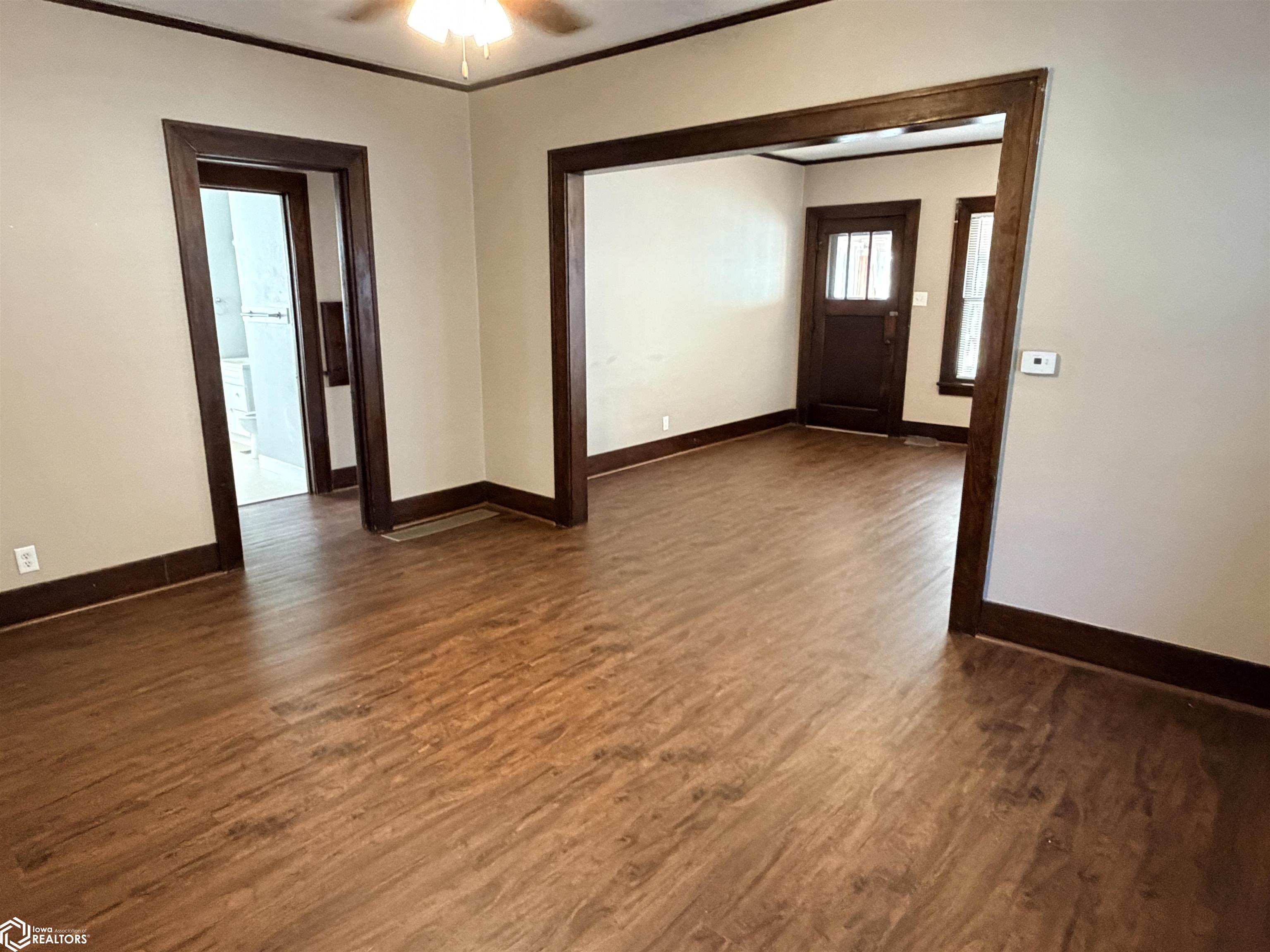 Hardwood floors throughout this 2-bedroom / 1-bath home. Enclosed entry steps into the kitchen area with great mudroom space and laundry. Open kitchen with appliances. Separate dining room and adjacent living room. Fantastic enclosed front porch with ample light. Full hallway bath. Two bedrooms on each side with closets. East bedroom has access to the walk-up attic. Full basement for storage & hobbies. Detached garage has a shared wall with the neighbor. Central air. Be sure to consider this nicely laid-out home in your search.