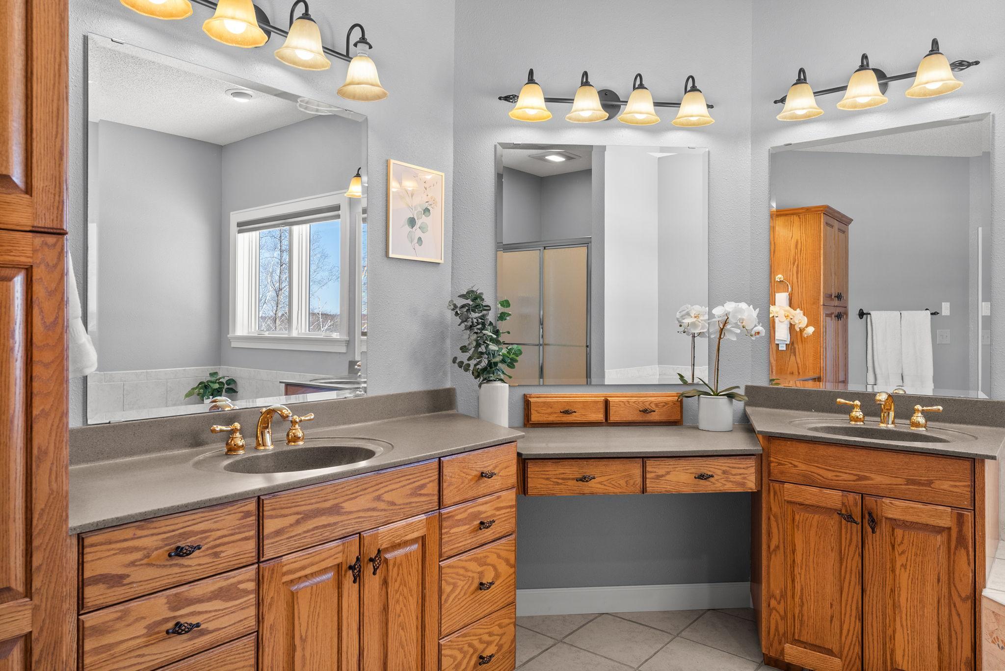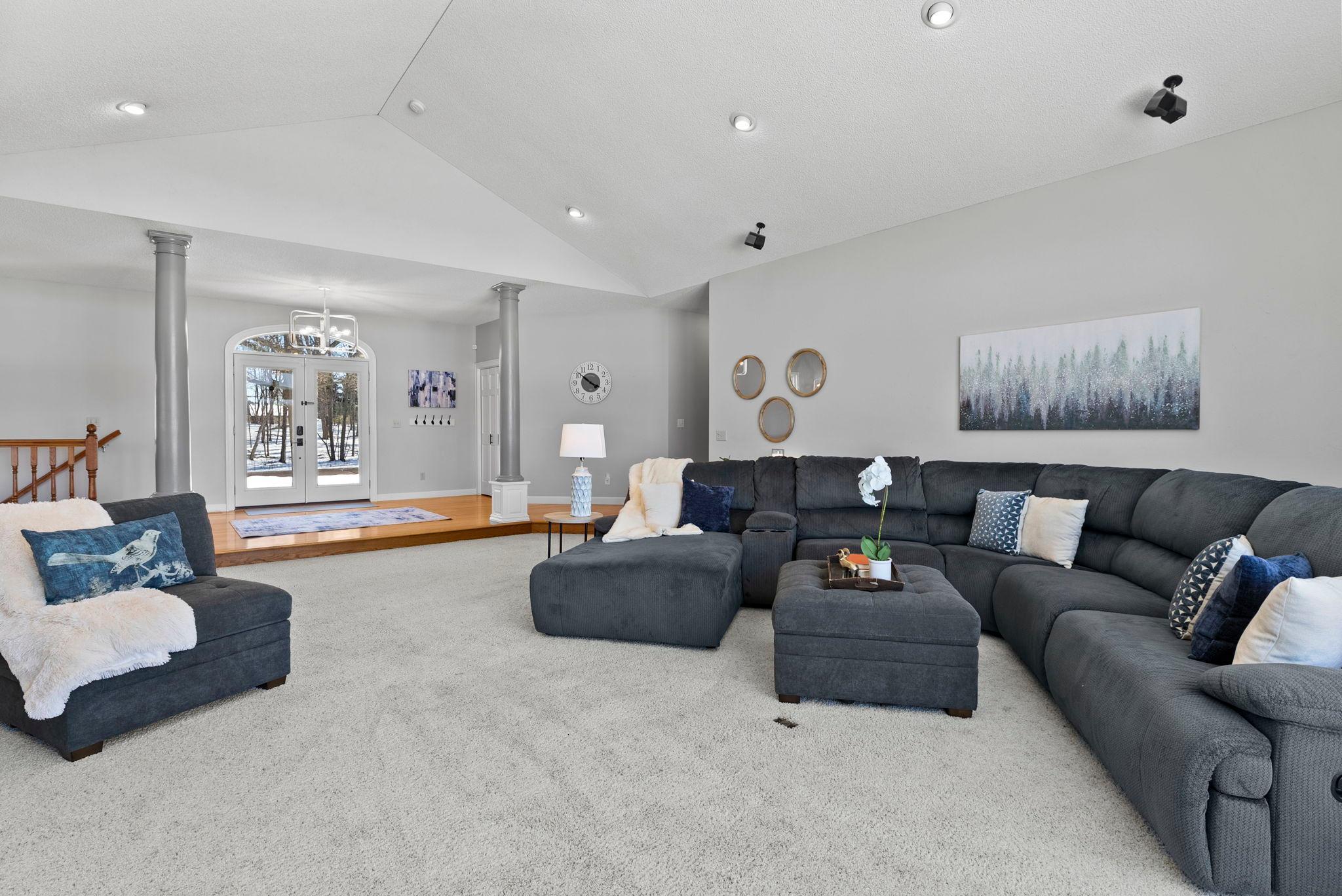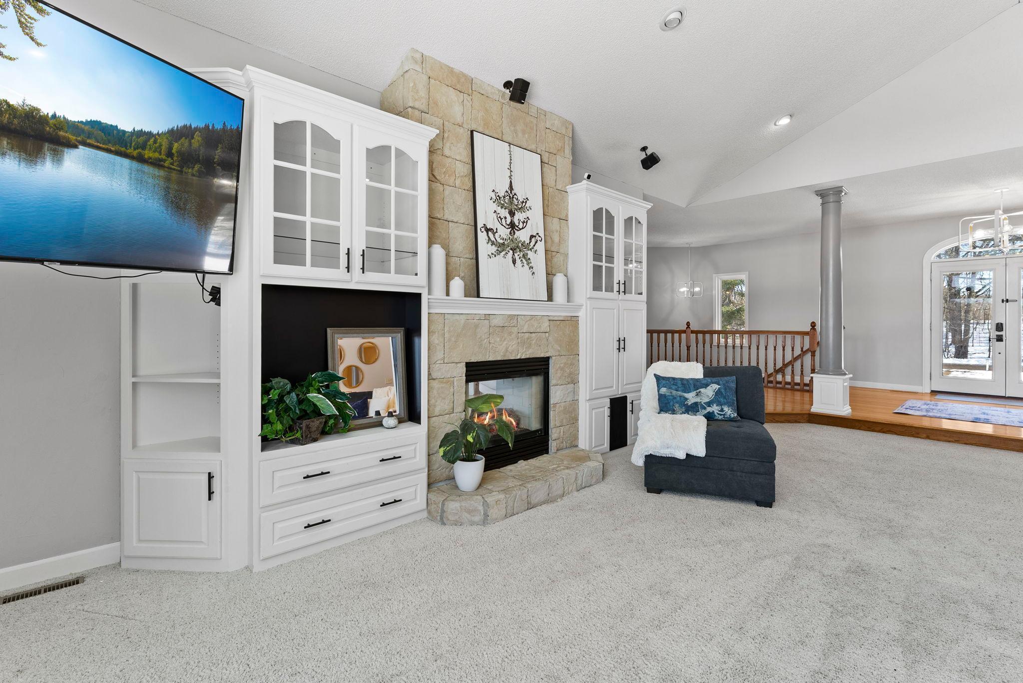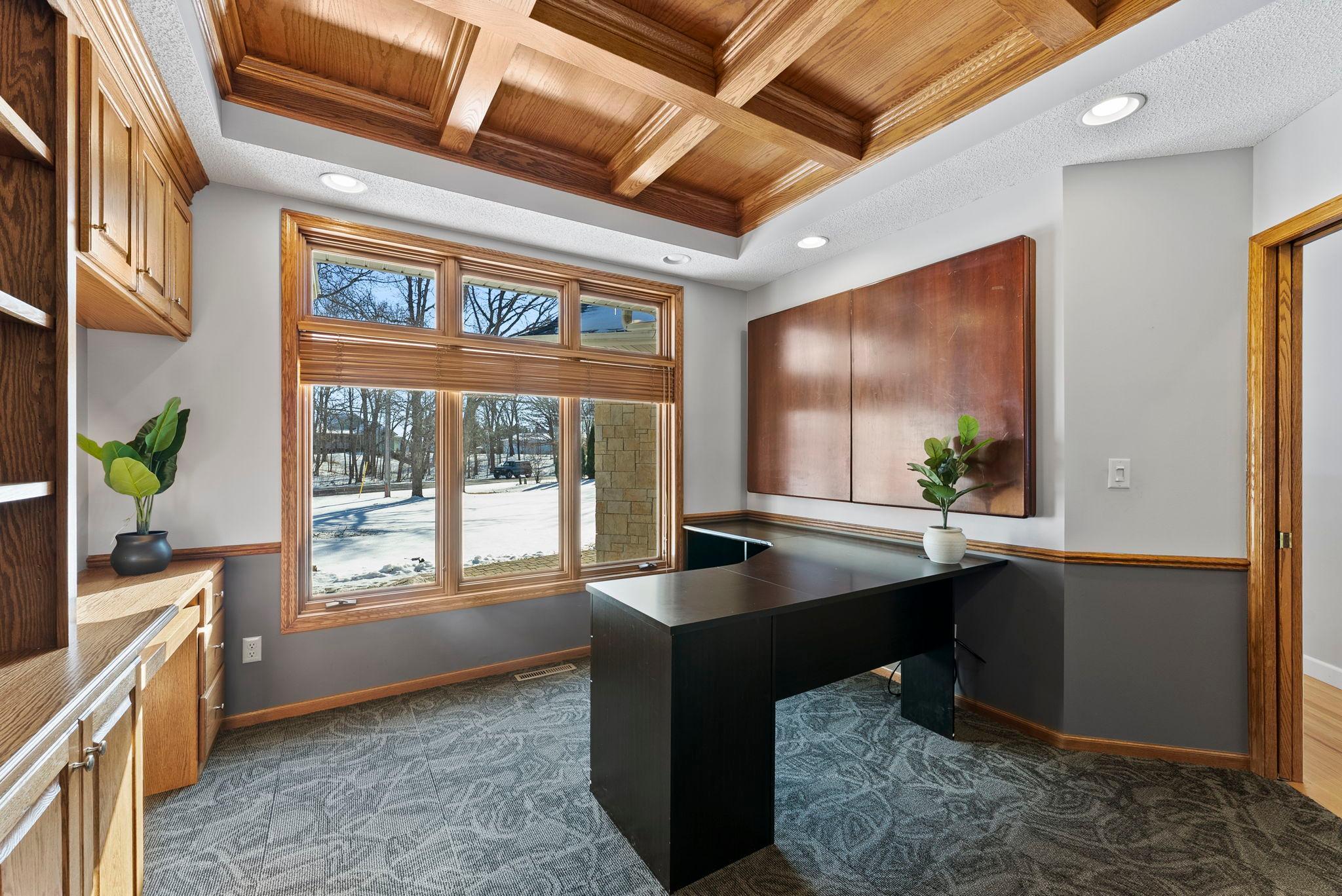 Gorgeous lake home with breathtaking panoramic views! Situated in a peaceful setting on a beautiful treed lot with over 190 feet of private lakeshore. Comfortable, yet elegant layout lives large with amazing spaces and stunning views throughout. Enjoy the welcoming formal living room with floor to ceiling windows and fabulous architectural details. Bright and open chefs kitchen showcases a large center island with breakfast bar, a walk-in pantry, and a cozy sitting area; with a bayed dining space that nicely opens to a deck overlooking the lake perfect for your morning coffee or barbecues! An exquisite study behind pocket doors boasts gorgeous woodworking with a coffered ceiling and custom built-ins. Three bedrooms are conveniently positioned on the main level including a wonderful owners suite with large walk-in closet and relaxing jetted tub. Walkout lower level is an entertainers dream featuring a huge gathering space with built-in media center, a fireplace, and a spectacular wet bar; with two additional bedrooms and a full bath that are perfect for visiting family and friends. Main level mudroom and laundry room are nicely placed just off the attached three-car garage, which is heated and offers ample space for vehicles, toys and tools. Fenced-in yard is perfect for backyard fun, and the in-ground sprinkler provides for easy lawn maintenance. Located on beautiful Fish Lake offering endless recreation with spectacular fishing, swimming and boating surrounded by tranquil wildlife!