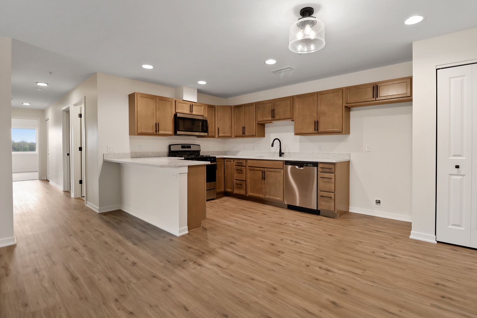 MOVE IN READY - BROOKSTONE NORTH - DARLINGTON MODEL - 1,608 SQ.FT. 3 BED/2 BATH Experience luxury living at its finest in these stunning condominiums conveniently nestled near Rt. 30 and close to I-65, making a commute to IL or MI using I-80/94 a breeze. Boasting an open concept design, these residences are thoughtfully crafted for modern living, where every detail enhances your comfort and convenience. Step into your home through the attached garage, ensuring seamless entry into the elevator accessible building. Inside your condo, discover the epitome of relaxation in your spacious main bedroom, complete with a generously-sized walk-in closet, as well as, an en-suite bathroom boasting beautiful cultured marble vanities. Rest easy knowing that the gypcrete soundproofing ensures tranquility and privacy within your abode. Entertain guests or unwind after a long day on your expansive balcony or prepare meals in style in your sleek kitchen featuring quartz countertops, soft-close cabinets, and stainless steel appliances. Let's not forget the in-unit laundry facilities that will make laundry a much lighter load for you. Outside your doorstep, indulge in a wealth of amenities designed to enhance your lifestyle. Enjoy exclusive access to a clubhouse, perfect for gatherings and socializing. Take a leisurely stroll along the meticulously landscaped walkways. For the nature enthusiast, our catch and release outdoor pond provides a serene escape amidst lush greenery. Plus, with 24-hour live video surveillance in common areas throughout the building and access to the main entrance camera from within your condo, your security and peace of mind are always a top priority. Discover the pinnacle of luxury living in these condominiums, where every feature is tailored to exceed your expectations. Welcome home to a lifestyle of unparalleled comfort, convenience, and sophistication at Brookstone North.