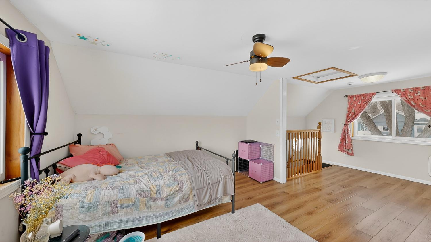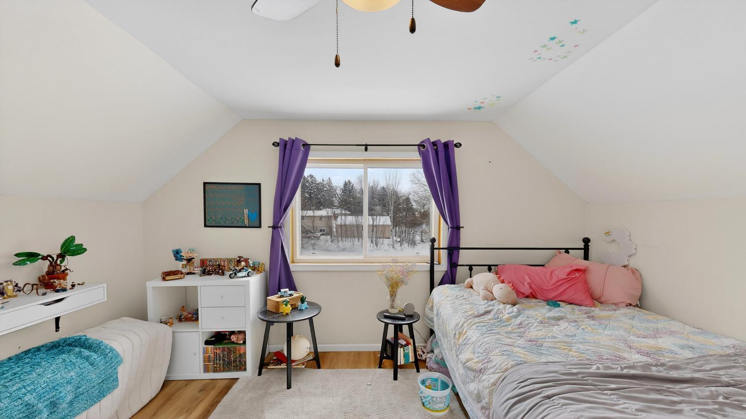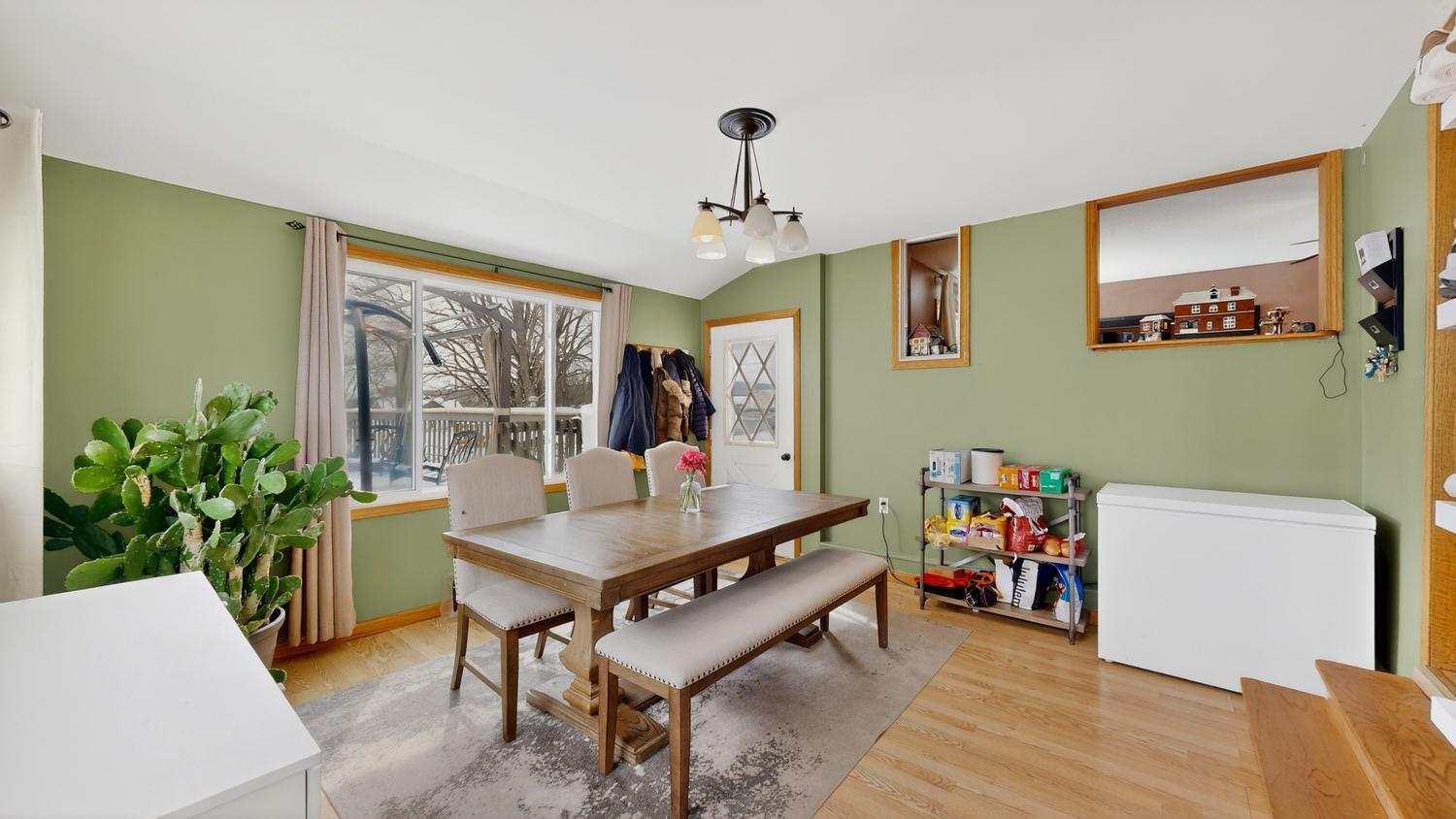 This home lives larger than it looks! Two bedrooms, two bathrooms, kitchen, dining, living, and laundry all on the main level. An additional private bedroom upstairs with large closet and another bedroom in the basement. Large lower level family room with walkout to the backyard. Gorgeous backyard with patio, huge deck, greenhouse, and storage shed with lofted play place for kids. Plenty of storage space with four total garage stalls - impossible to find! Owners have done tons of updates so you don't have to! Move in just in time to enjoy the gorgeous yard and landscaping!