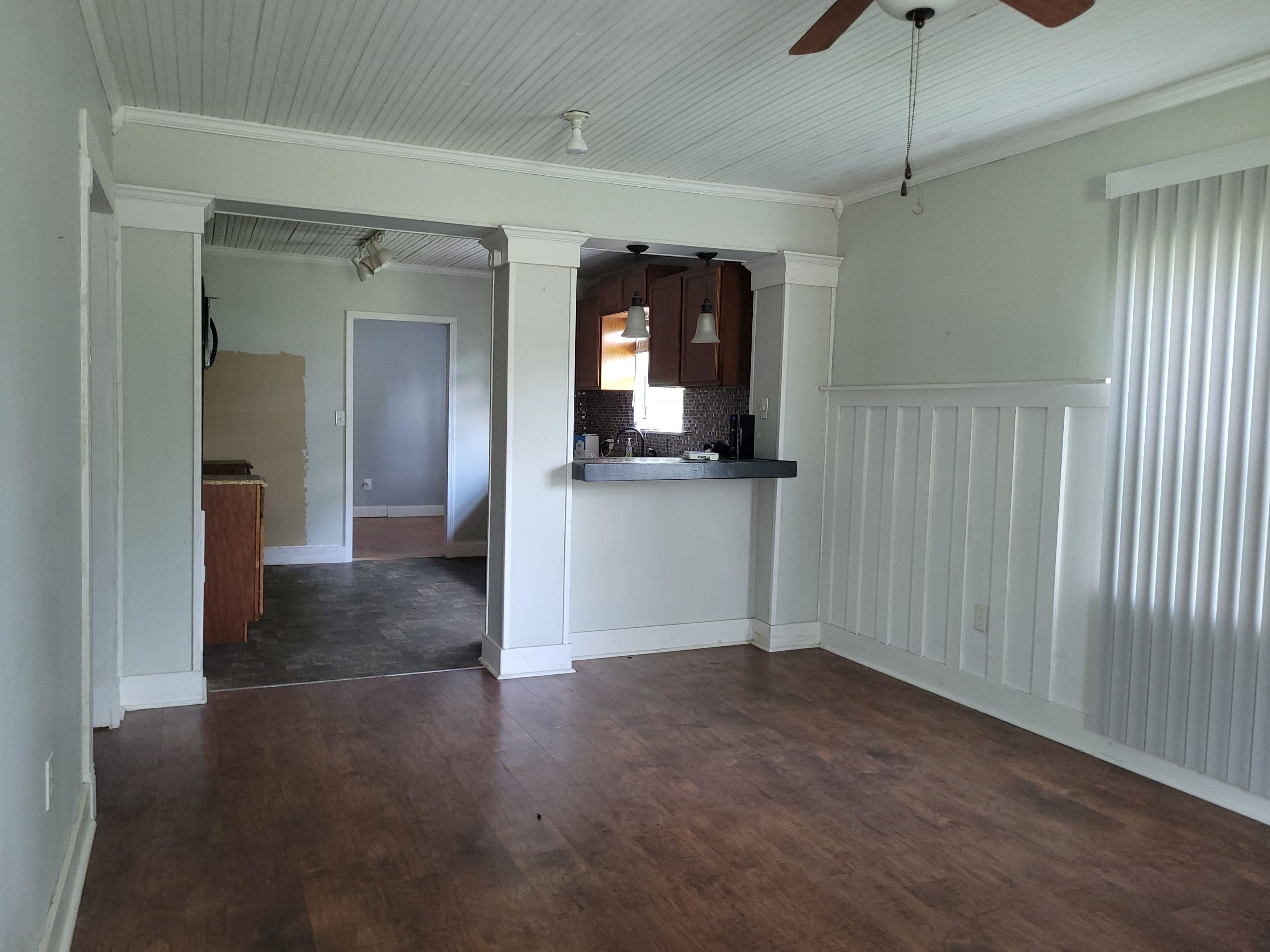 Come take a look at this charming older home in the heart of Kirbyville. Close to all amenities & easy commute to Golden Triangle. Great potential for retirement or starter home. This 2 bed/1bath sits on a little under 1/4 acre & has double paned vinyl windows, metal roof, covered front & back porches. The well shaded back porch & yard is an excellent place to entertain or just relax. You'll have even more room for entertaing in the formal dining room. The inside laundry & utility room gives extra storage & plenty of room for freezer. Move in ready but in need of some tlc. The portable ac unit & storage building will convey. Book your private tour today.