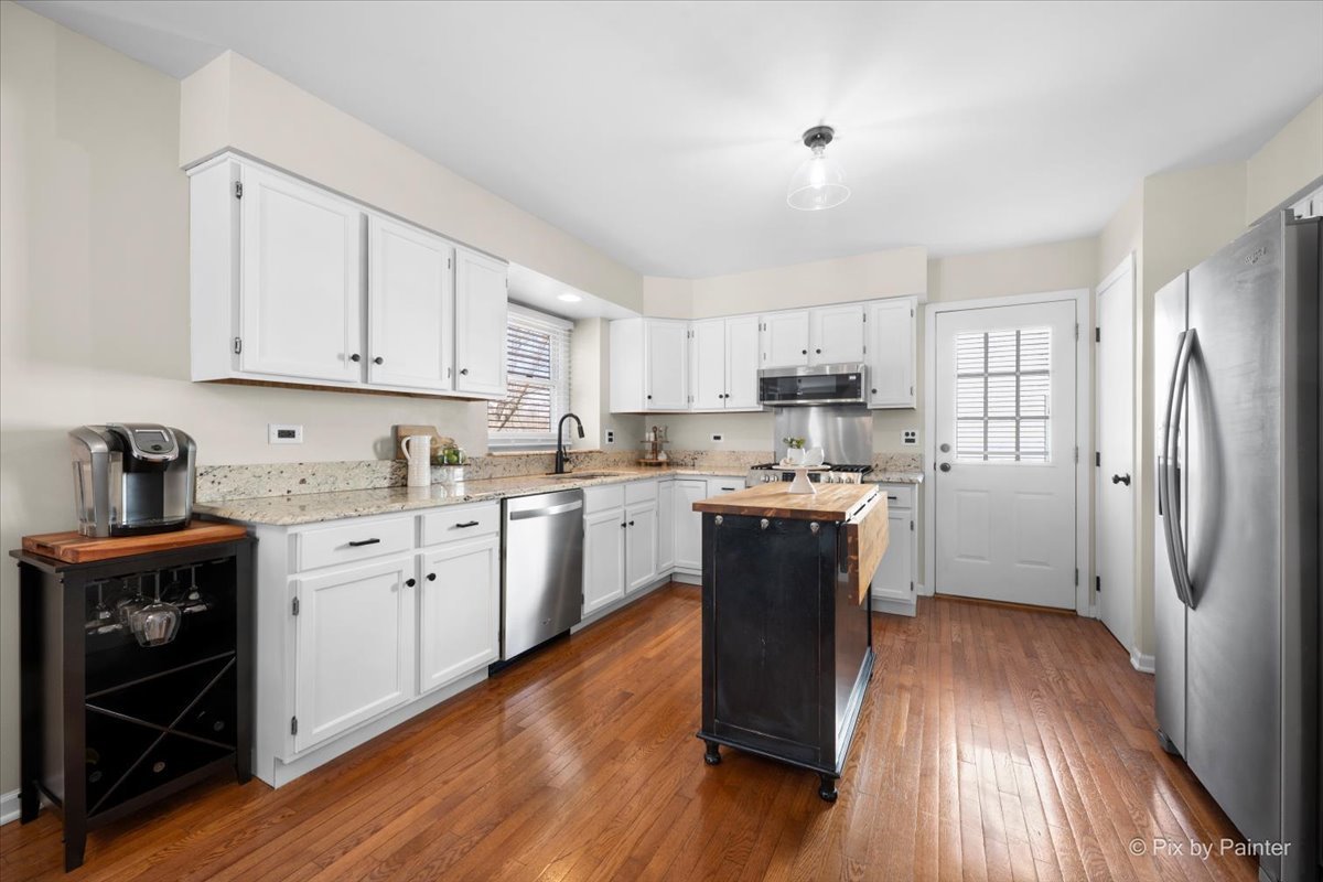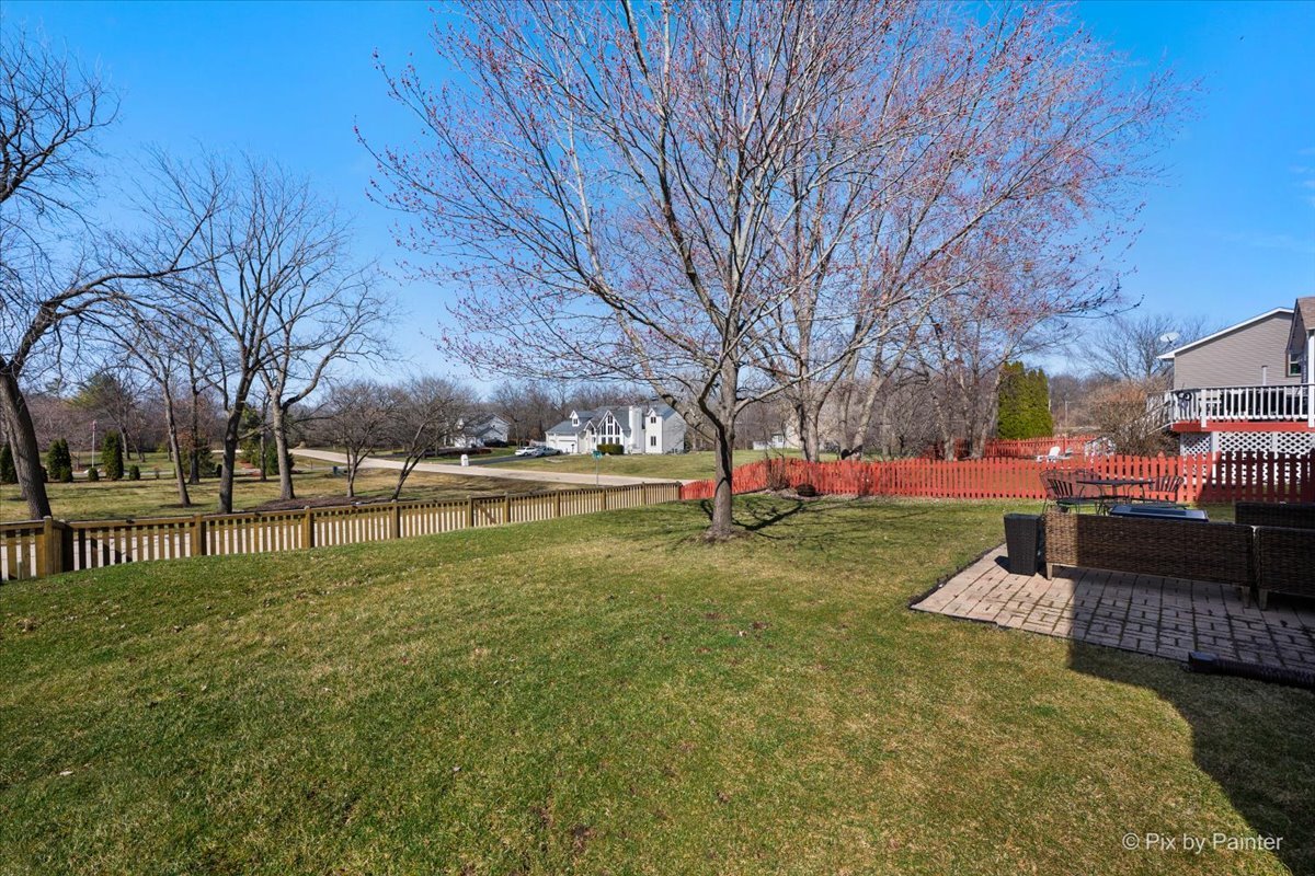 Beautiful 2-story home with 4 bedrooms, 2.5 baths, attached 2-car garage and fully fenced yard in the Ashmore Estates subdivision. Step beyond the front porch into an open foyer. To the left is a private den with French doors and gleaming hardwood that flows throughout the first floor. To the right is a separate dining room with a bay window. Well-appointed kitchen with ample white cabinets and granite counters, stainless steel appliances, pantry closet and eat-in area and exterior access the backyard. Adjacent to the kitchen is the spacious family room with lovely floor to ceiling brick fireplace and abundant windows for natural light. Head upstairs to the generous master suite with walk-in closet and ensuite bath with dual sinks and walk-in shower. 3 more sizable bedrooms and a full hall bath with shower over tub combo completes the upper level. Relax outdoors on the brick paver patio or in the lush green space of the fully fenced backyard. Great location nearby Routes 64 & 59 and tons of shopping and dining options! Value added features: (2025) Washer water connection, backyard spigot; (2024) Shed; (2023) Furnace, fridge, dishwasher, microwave, overhead garage door repaired, blinds in family room and kitchen, updated bar area; (2022) Master bath renovation, update and created 4th bedroom, interior painting, upstairs carpet, oven, kitchen cabinets and railing painted; (2021) Washer, screen door in kitchen; (2017) Dryer; (2016) Roof.