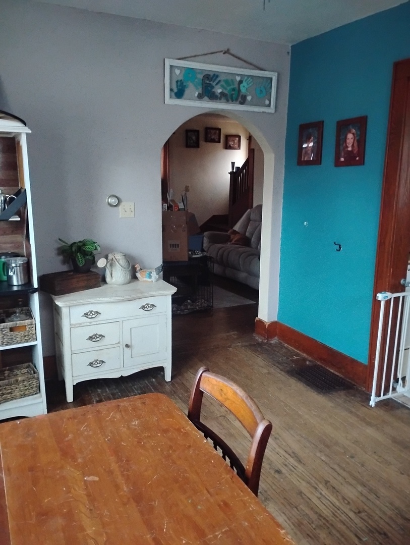 Charming 3-bedroom home full of character, featuring hardwood floors and beautiful natural woodwork throughout. Recent updates provide peace of mind, including a new sewer line, new water line, and backyard fence, all installed in 2024. The home also offers some double-hung windows for classic appeal and easy maintenance. Outside, enjoy a fenced and spacious backyard - you'll also find a small one-car garage and a convenient cement parking pad with alley access. All appliances will remain, with the exception of the deep freezer. This property offers a great combination of charm and updates.
