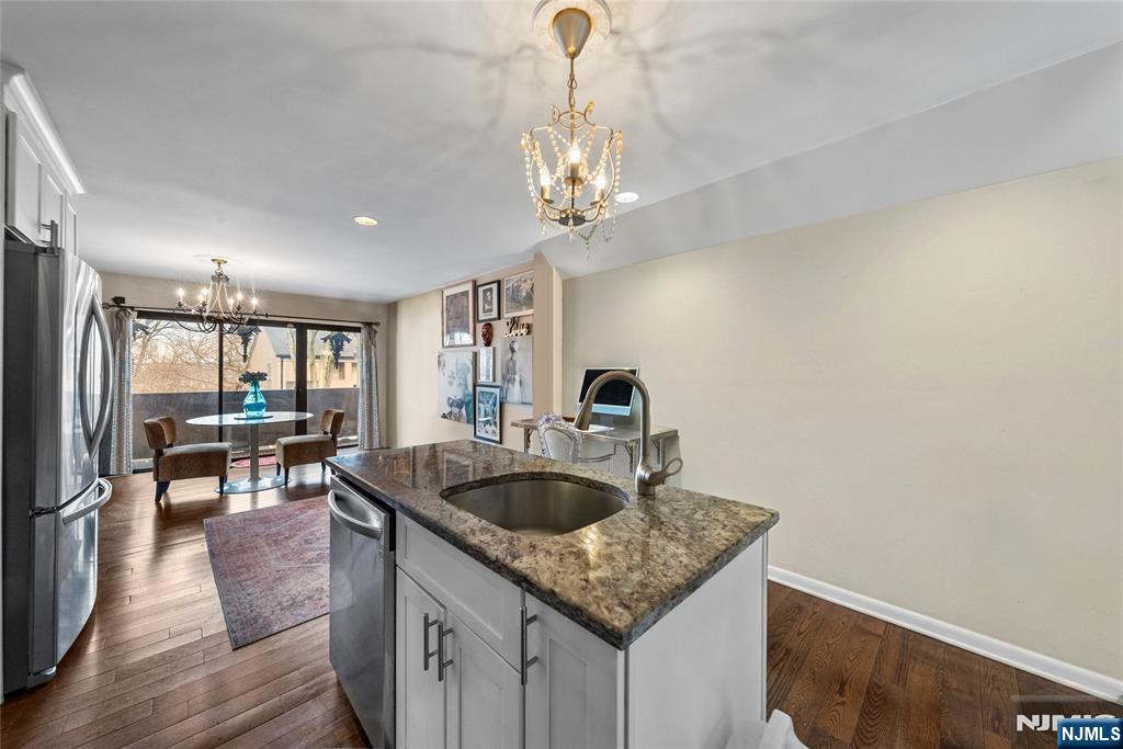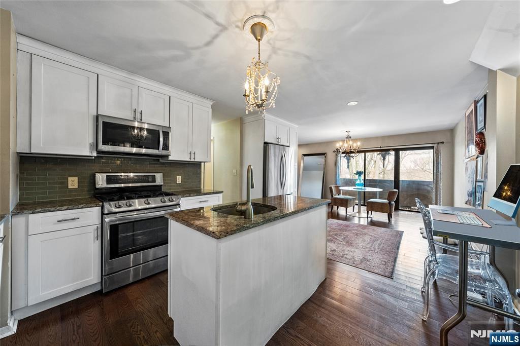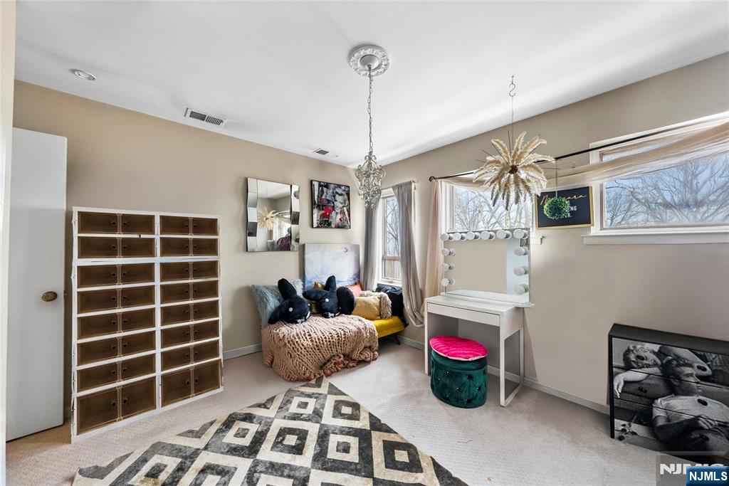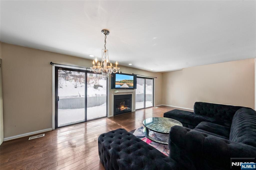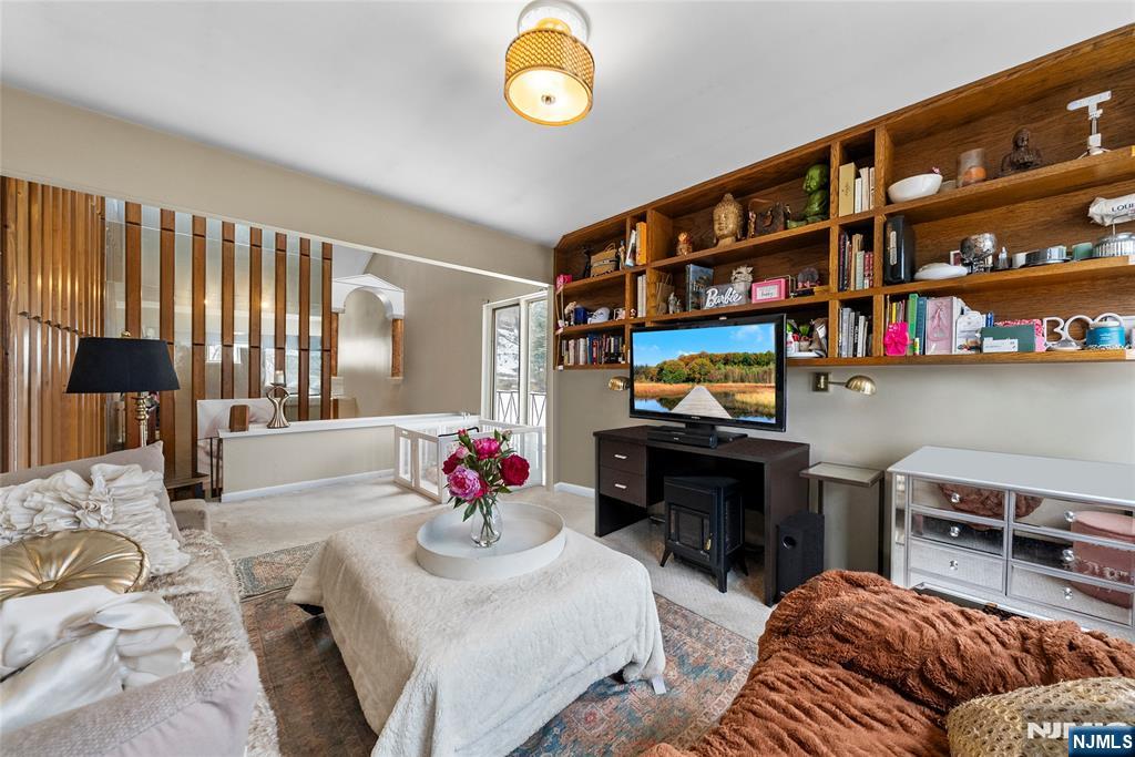 This distinctive corner unit offers approximately 3 bedrooms and 2.5 baths, along with one of the largest private outdoor spaces in the community. The fenced patio features a gazebo, seating areas, and mature plantings ideal for entertaining or unwinding in privacy. Enjoy a front balcony and decorative Juliet balcony, with NYC skyline views on clear days.Inside, a gallery-style entry leads to a formal living room and open kitchen/dining area with a convenient main-level half bath. Upstairs includes a primary suite with en-suite bath, a flexible family room or additional bedroom, and an open loft for storage or creative use. The lower level adds two rooms suited for office, flex, or storage needs.Located in a safe, quiet, and highly desirable neighborhood, close to parks, dining, Willowbrook Mall, and major routes including I-80, Routes 46 & 3, this home delivers privacy, flexibility, and standout outdoor space rarely found in the area.