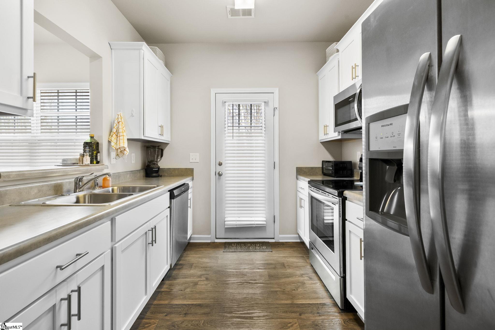 Immaculate end-unit townhome in a prime location just minutes from downtown Easley and less than 30 minutes to both downtown Greenville and Clemson University. This open-concept floor plan features a sunny great room that flows seamlessly into the dining area, perfect for everyday living and entertaining. The kitchen offers ample counter space, abundant cabinetry, and a large walk-in pantry, while a convenient half bath on the main level is ideal for guests. Upstairs, two secondary bedrooms share a hall bath with a deep tub/shower combination. The spacious primary suite feels like a retreat and features a vaulted ceiling and plenty of room for a small seating area beneath large, front-facing windows. A walk-in closet with a window provides natural light, and the attached bath includes dual vanities, a large shower, and a linen closet. Step outside to the patio with space to grill and relax, backing up to a peaceful natural area frequented by birds and even the occasional deer. The HOA maintains the exterior and lawn, giving you more time to enjoy your hobbies. Ideal as a primary residence, a game-day retreat, or housing for your Clemson student. Enjoy a truly walkable lifestylejust steps from the popular Coyote Coffee Shop & Caf and less than five minutes to Main Street, The Silos and the ever-popular Doodle Trail. With a functional open layout and an unbeatable location, this townhome checks every box for comfort, convenience, and lifestyle.