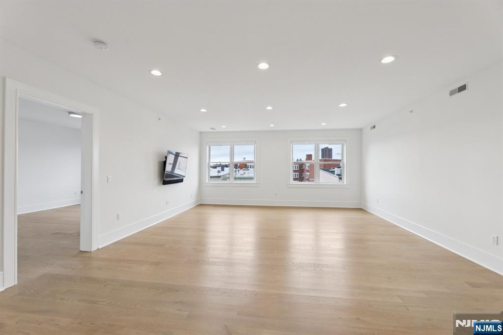 Modern and airy 3-bedroom, 2-bath condo offering 1,635 sq. ft. of thoughtfully designed living space and a deeded garage parking spot. The open-concept layout features a spacious living and dining area that flows seamlessly into a chefs kitchen with quartz waterfall countertops, gas range with vented hood, and premium stainless steel appliances. The king-sized primary suite includes a spa-inspired bathroom with a rainfall shower, dual vanity, and a custom walk-in closet. Two additional bedrooms and a full bath are situated on the opposite side of the home, providing privacy and flexibility for guests, family, or a home office. Smart home upgrades include hardwired controls for lighting, music, and doorbell. Recently refreshed with premium zero-VOC Benjamin Moore paint, the home also features central air and heat, in-unit washer/dryer, and garage parking spot #6one of the most convenient in the building. Esperta, built in 2019, is a modern elevator building with a virtual doorman and security. Ideally located just ~200 feet from NJ Transit express buses offering 20+ direct routes to NYC (second to last stop before the Lincoln Tunnel), commuting is effortless. Enjoy proximity to the Weehawken waterfront, Whole Foods, Reservoir Park, and local dining.