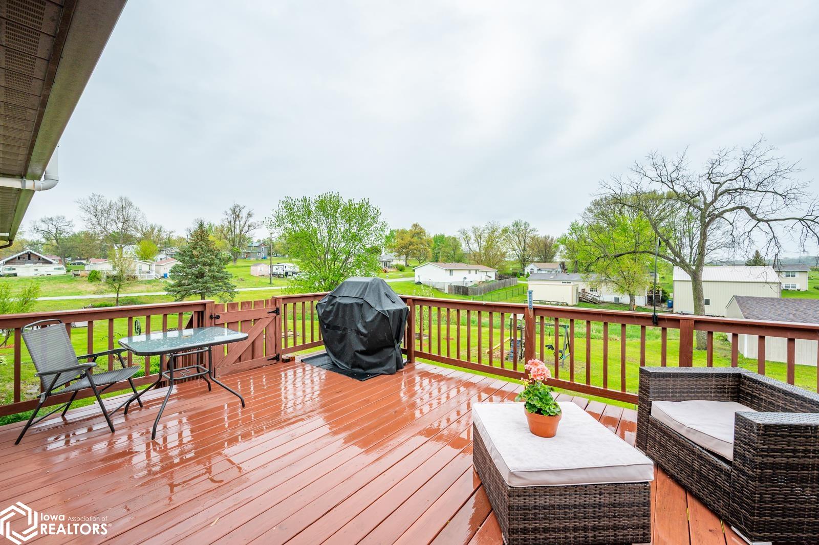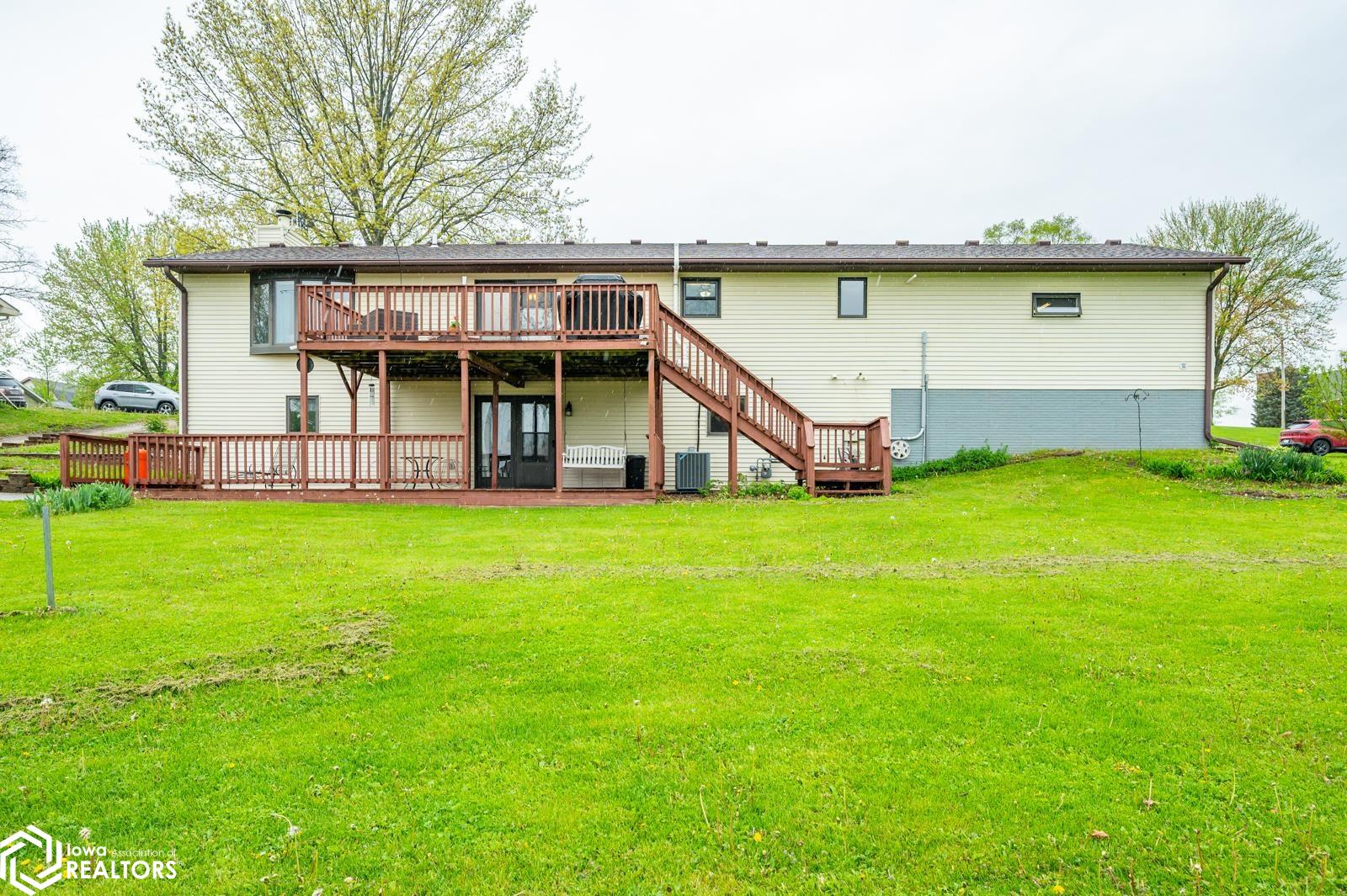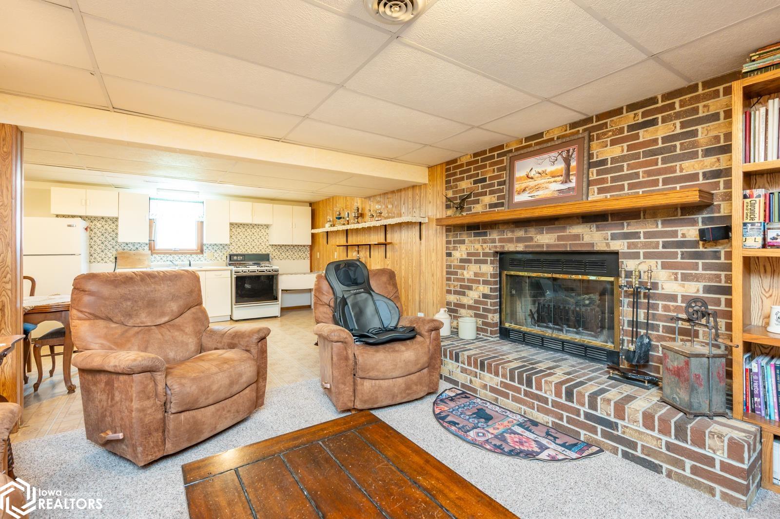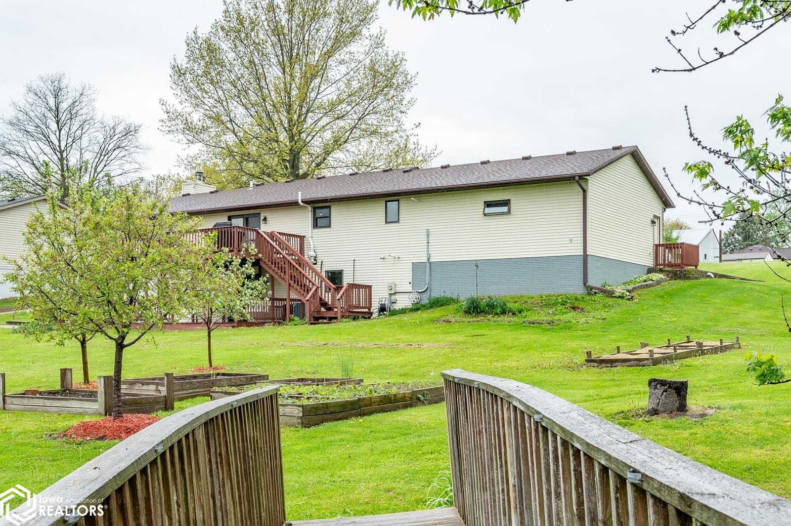 Discover the perfect blend of small town charm and modern updates in this beautifully maintained, move-in ready, 3 bedroom, 2 bath walkout brick ranch in Lacona, IA. Step inside to an inviting open concept layout that seamlessly connects the kitchen, dining area, and living room- ideal for hosting family and friends. The updated kitchen is a true highlight, featuring elegant quartzite countertops, a center island, new appliances, and extra storage with two pantries conveniently located in the mudroom, with 3 bedrooms, an updated full bath with a relaxing jacuzzi tub and shower all on the main floor. Enjoy outdoor living on two newly updated decks, front and back, offering peaceful spaces to unwind and take in the spacious 0.70 acre (3 city lots) in town yard. The backyard is a serene retreat with multiple fruit trees (Cherry, apple, peach and apricot), a garden spot, fire pit, and a quaint bridge crossing a small creek. The finished walkout lower level adds valuable living space, complete with a kitchenette, and updated 3/4 bath, a non-conforming 4th bedroom, and a cozy wood-burning fireplace- perfect for fall/winter evenings. Step right out to a large covered patio, ideal for entertaining or enjoying a quiet cup of coffee. Additional upgrades include a newer on-demand hot water heater, a radon mitigation system, and a reverse osmosis water filtration system. The home has been pre-inspected, offering peace of mind to the next owners.