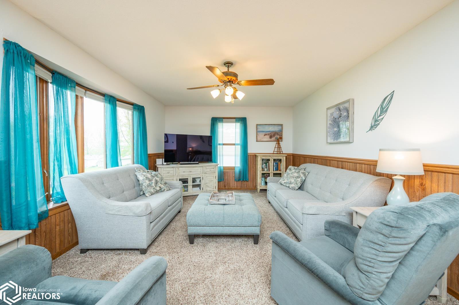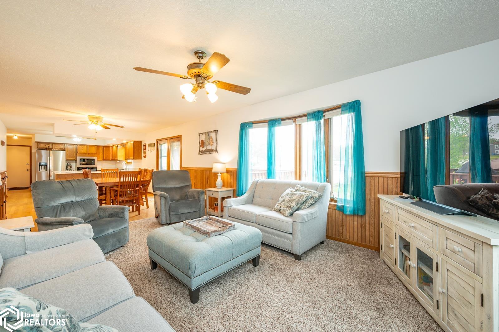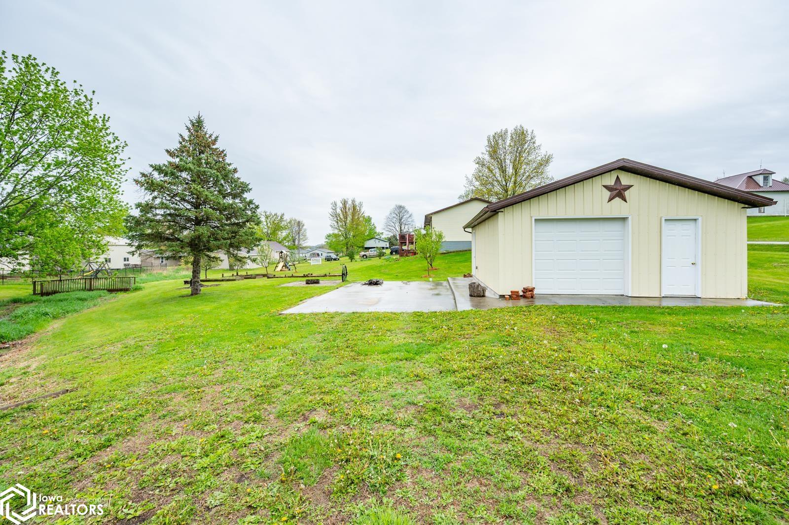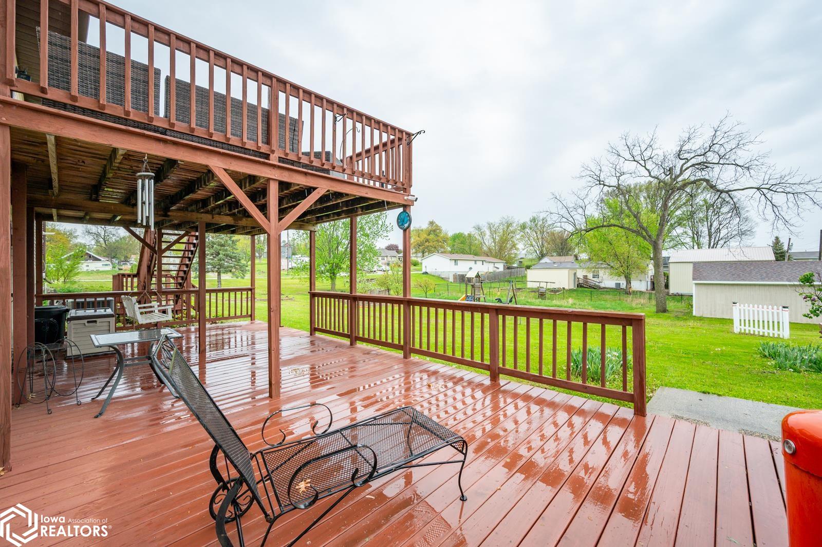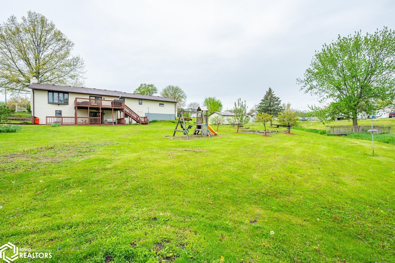Discover the perfect blend of small town charm and modern updates in this beautifully maintained, move-in ready, 3 bedroom, 2 bath walkout brick ranch in Lacona, IA. Step inside to an inviting open concept layout that seamlessly connects the kitchen, dining area, and living room- ideal for hosting family and friends. The updated kitchen is a true highlight, featuring elegant quartzite countertops, a center island, new appliances, and extra storage with two pantries conveniently located in the mudroom, with 3 bedrooms, an updated full bath with a relaxing jacuzzi tub and shower all on the main floor. Enjoy outdoor living on two newly updated decks, front and back, offering peaceful spaces to unwind and take in the spacious 0.70 acre (3 city lots) in town yard. The backyard is a serene retreat with multiple fruit trees (Cherry, apple, peach and apricot), a garden spot, fire pit, and a quaint bridge crossing a small creek. The finished walkout lower level adds valuable living space, complete with a kitchenette, and updated 3/4 bath, a non-conforming 4th bedroom, and a cozy wood-burning fireplace- perfect for fall/winter evenings. Step right out to a large covered patio, ideal for entertaining or enjoying a quiet cup of coffee. Additional upgrades include a newer on-demand hot water heater, a radon mitigation system, and a reverse osmosis water filtration system. The home has been pre-inspected, offering peace of mind to the next owners.