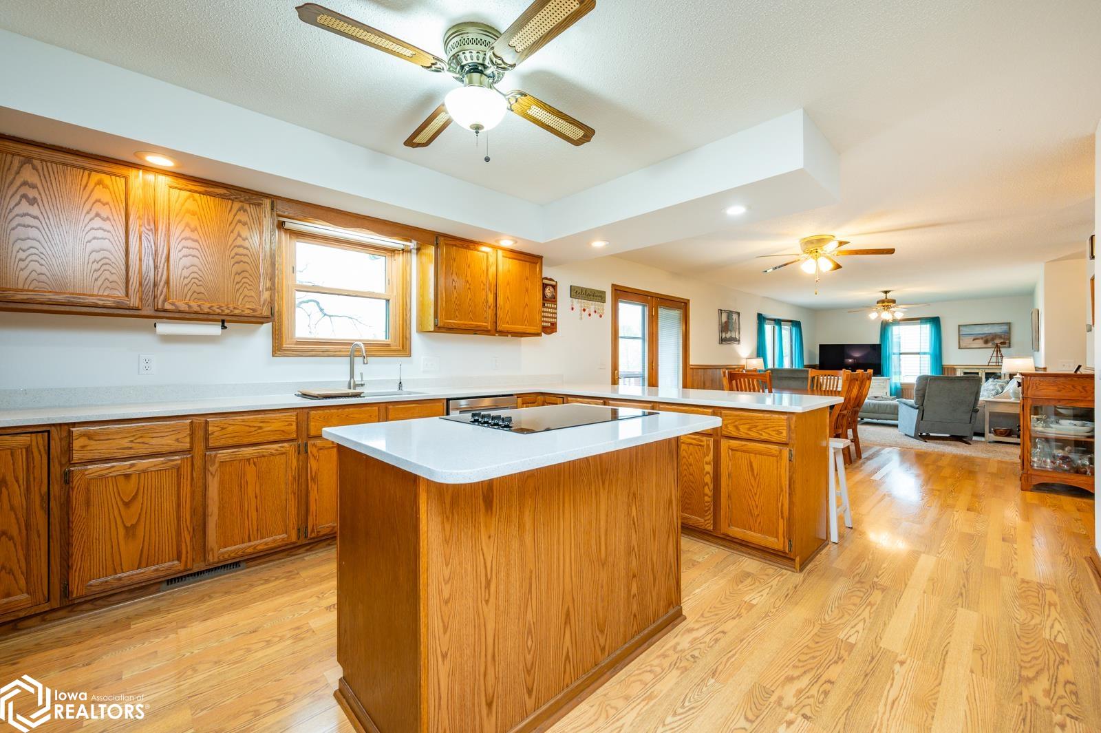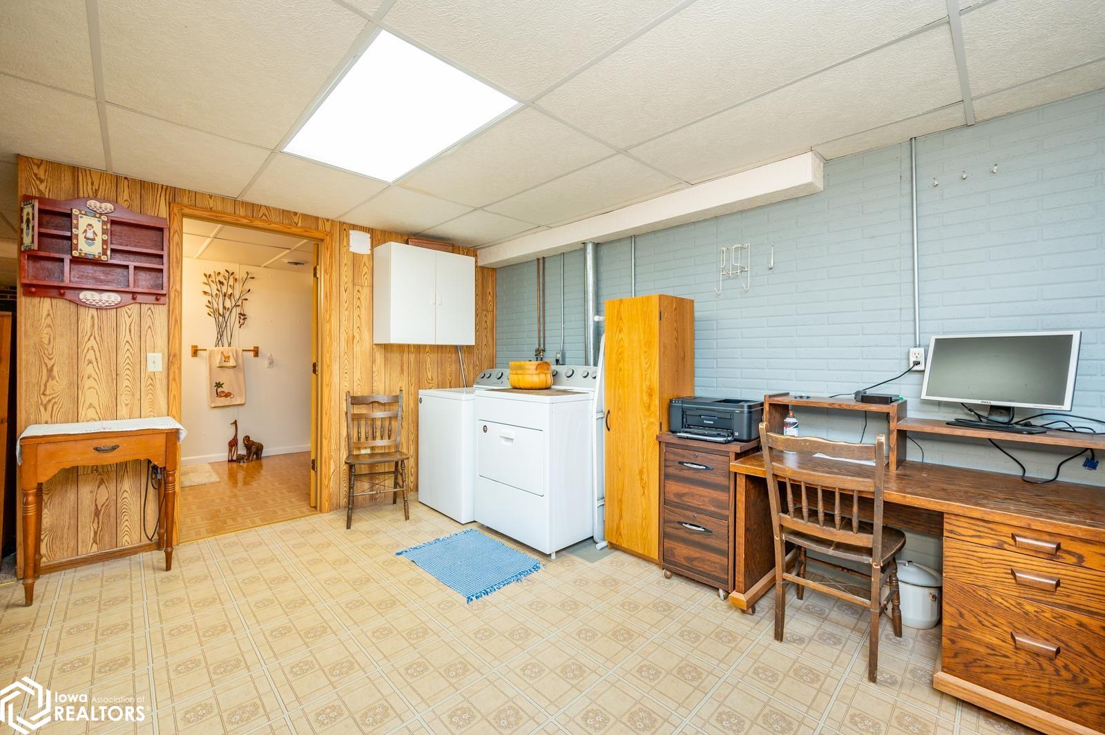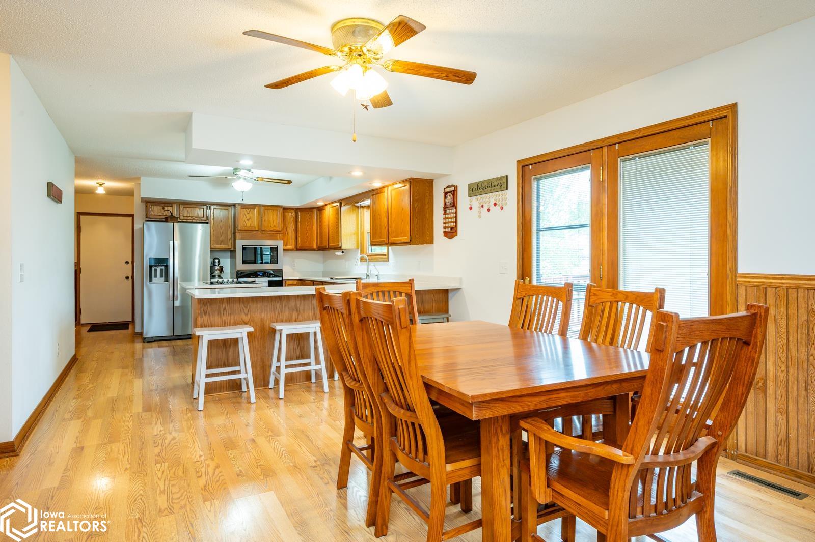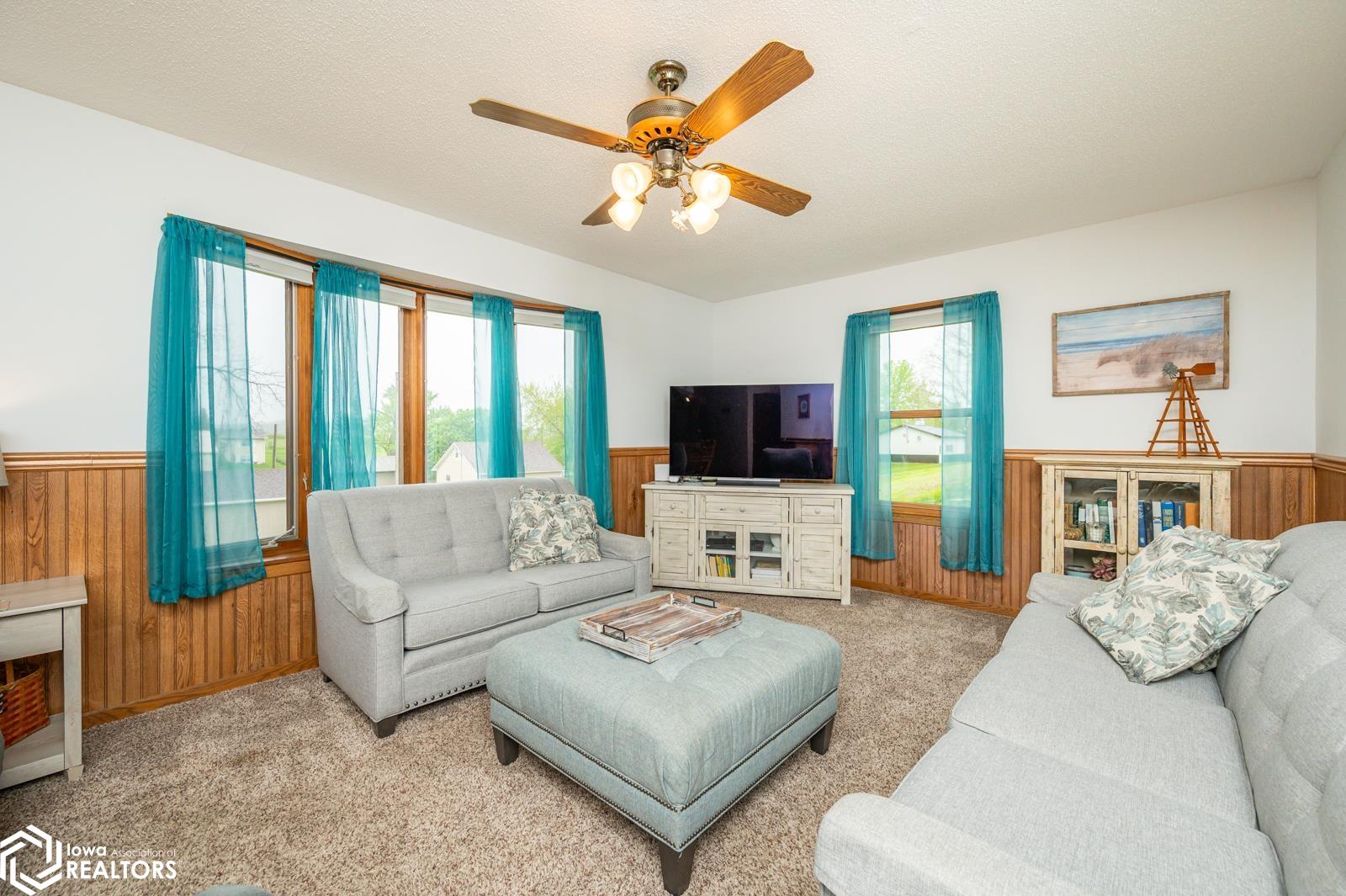 Discover the perfect blend of small town charm and modern updates in this beautifully maintained, move-in ready, 3 bedroom, 2 bath walkout brick ranch in Lacona, IA. Step inside to an inviting open concept layout that seamlessly connects the kitchen, dining area, and living room- ideal for hosting family and friends. The updated kitchen is a true highlight, featuring elegant quartzite countertops, a center island, new appliances, and extra storage with two pantries conveniently located in the mudroom, with 3 bedrooms, an updated full bath with a relaxing jacuzzi tub and shower all on the main floor. Enjoy outdoor living on two newly updated decks, front and back, offering peaceful spaces to unwind and take in the spacious 0.70 acre (3 city lots) in town yard. The backyard is a serene retreat with multiple fruit trees (Cherry, apple, peach and apricot), a garden spot, fire pit, and a quaint bridge crossing a small creek. The finished walkout lower level adds valuable living space, complete with a kitchenette, and updated 3/4 bath, a non-conforming 4th bedroom, and a cozy wood-burning fireplace- perfect for fall/winter evenings. Step right out to a large covered patio, ideal for entertaining or enjoying a quiet cup of coffee. Additional upgrades include a newer on-demand hot water heater, a radon mitigation system, and a reverse osmosis water filtration system. The home has been pre-inspected, offering peace of mind to the next owners.