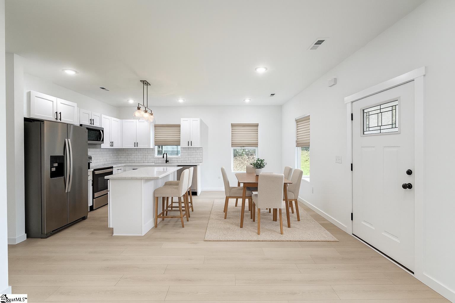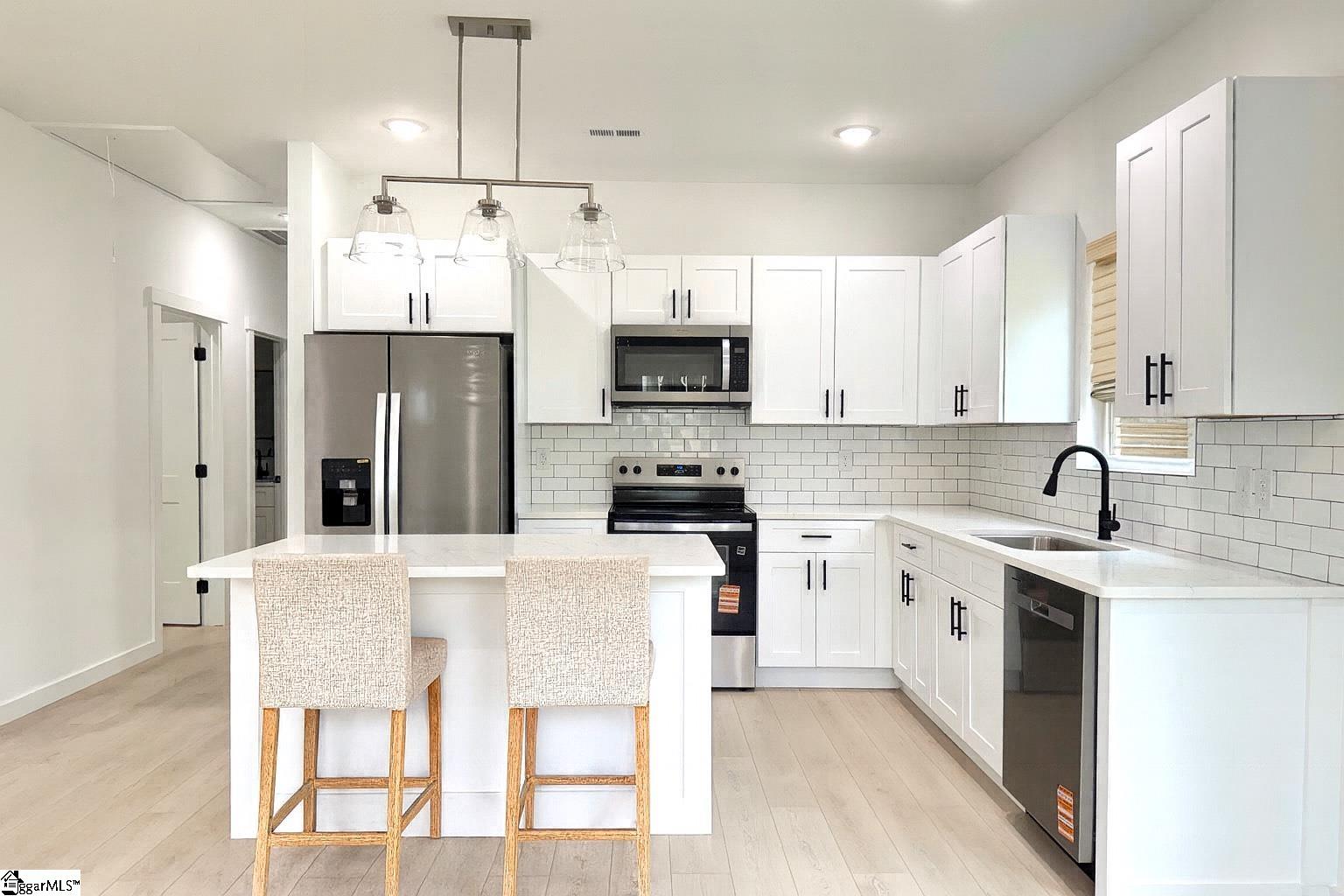 Move-in ready! This beautiful home offers 3 spacious bedrooms and 2 full bathrooms with an open-concept living area, perfect for both relaxing and entertaining. The kitchen features quartz countertops, a large island with additional seating, and modern finishes. Vinyl flooring runs throughout the home. The primary suite includes a walk-in closet for ample storage. Enjoy the outdoors from the covered front and back porches, and take in the natural beauty of the propertys creek. Conveniently located just 8 minutes from I-85. No HOA. Agent is related to the seller. Available for USDA loan.